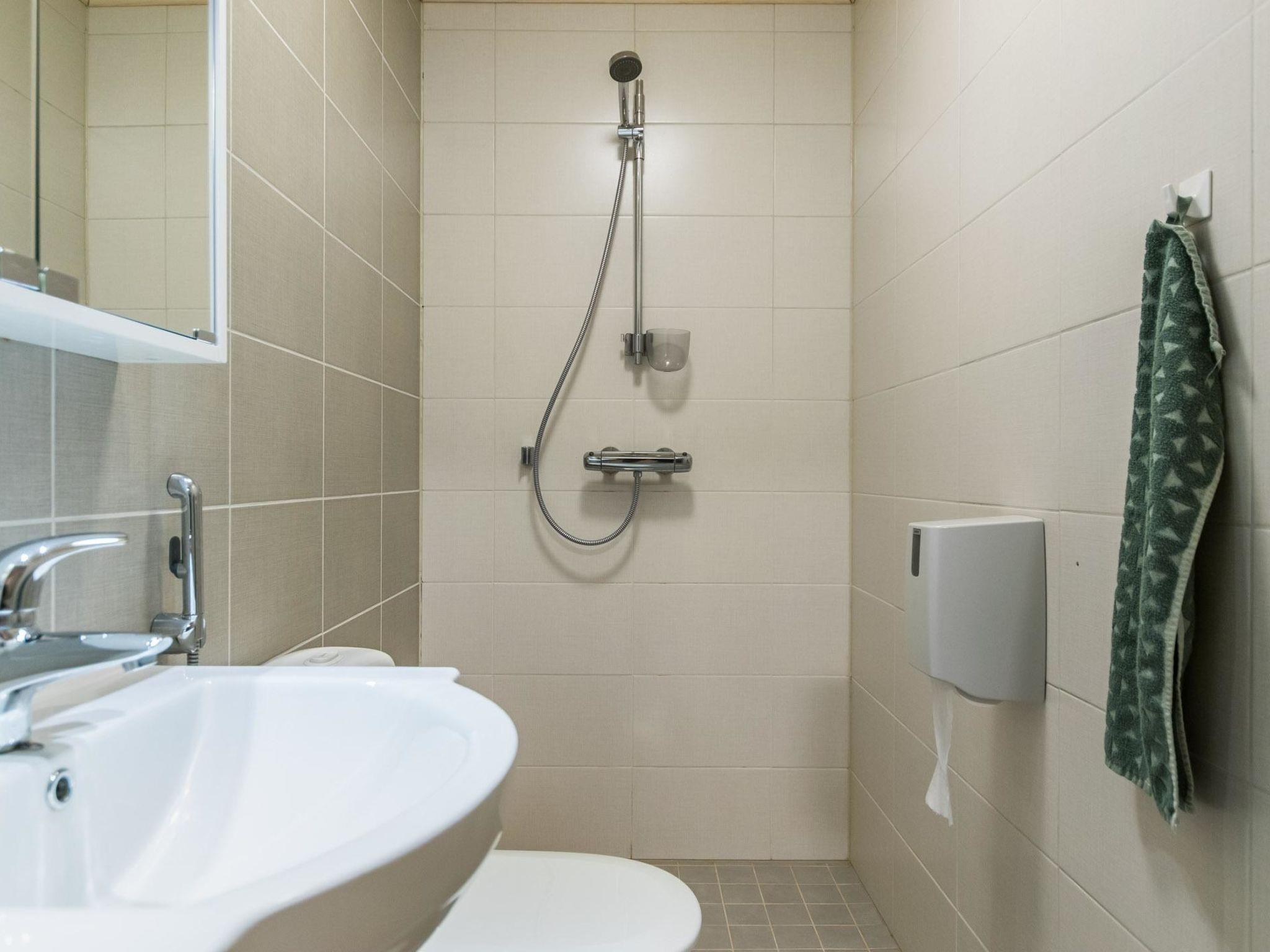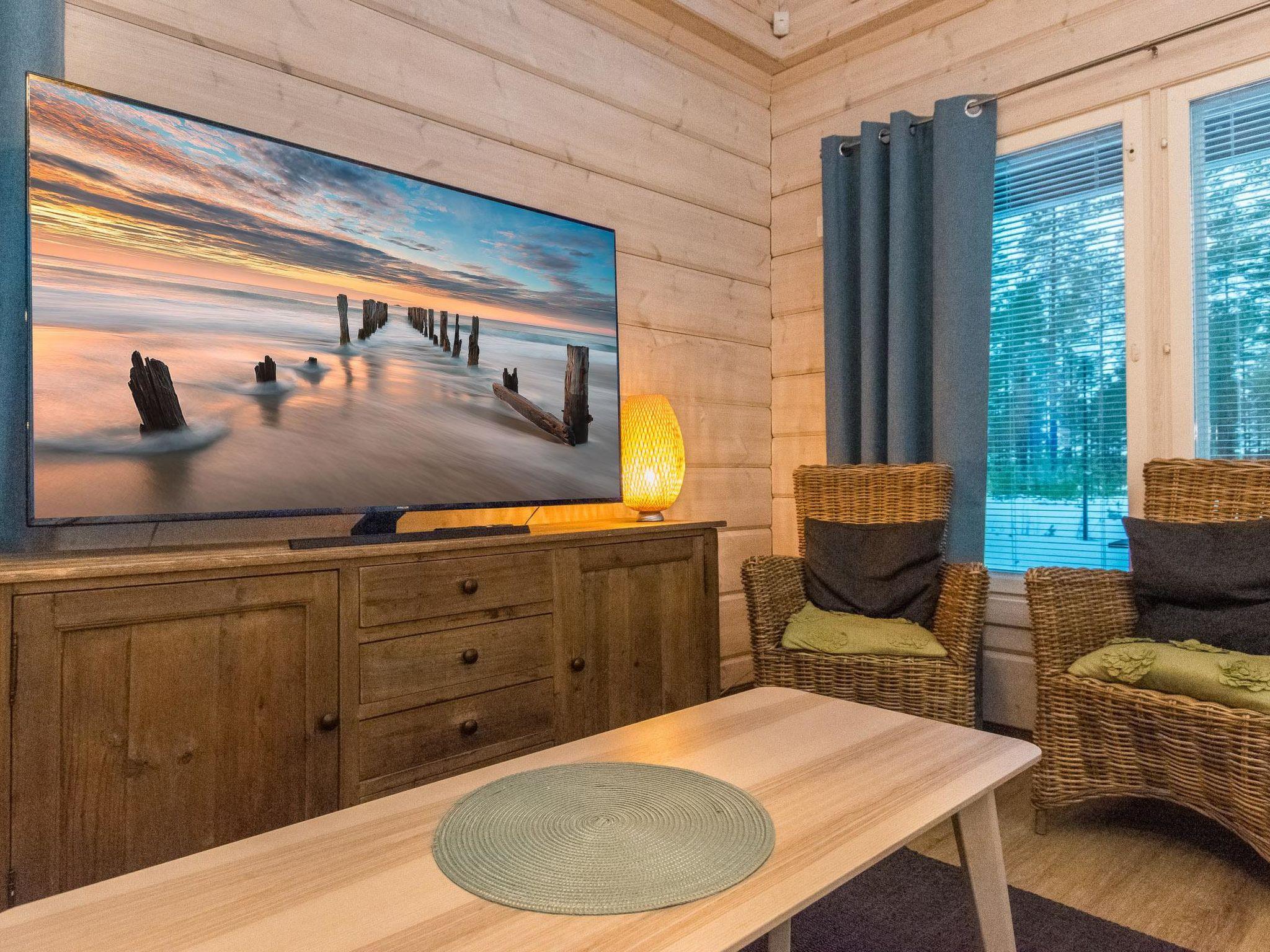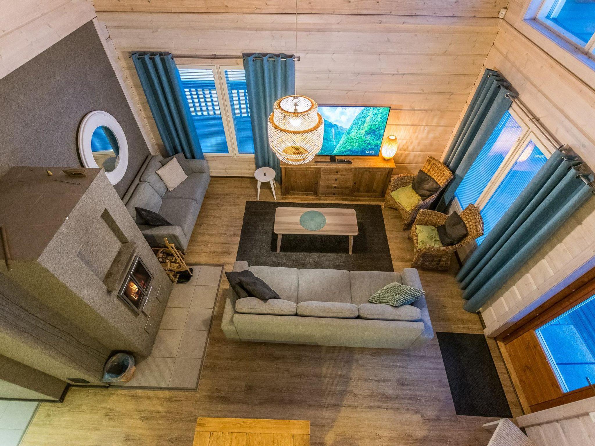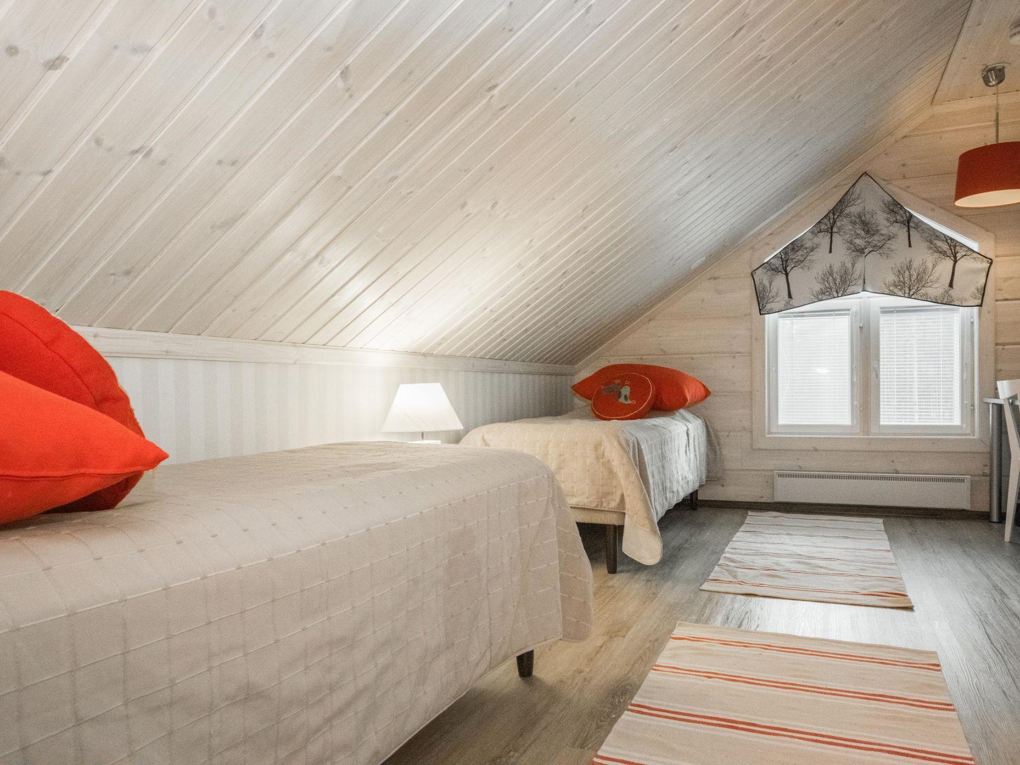 The cabin includes a bathroom and sauna equipped with an immediately ready electric sauna stove.