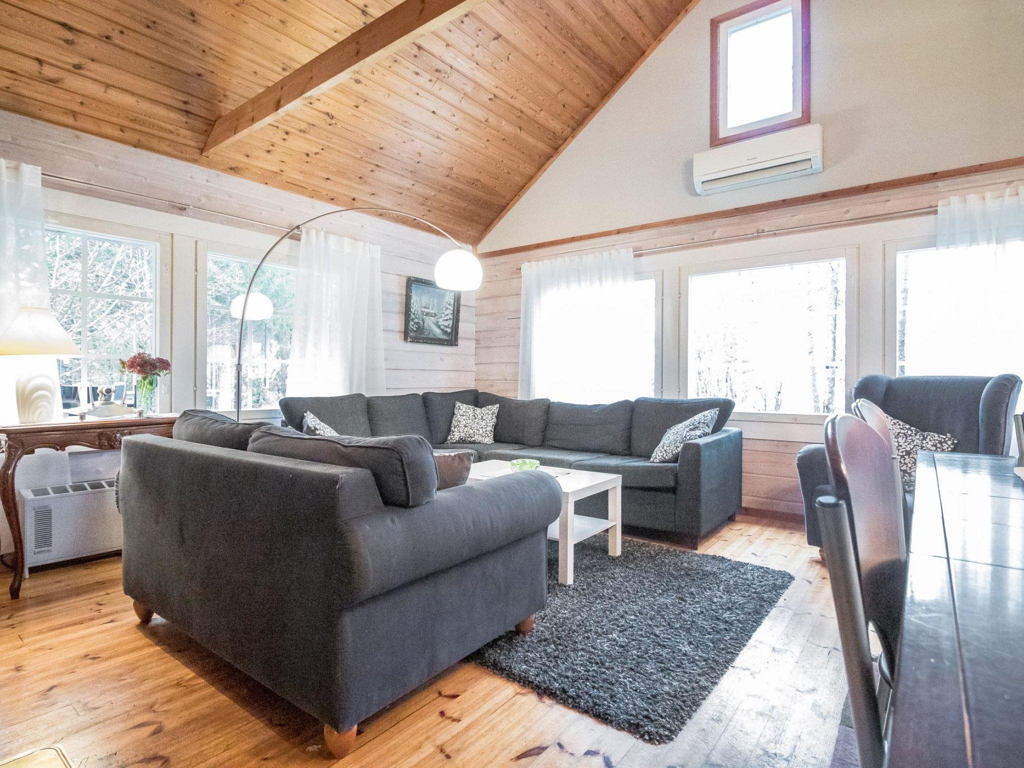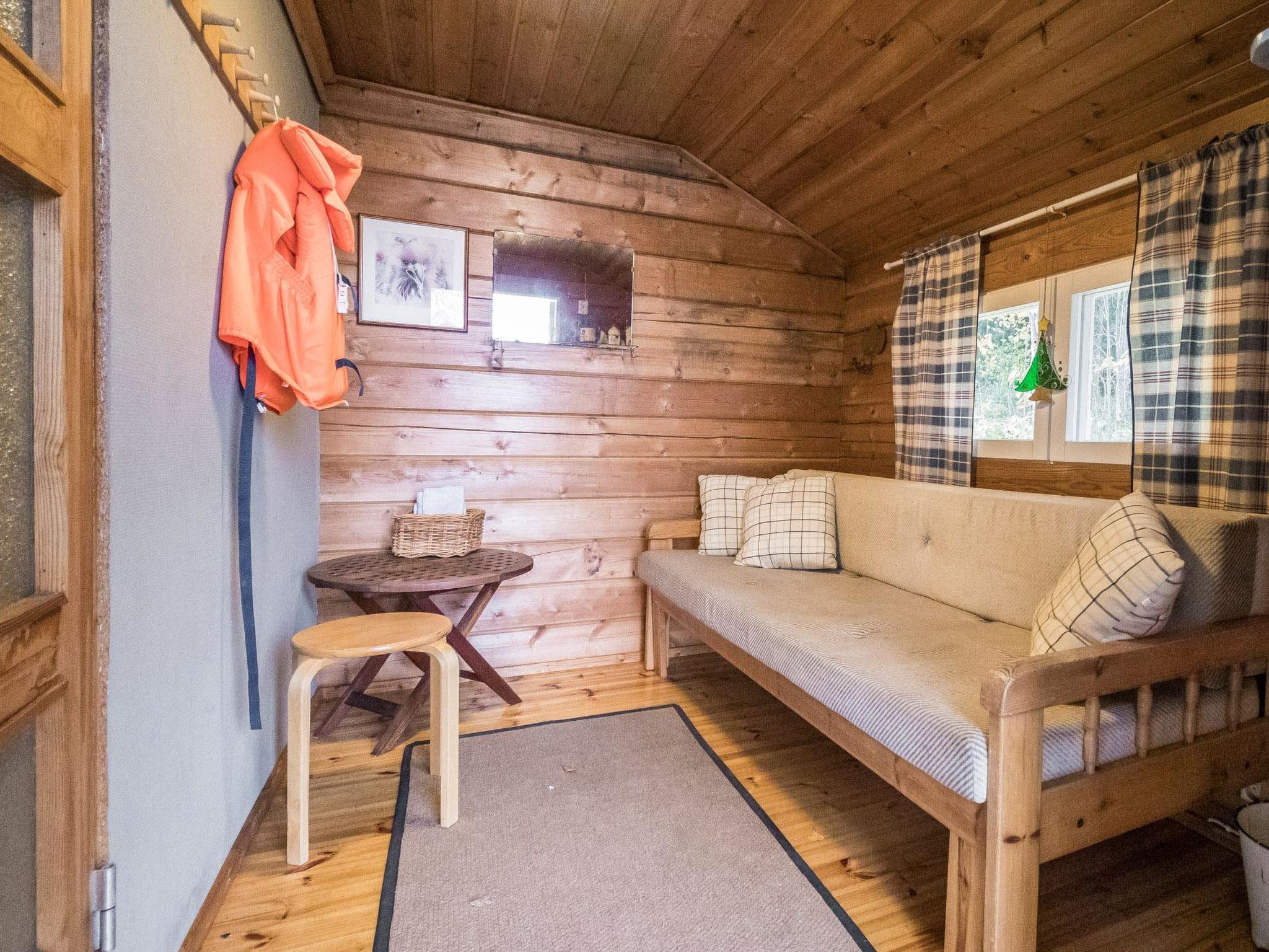 Log cottage 2000, renovated 2006, living room/kitchen, bedroom with double bed, bedroom with double bed, single bed and crib for a baby, sleeping loft (steep stairs to loft, low room height) 5 mattresses, sauna (electric stove), washroom, metal fireplace, open porch.