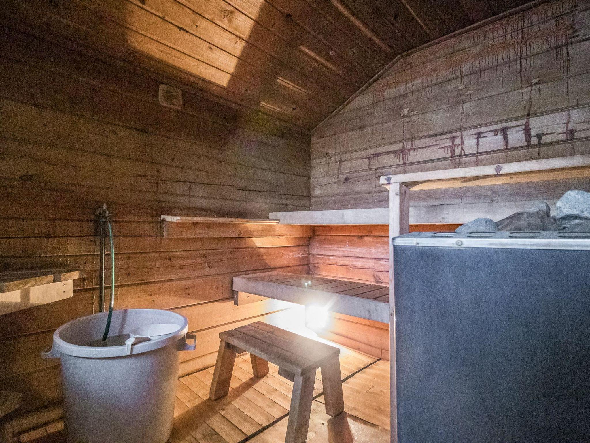Separate lakeshore sauna with electric light in dressing room, cold water pipe. Lakeshore sauna is in use from May to October.