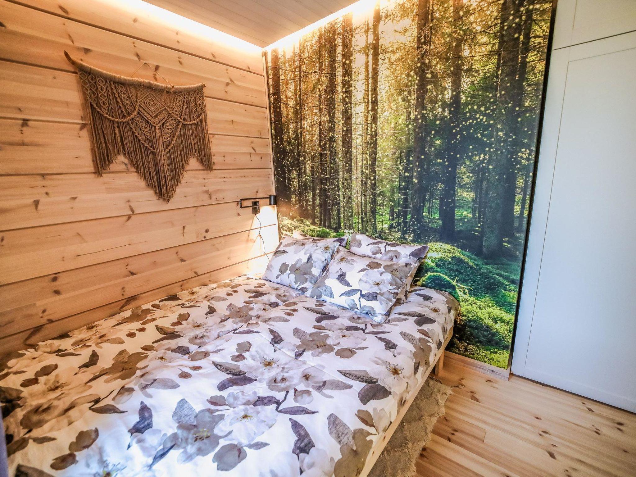 The villa has two bedrooms: one with a double bed and another with a pull-out bed that extends to 160 x 200 cm. Additionally, there is a spacious loft with two mattresses on the floor, comfortably accommodating up to six guests. The spacious living room is furnished with a sofa set, a dining table and chairs, a fireplace, and a smart TV. The well-equipped kitchenette includes a breakfast cabinet with a microwave, coffee maker, toaster, and kettle. The villa also features a separate WC with a washing machine.