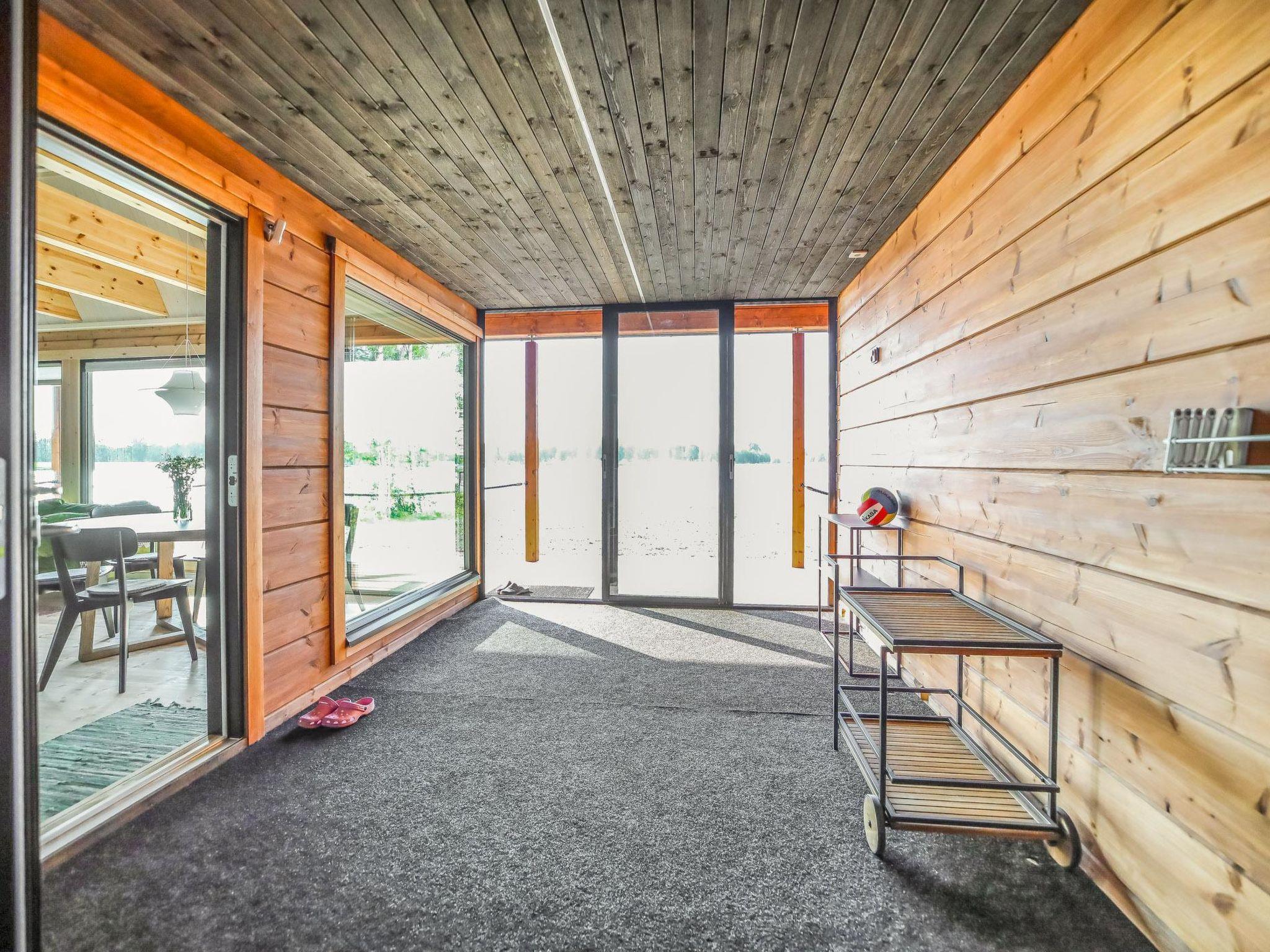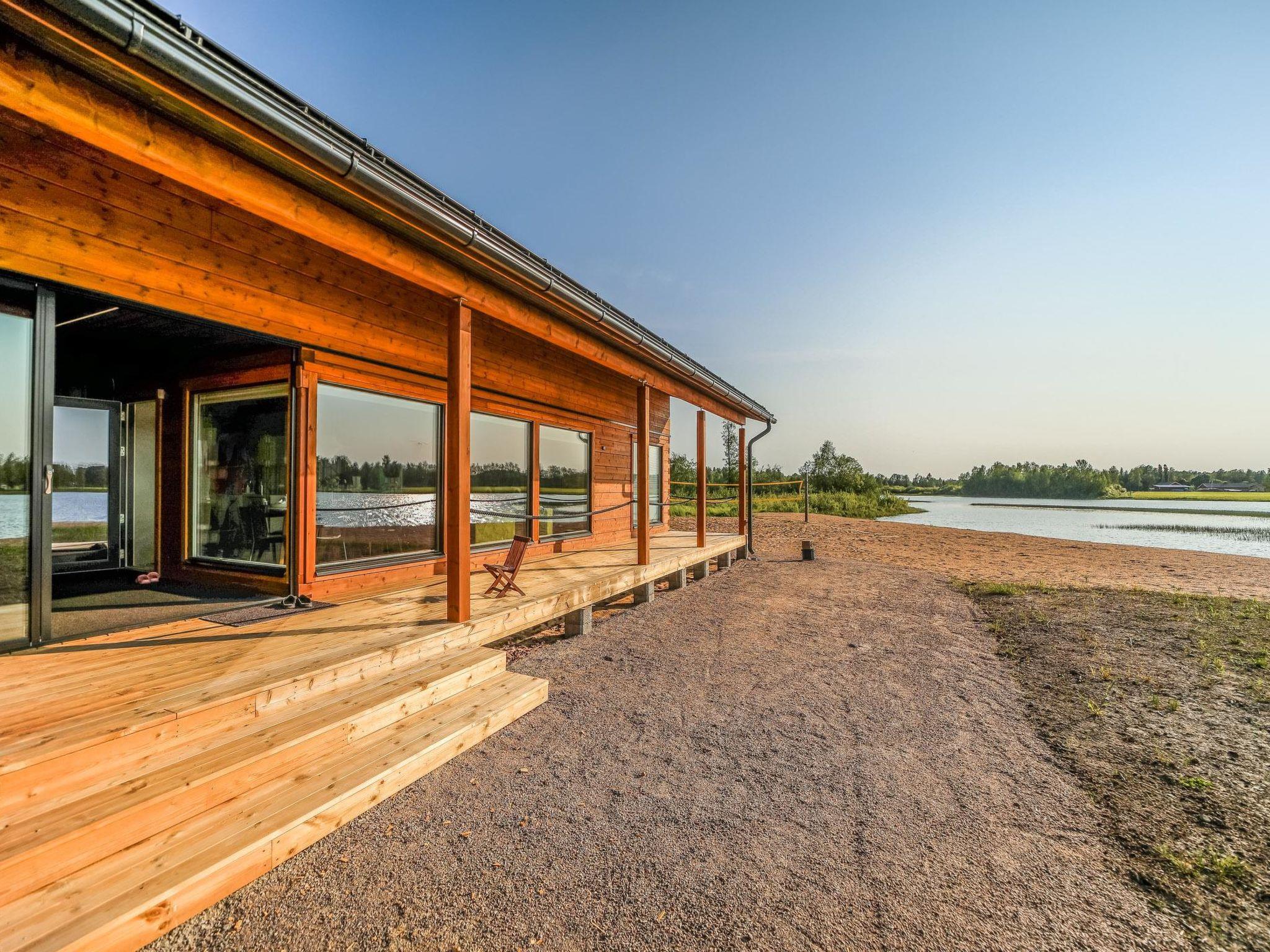 This log-constructed villa (2023) is equipped with modern comforts. The property features a shallow, soft sandy-bottomed shoreline, a private dock, and a rowing boat. In winter, guests can enjoy ice swimming right by the villa, with an ice hole pump keeping the opening clear throughout the season.