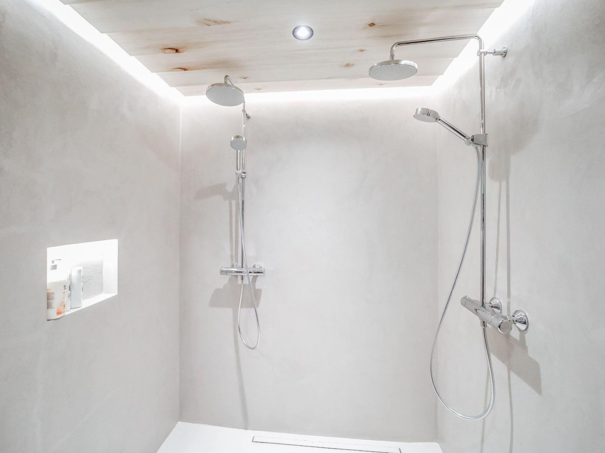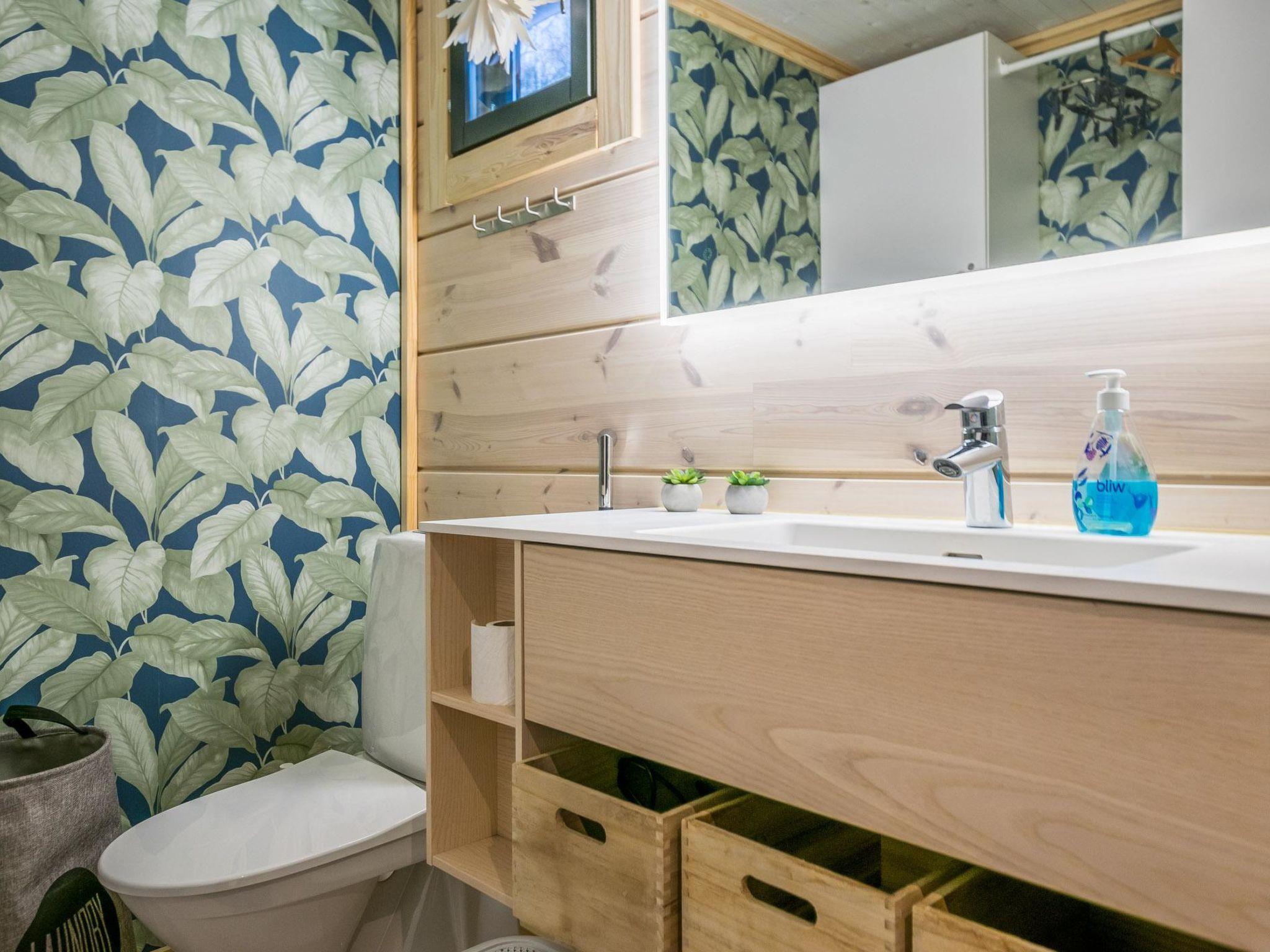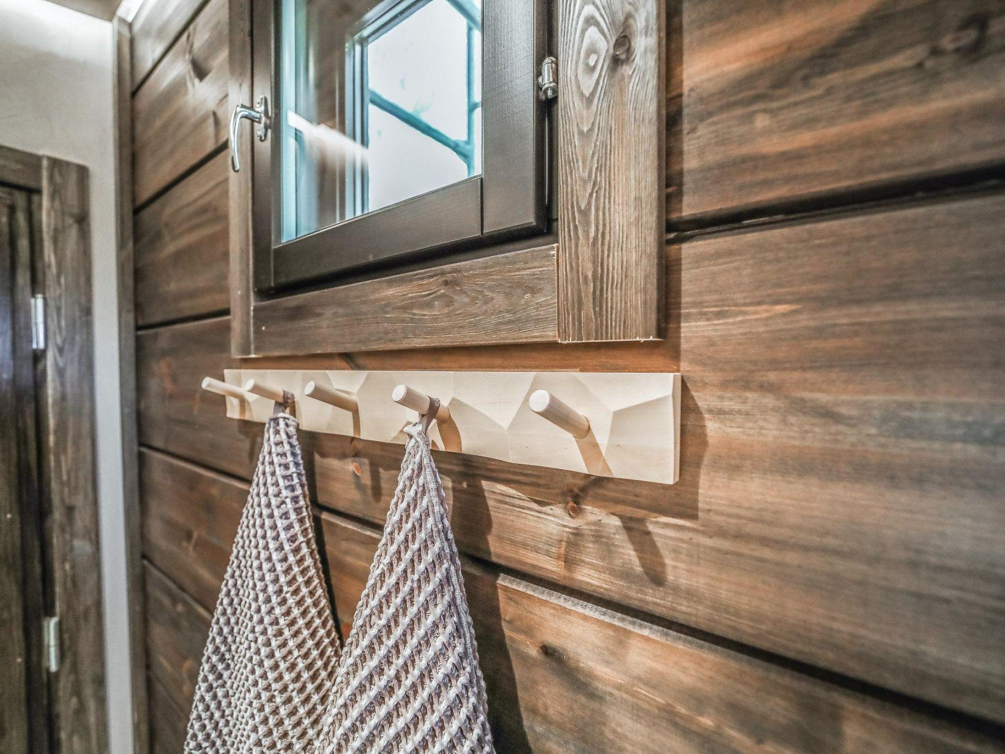 The sauna offers a unique experience with surfaces made from natural peat, creating a distinctive ambiance. The sauna area is separate from the main living space, allowing for late-night relaxation without disturbing those already asleep. It features a wood-heated sauna stove and a washroom with two showers. Between the sauna area and the main building, there is a cooling-off space with a glass-enclosed terrace, providing shelter from autumn winds and winter snow.