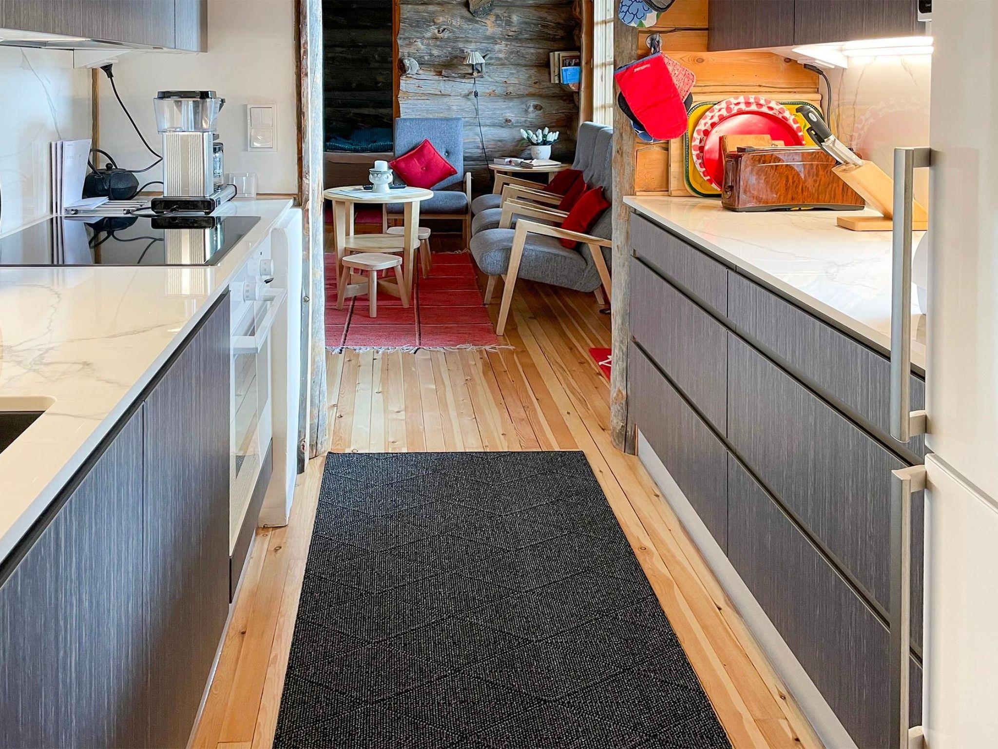 28 km north of Kuusamo, Ruka 4.6 km. Log cottage, built in 1986, bedroom 1: 120 cm wide bed + bunk bed, bedroom 2: 2 beds (joined together) + bunk bed, bedroom 3: 2 beds (joined together), living room, kitchen, electric sauna. The kitchen, sauna and washroom have been renovated in autumn 2023.