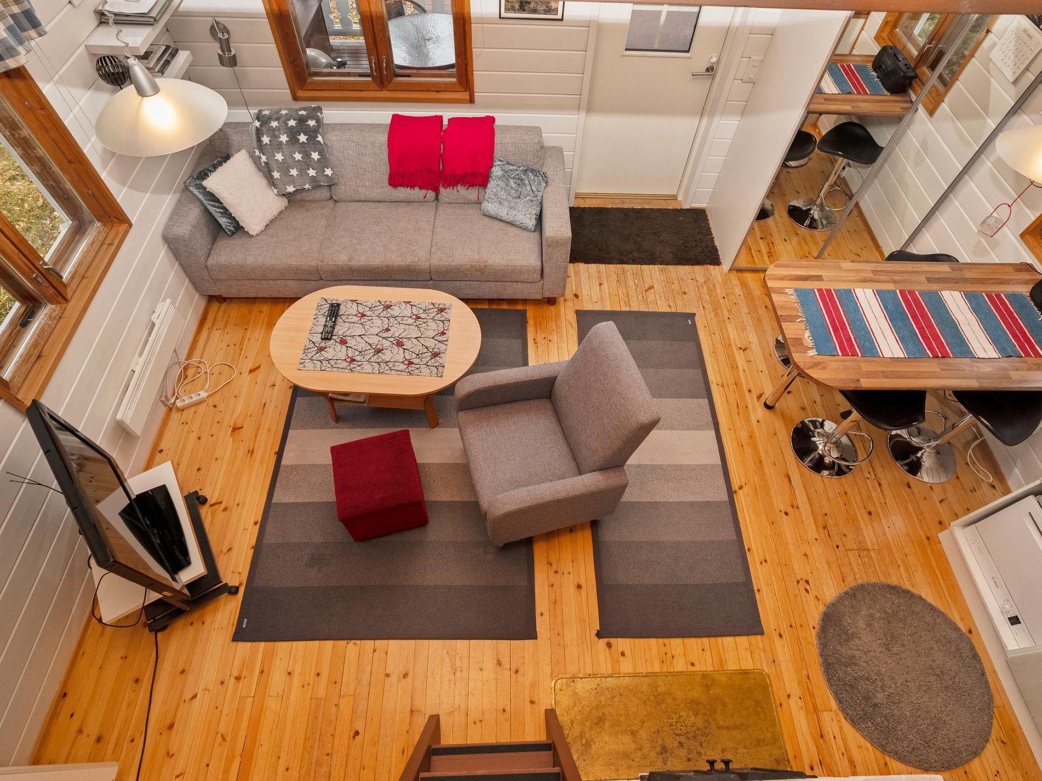 Cottage downstairs 42 m² + loft 12 m², living room (convertible sofa bed for 1-2 persons), fireplace, kitchen, bedroom with 140 cm wide bed, loft (steep stairs) with 3 mattresses, wood heated sauna, renovated bathroom, terrace.