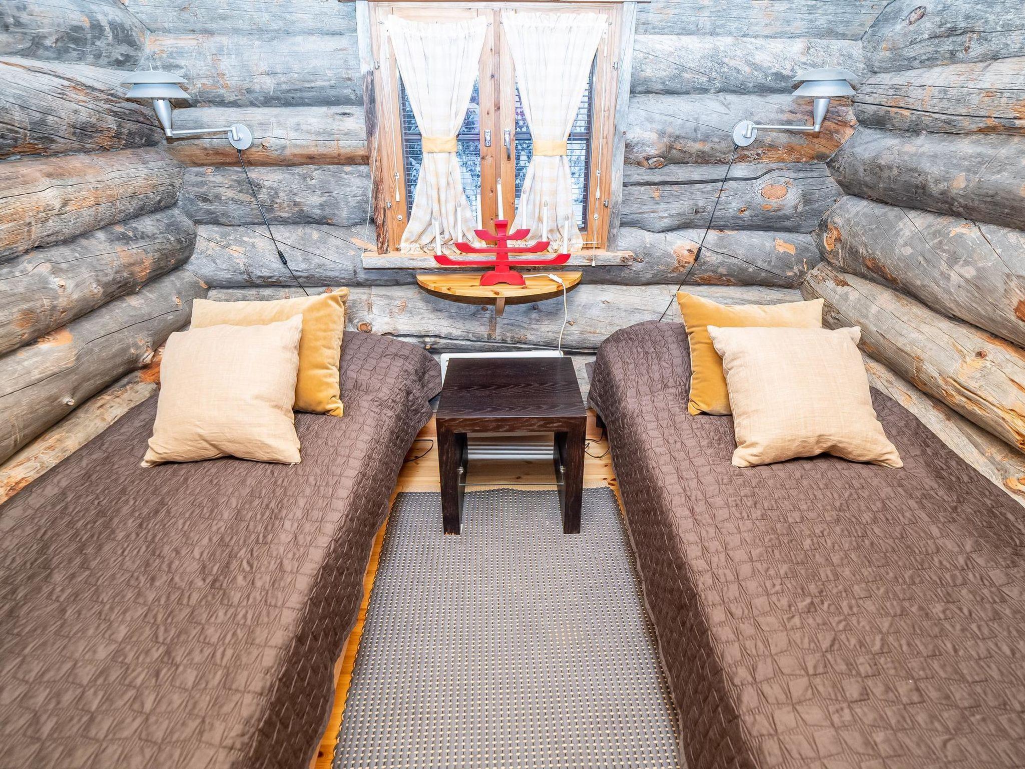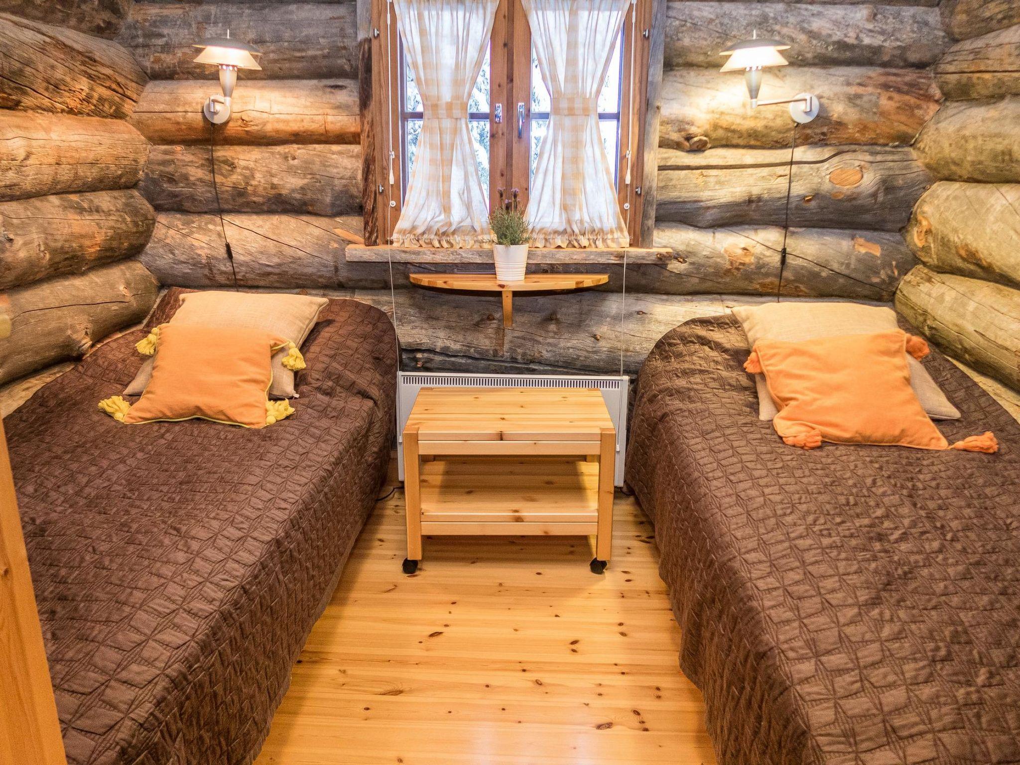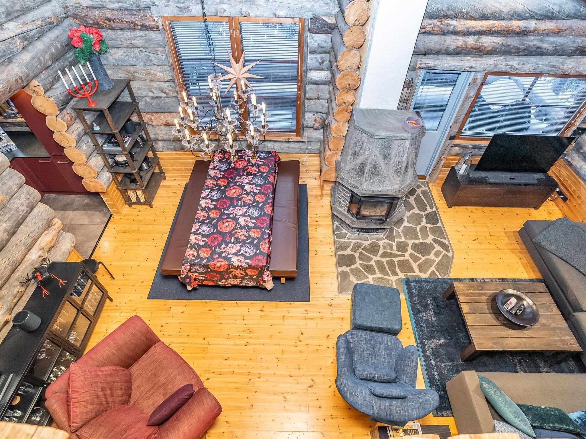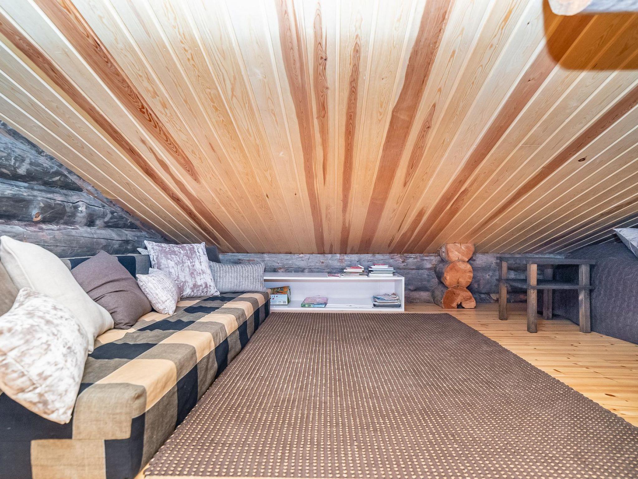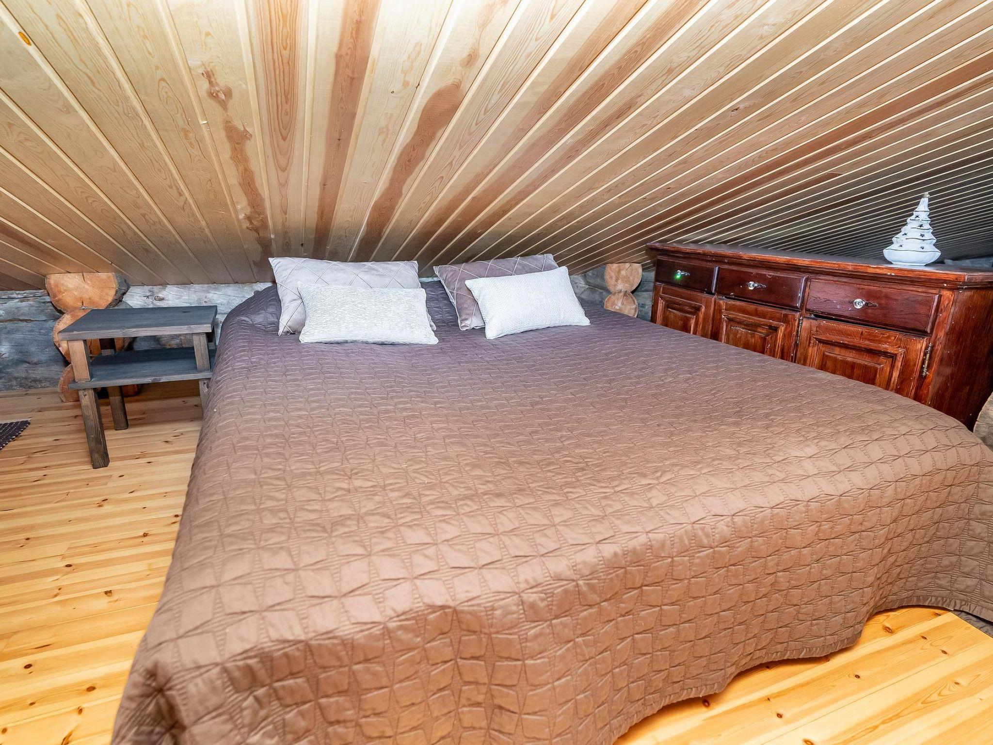 Kelo log cabin, built in 1990. Bedroom 1: double bed, bedrooms 2-3: 2 beds, loft: 2 double beds + 2 beds (the villa will be rented for maximum 10 people). Kitchen, living room, electric sauna, carport for two cars. Kitchen, bathroom and toilets renovated 12/2021.