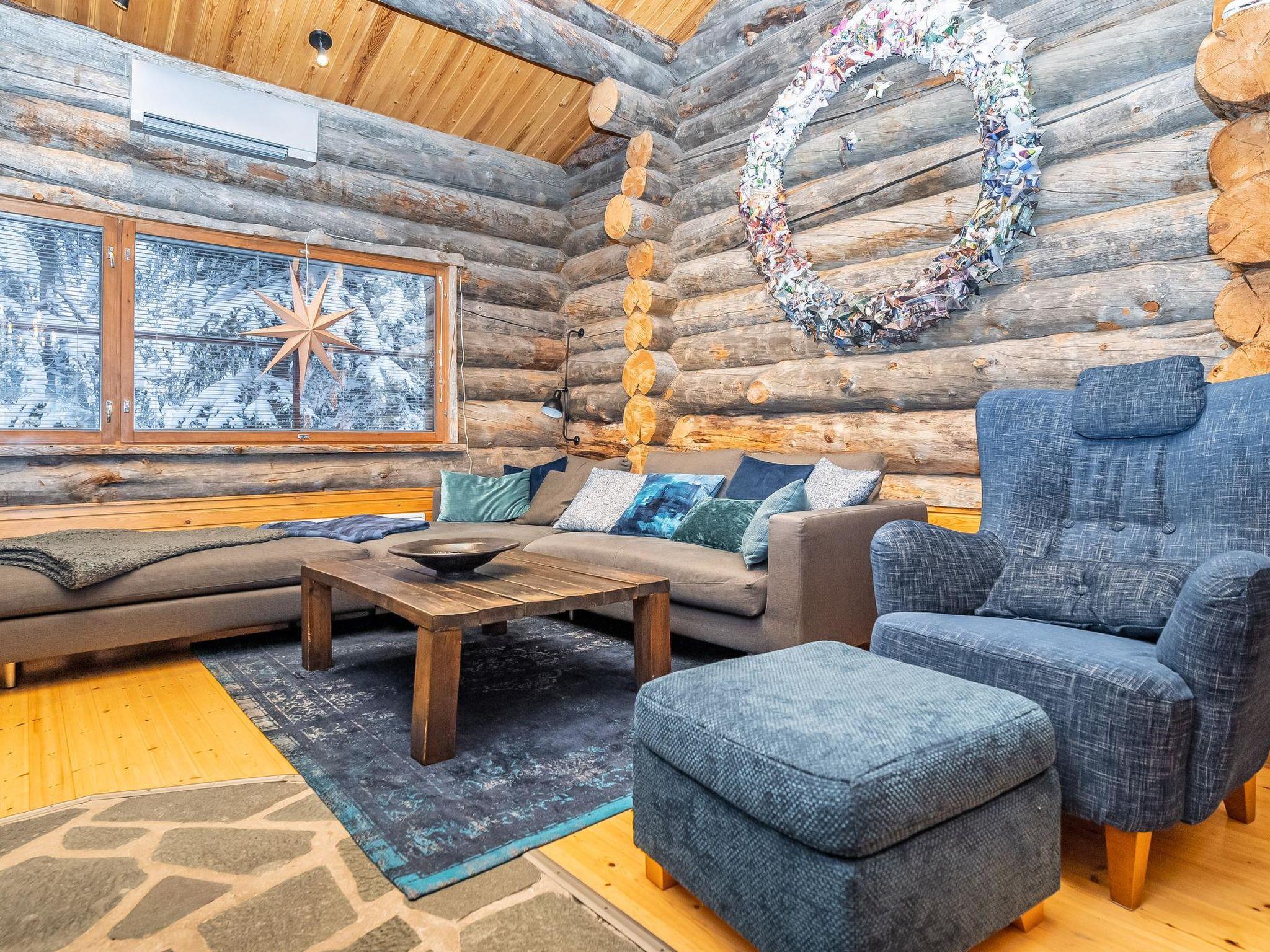 Stylish kelo log villa in East-Ruka, in the middle of nature, 4,6 km from ski slopes of Vuosseli.