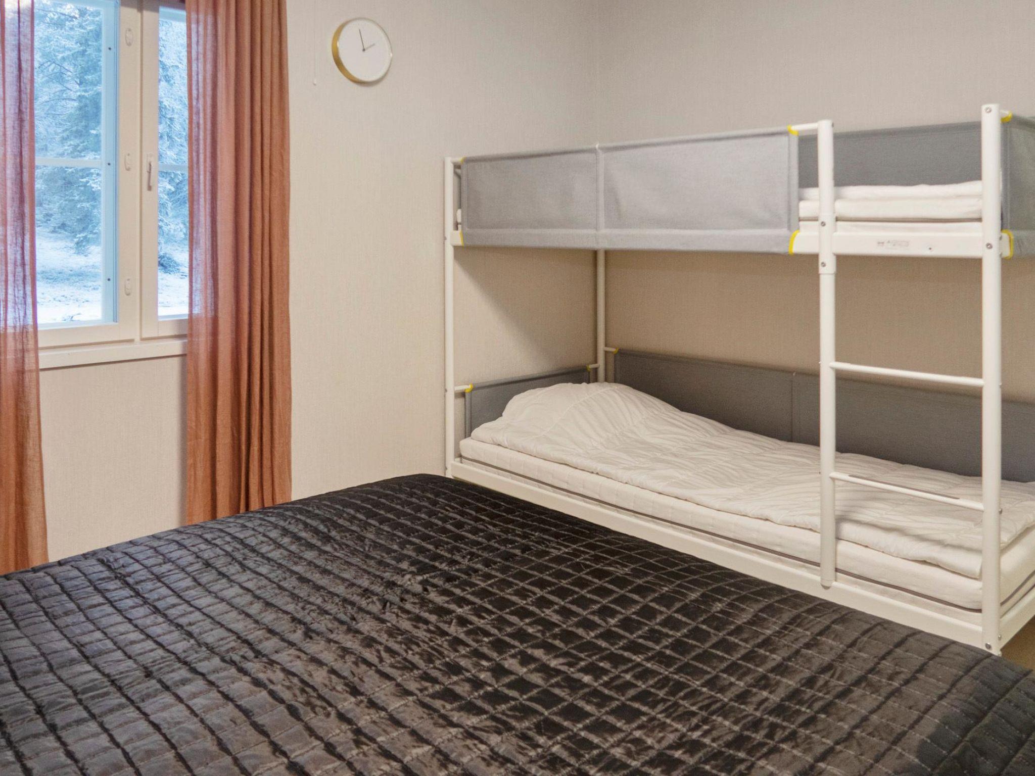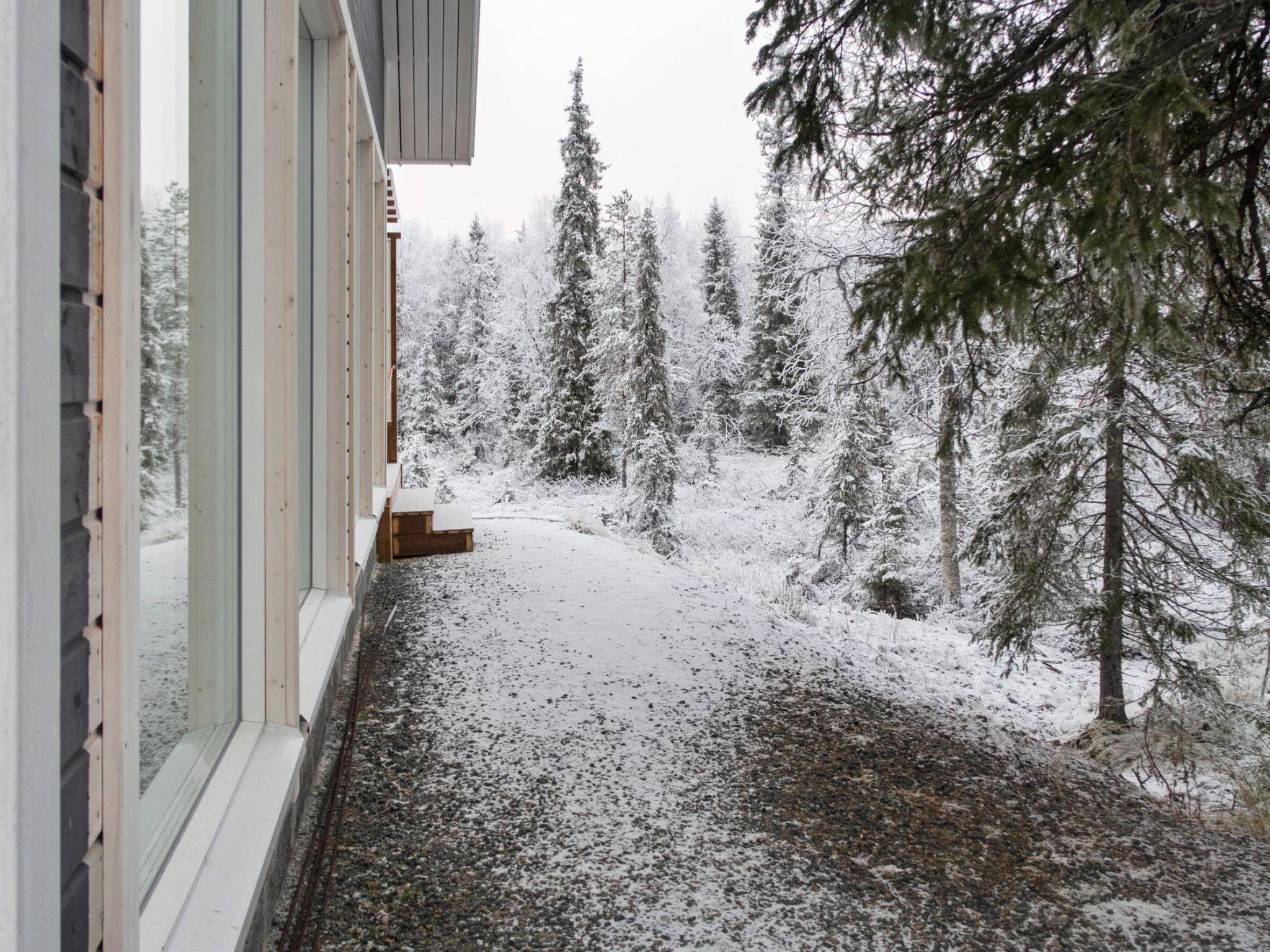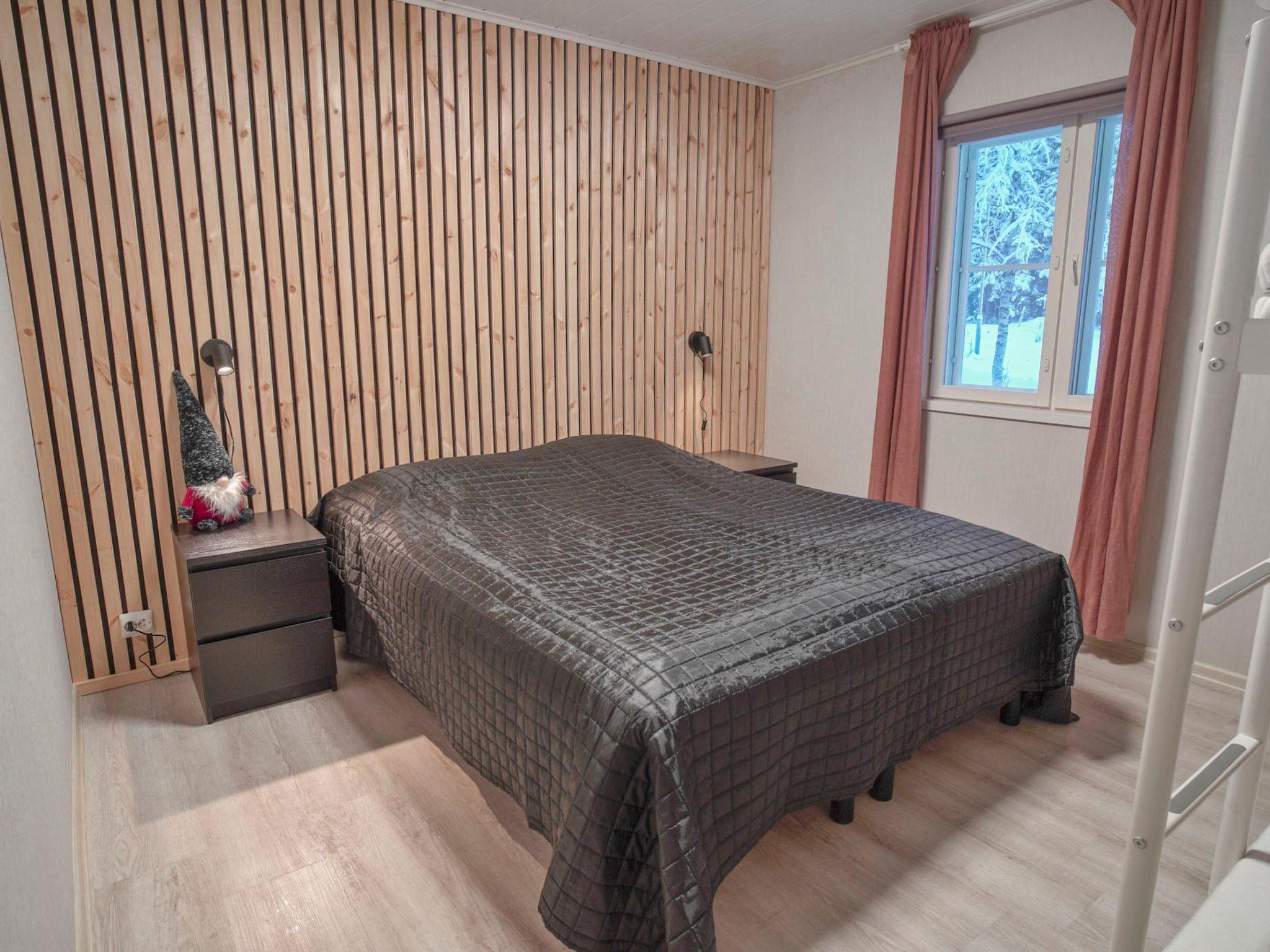 20 km to the north from Kuusamo, Ruka 7 km, lake Pyhäjärvi 700 m. Apartment in the semi-detached house, built in 2020. Spacious living room/kitchen, bedroom 1: 2 beds and bunk bed, bedroom 2: double bed, washroom, WC, electric sauna, glazed terrace, car shelter.