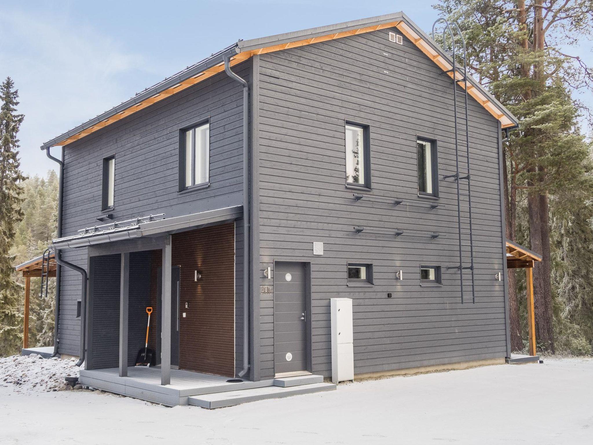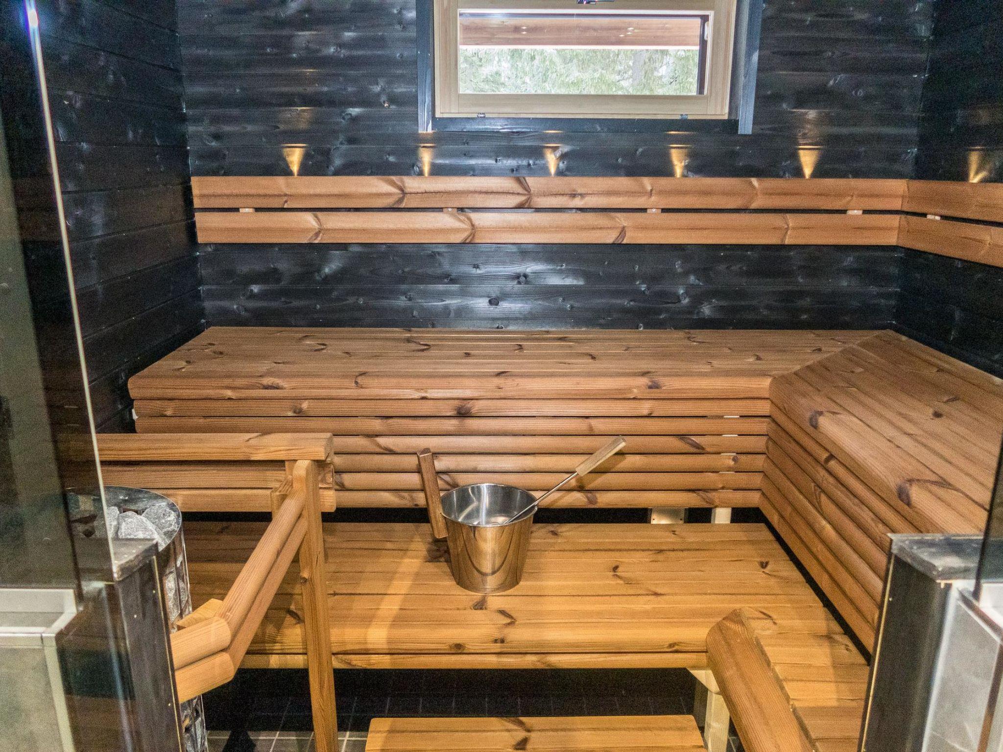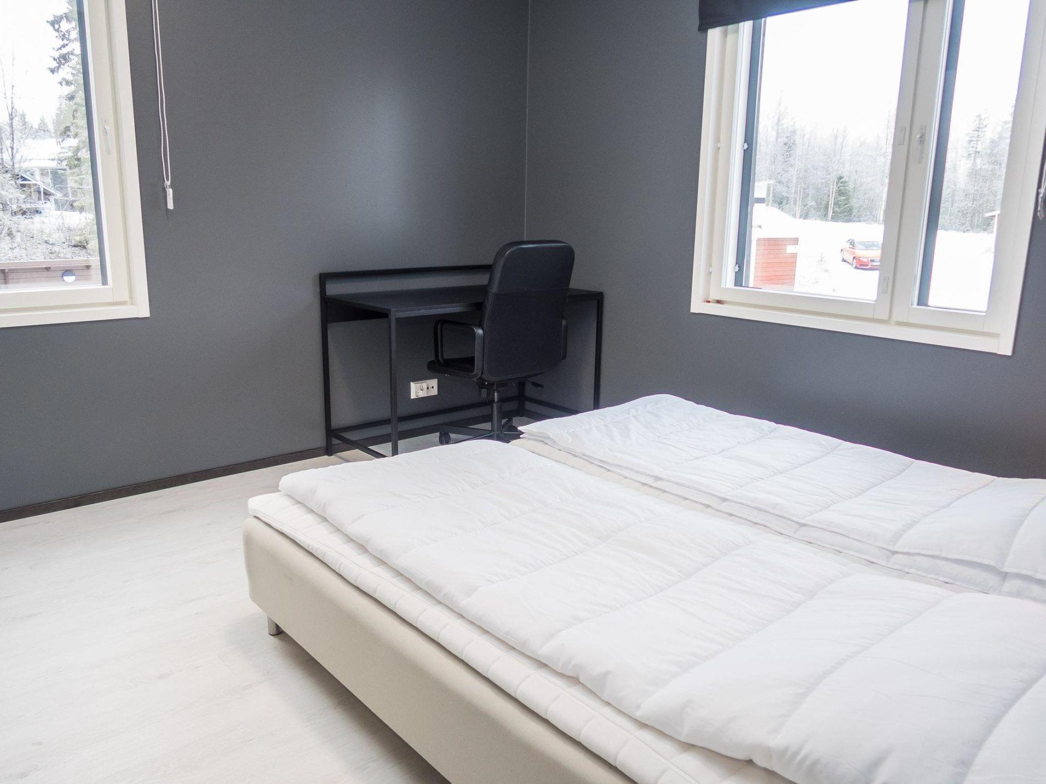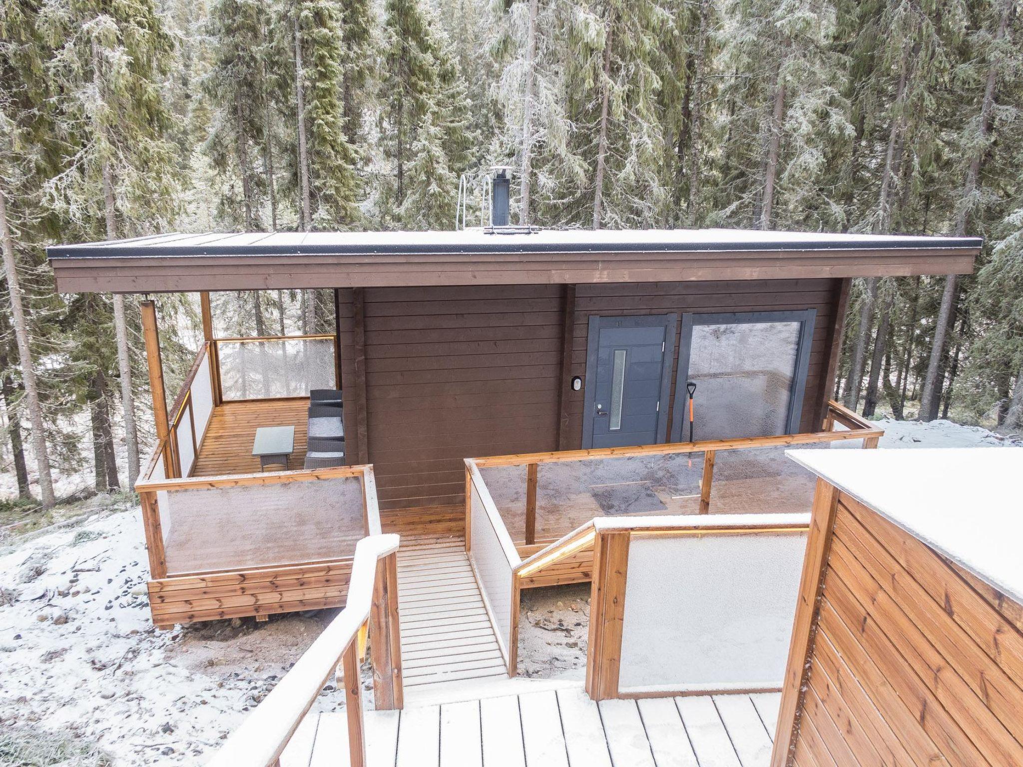 Stylish and spacious cabin by the pond Salmilampi, close to services of Ruka. All 5 bedrooms of the cabin are located upstairs. Three bedrooms have 2 separate beds and two have bunk beds. There is an electric sauna in the cabin. Wood-heated lakeside sauna with facilities for resting can be rented at additional cost. A glazed cooking hut is available for customers. Hydromassage bath outdoors on the cottage terrace for additional fee.