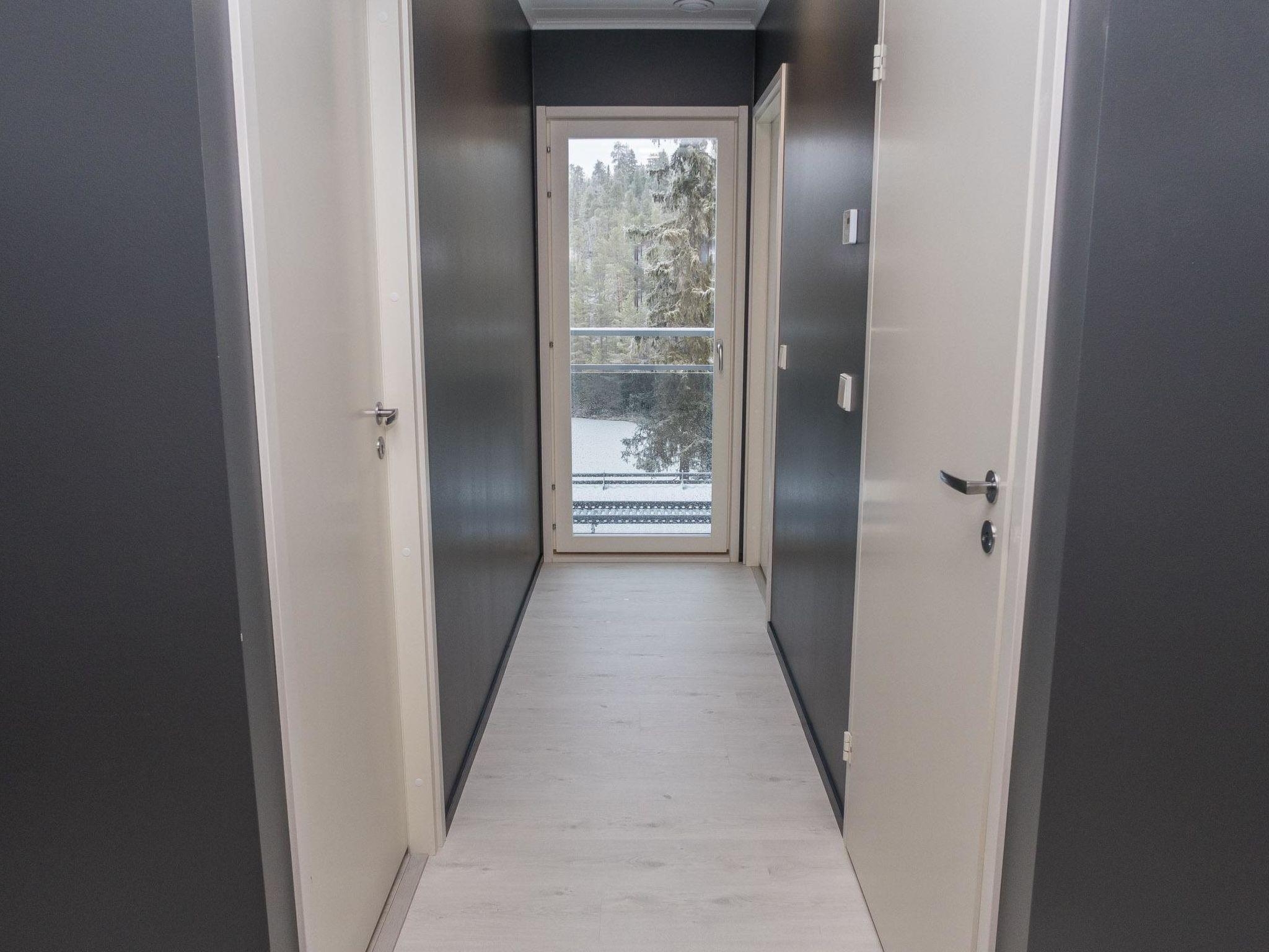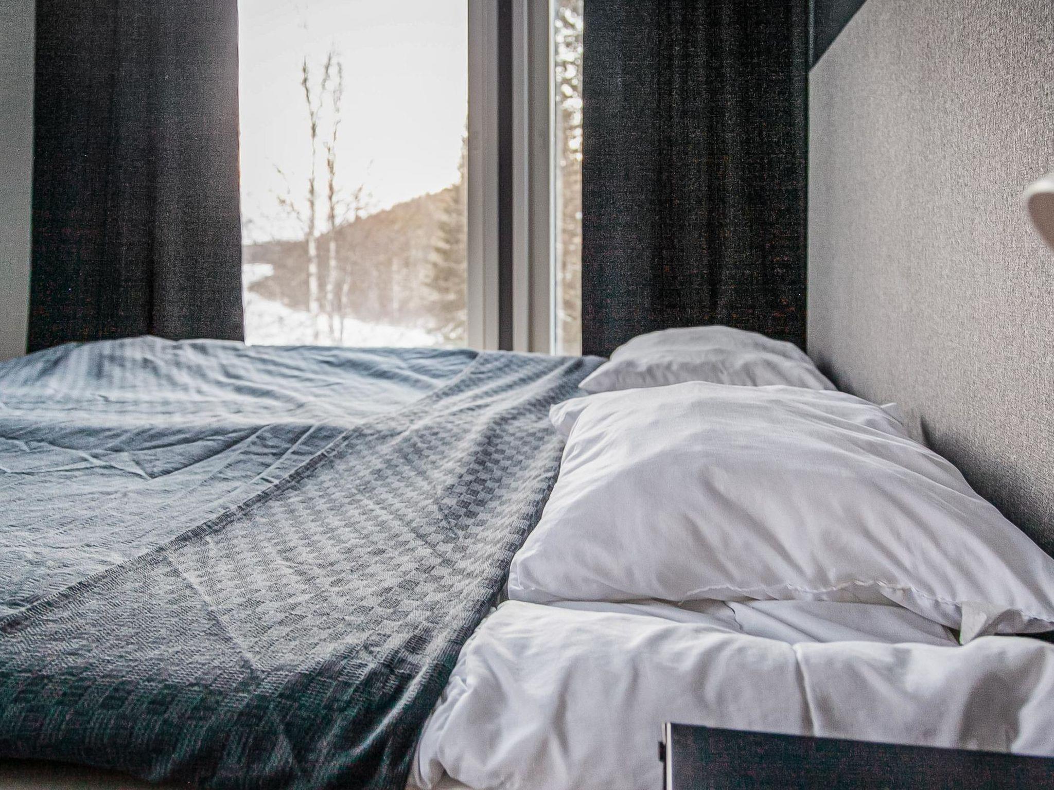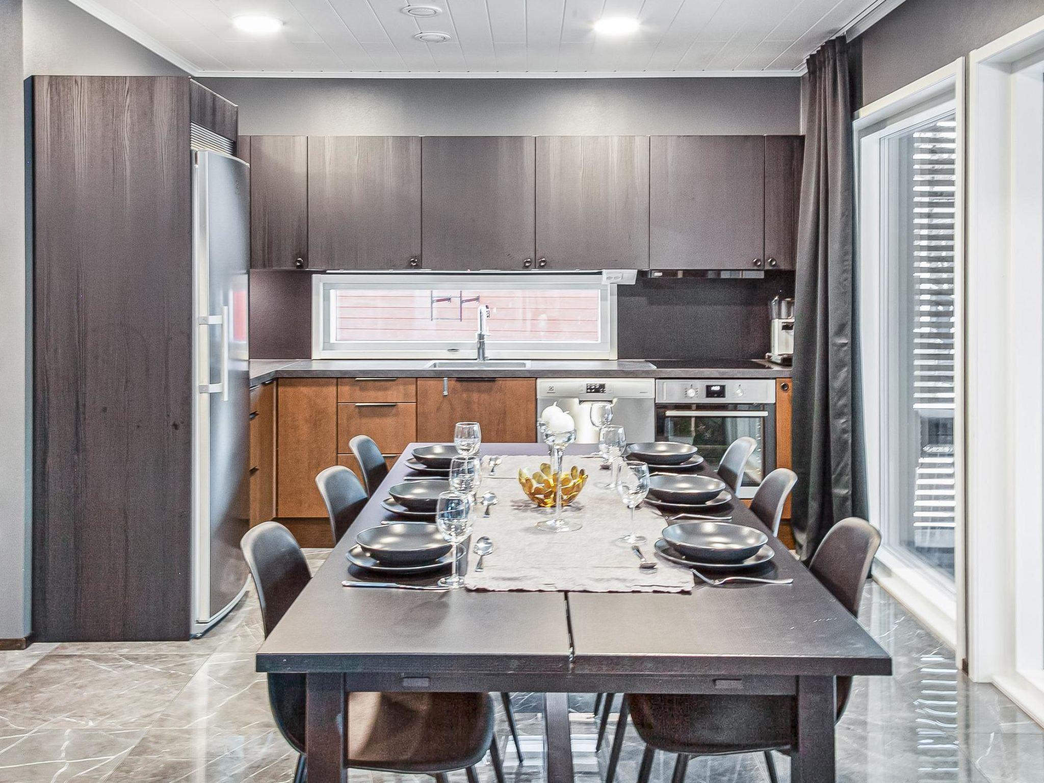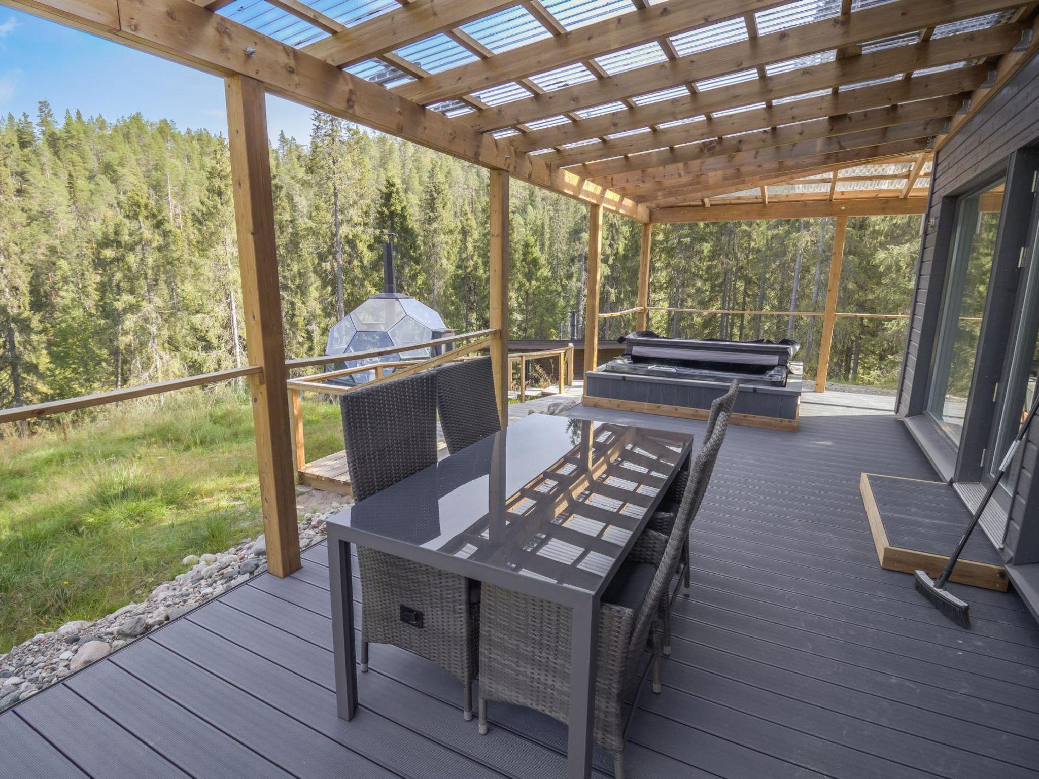 Stylish and spacious cabin by the pond Salmilampi, close to services of Ruka. All 5 bedrooms of the cabin are located upstairs. Three bedrooms have 2 separate beds and two have bunk beds. There is an electric sauna in the cabin. Wood-heated lakeside sauna with facilities for resting can be rented at additional cost. A glazed cooking hut is available for customers. Hydromassage bath outdoors on the cottage terrace for additional fee.