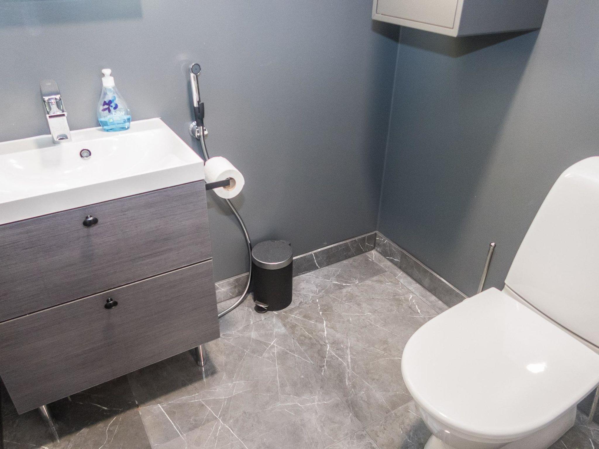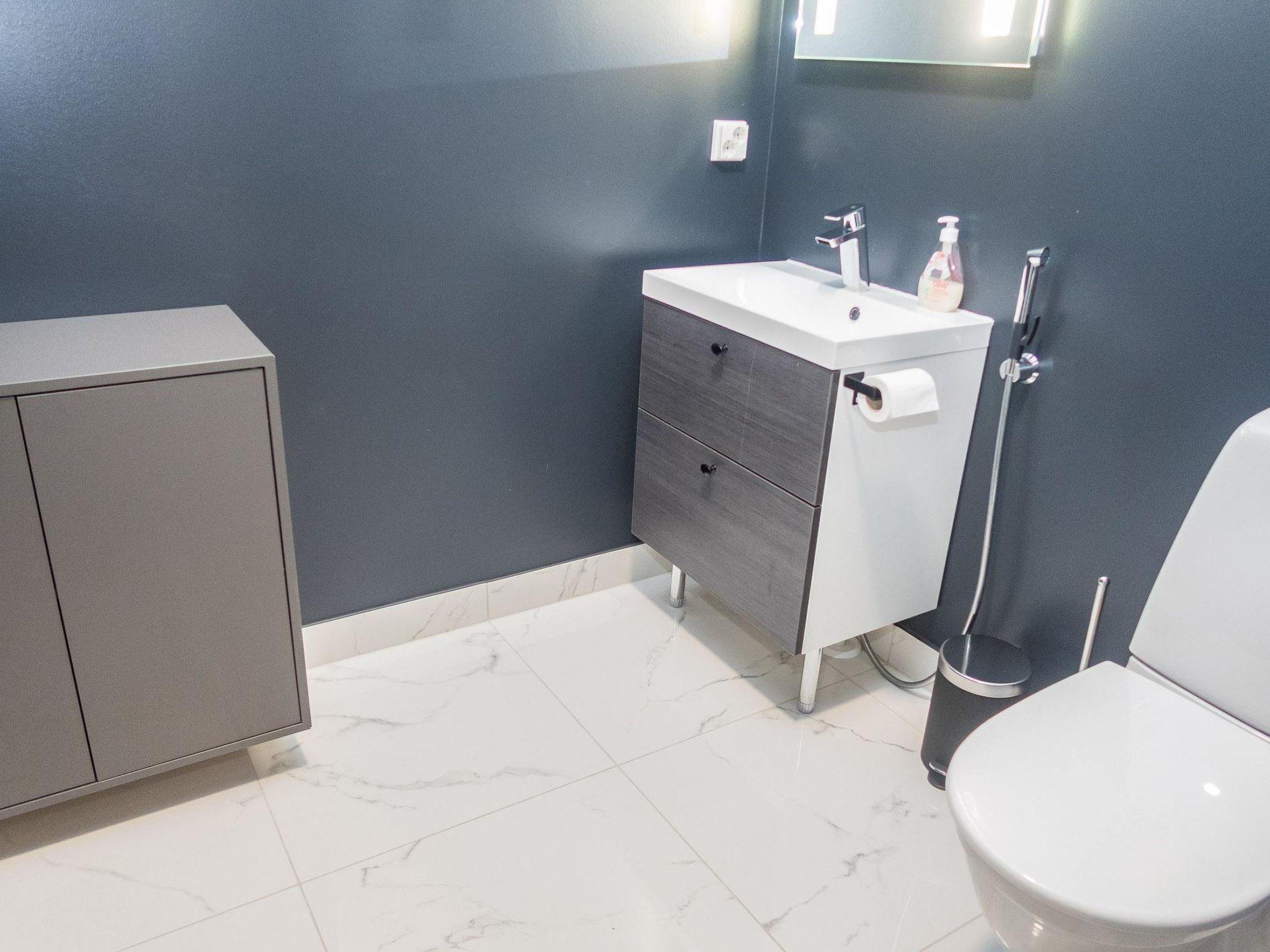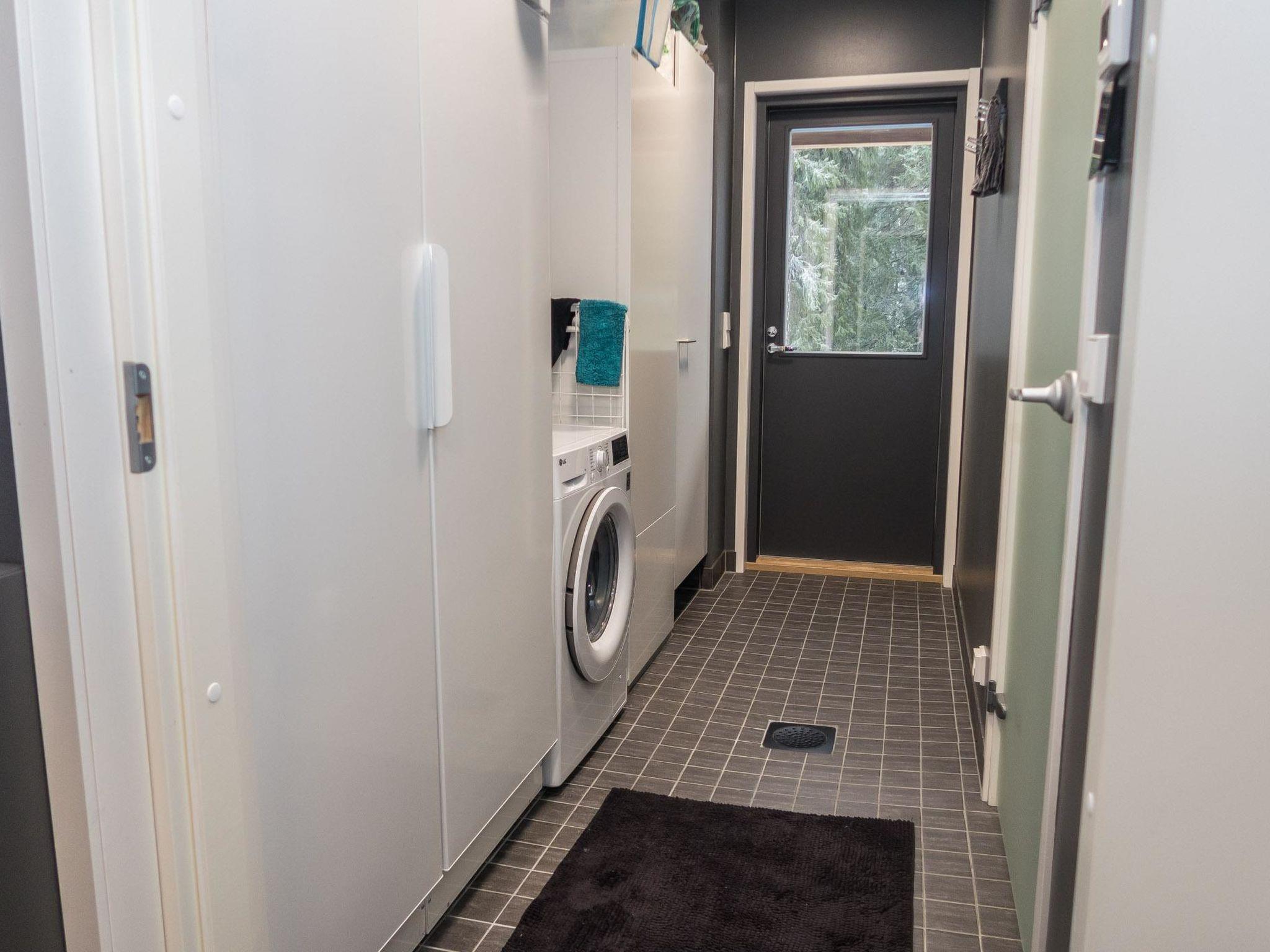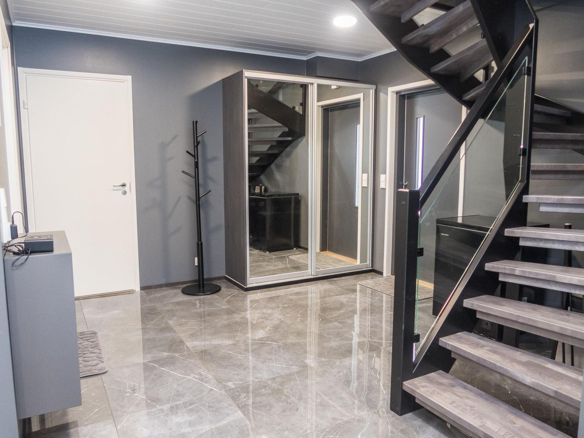 Stylish and spacious cabin by the pond Salmilampi, close to services of Ruka. All 5 bedrooms of the cabin are located upstairs. Three bedrooms have 2 separate beds and two have bunk beds. There is an electric sauna in the cabin. Wood-heated lakeside sauna with facilities for resting can be rented at additional cost. A glazed cooking hut is available for customers. Hydromassage bath outdoors on the cottage terrace for additional fee.