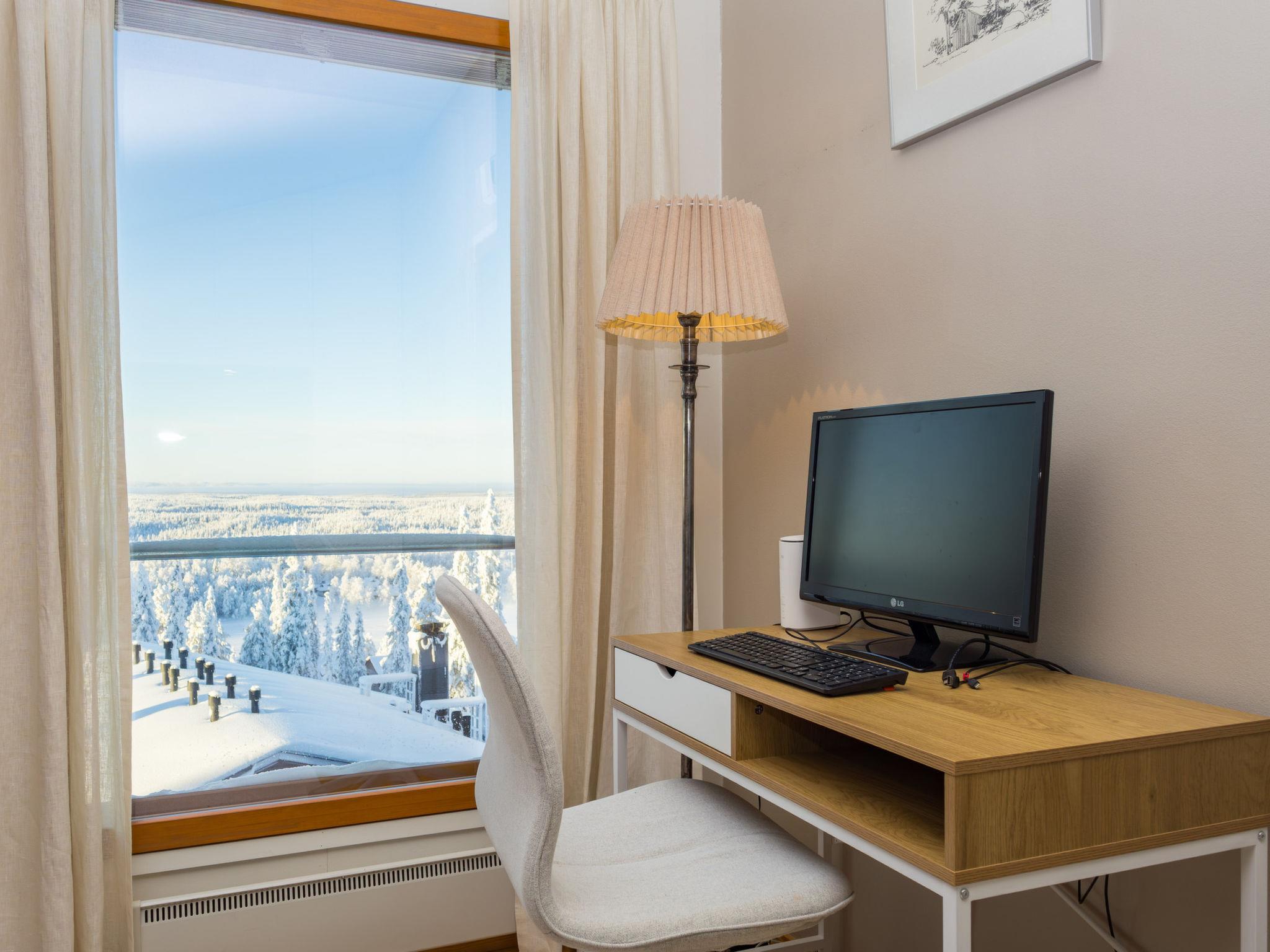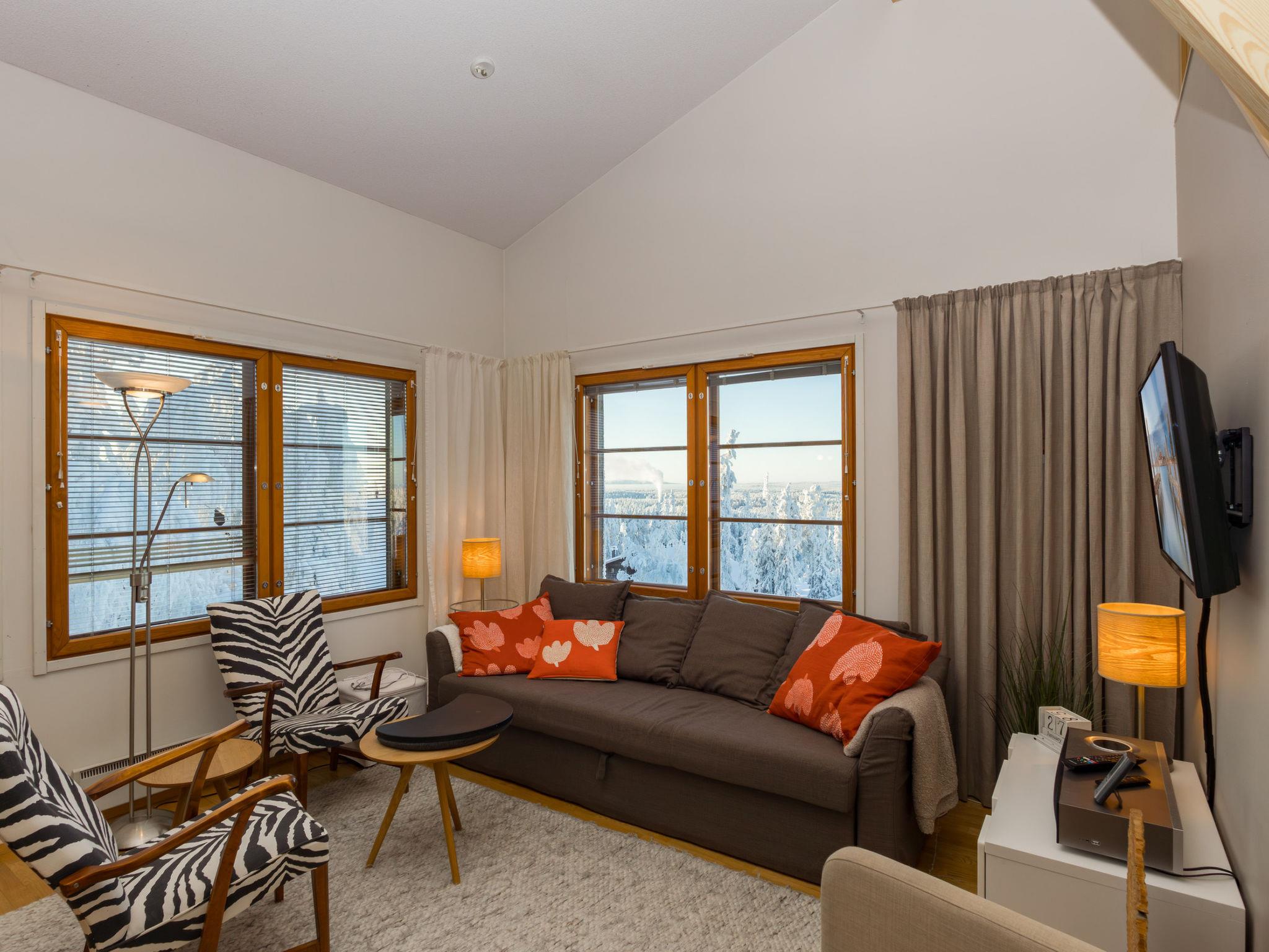 Welcome to enjoy the unique scenery from this apartment in Ruka. The living room offers splendid views of Ruka's magnificent terrain.