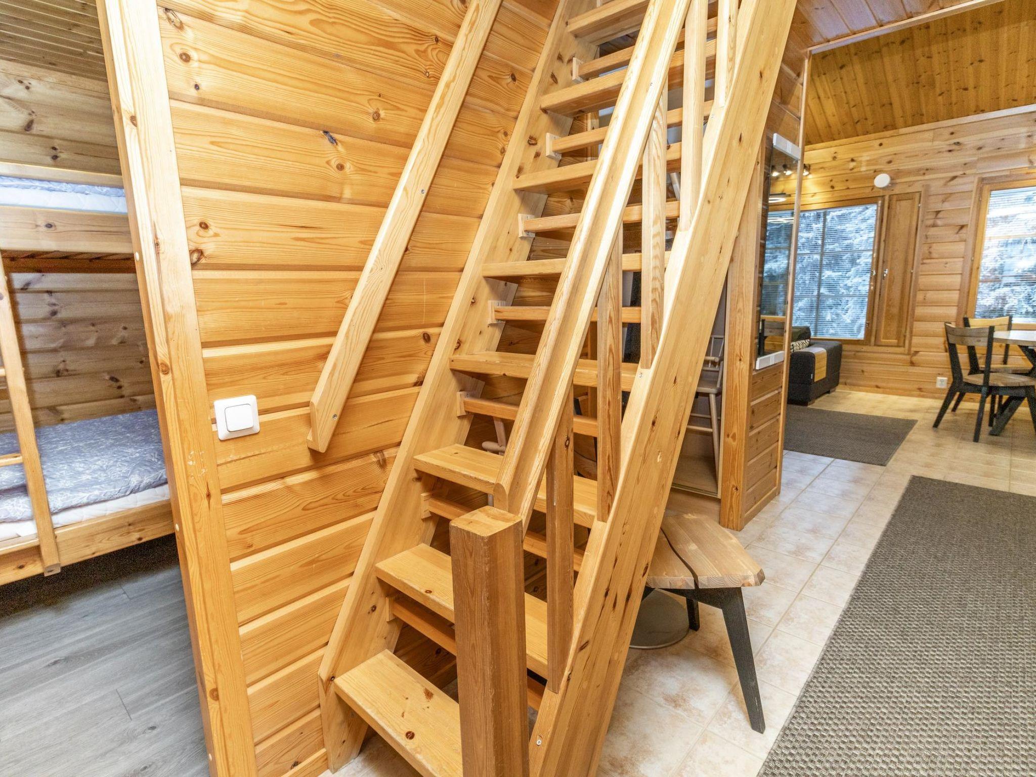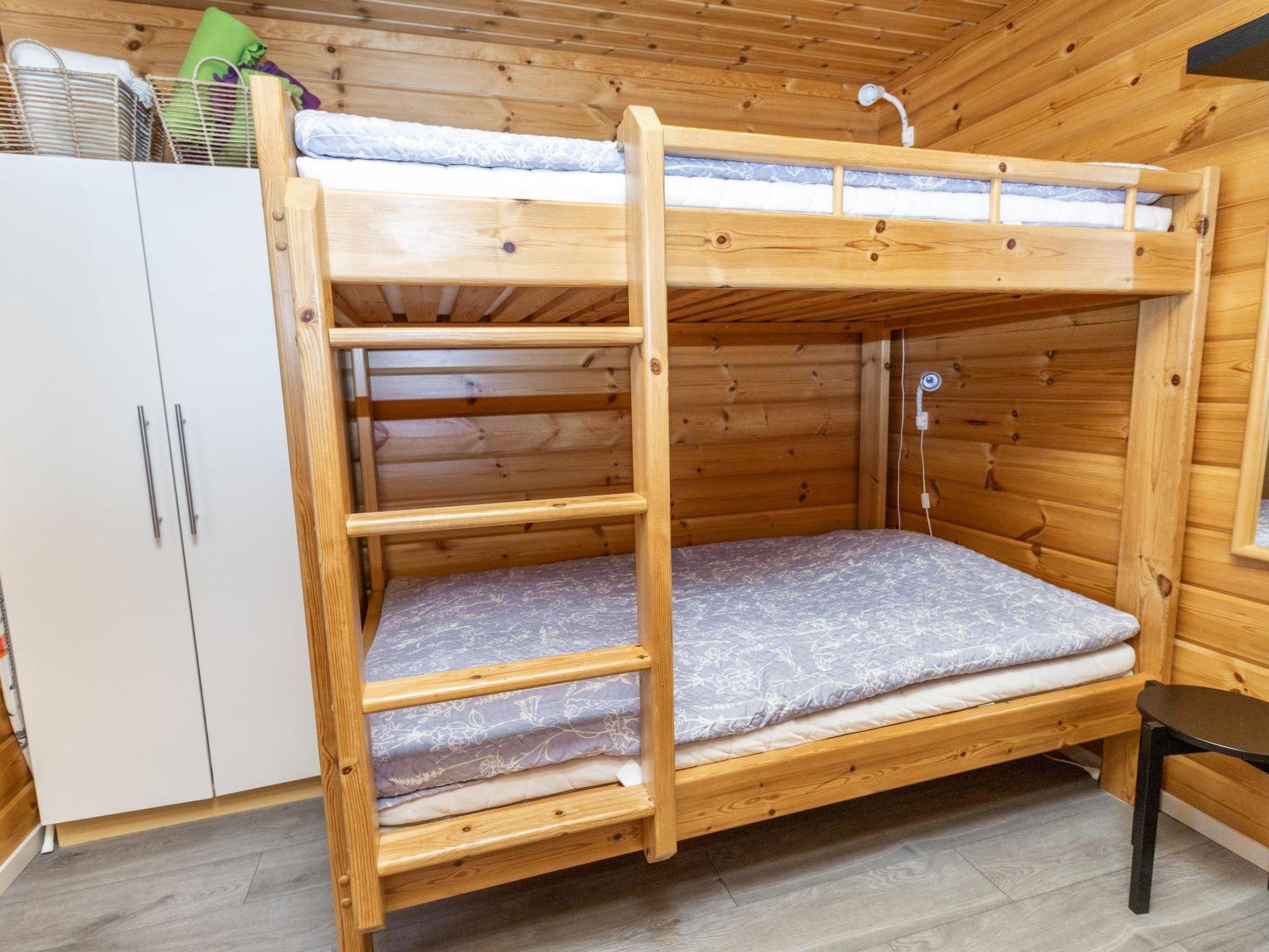 In this bright row apartment built in 1999 in Vuosseli, Ankkurikuja, you have everything you need for a relaxing vacation. The apartment comprises three bedrooms in total: two on the ground floor and one in the loft. One of the ground floor bedrooms features a double bed, while the other has a 120 cm wide bunk bed. The loft bedroom also includes a double bed, and an open loft area has two additional beds. The apartment accommodates a maximum of six people.