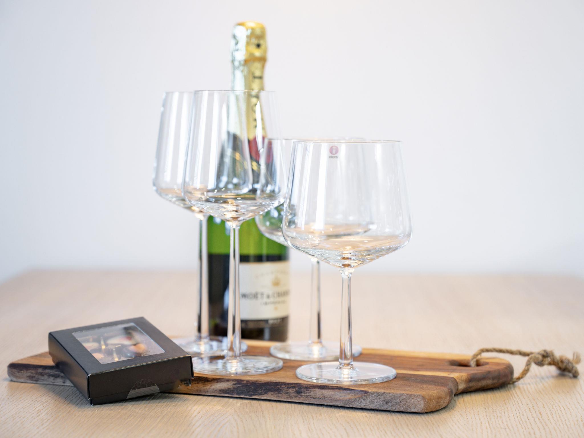 The two bedrooms comfortably accommodate a family or a small group of friends: one bedroom has a 160 cm double bed, and the other has a bunk bed with a 120 cm wide lower bed. The open-plan kitchen and cozy living area provide a perfect space for spending time together, and at the end of the day, you can unwind in the electric sauna.