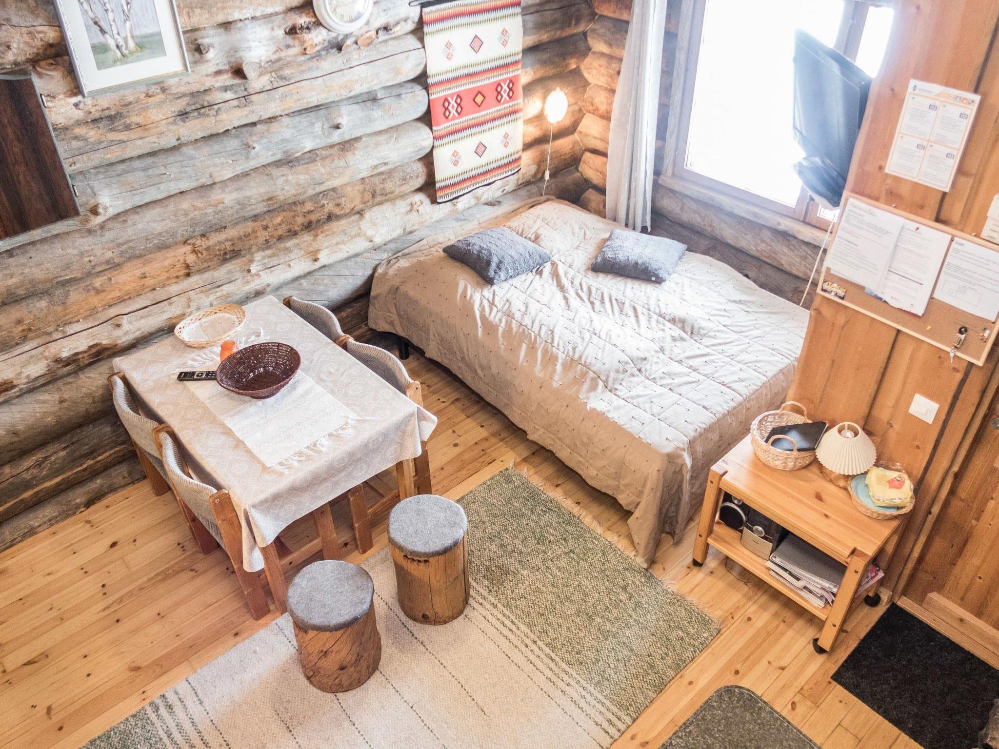 25km north of Kuusamo, Ruka 3.5km, Salmilampi pond 200m. Studio in log-built row house, built in 1987, living room: double bed (140 cm), loft (10 m², sloping ceilings, low room height, steep stairs): 2 mattresses, combined kitchen/living room, electric sauna.