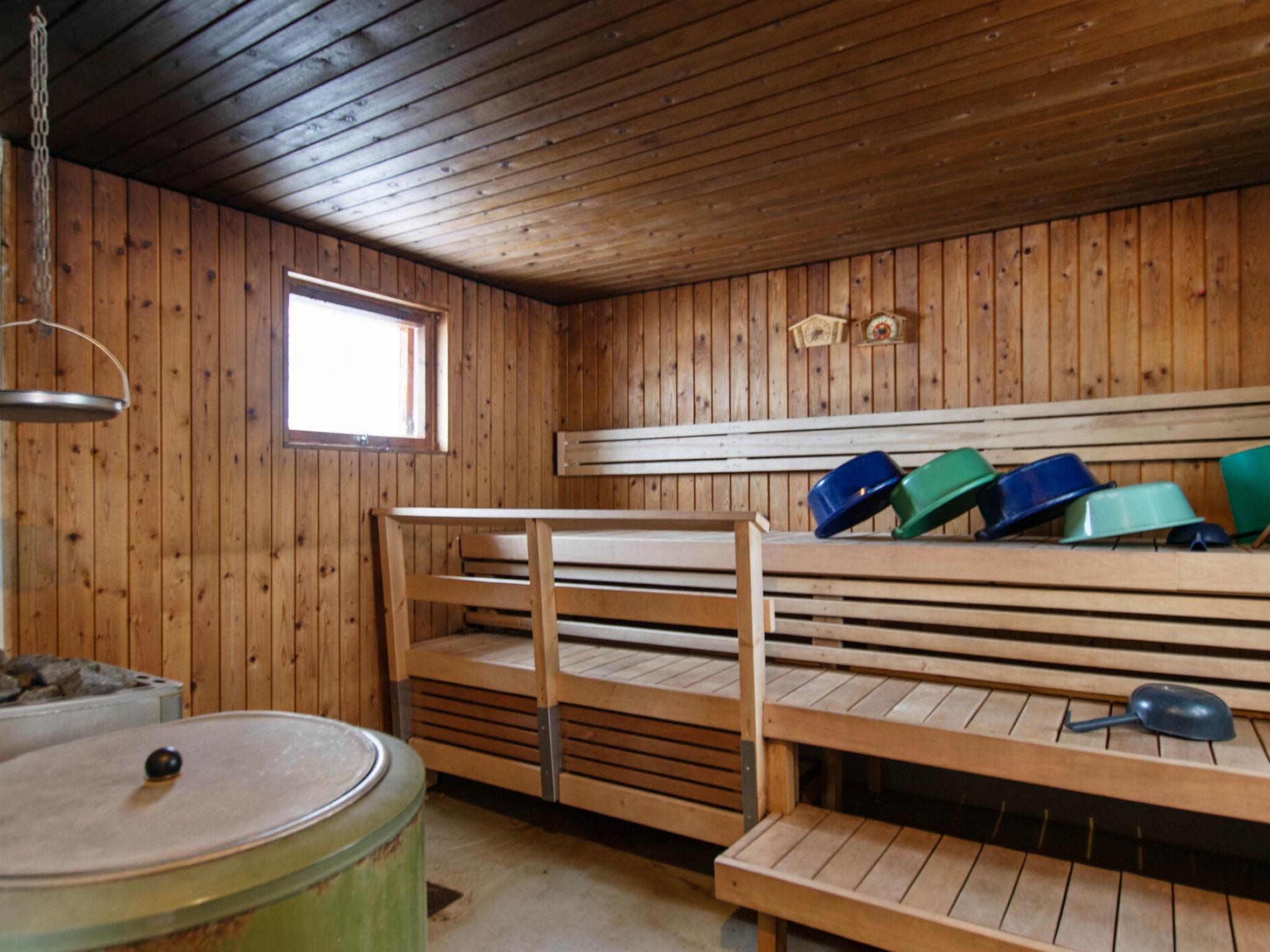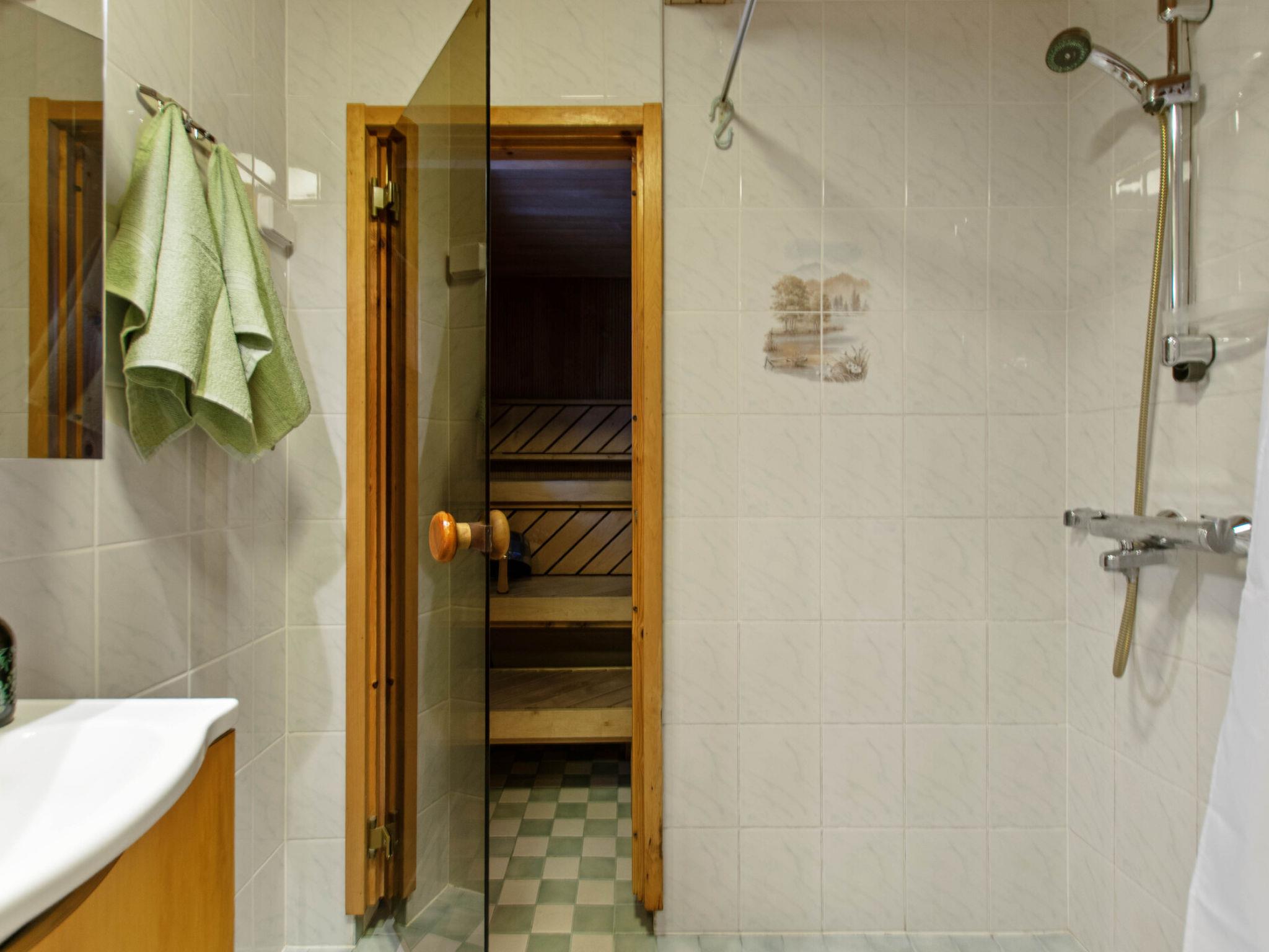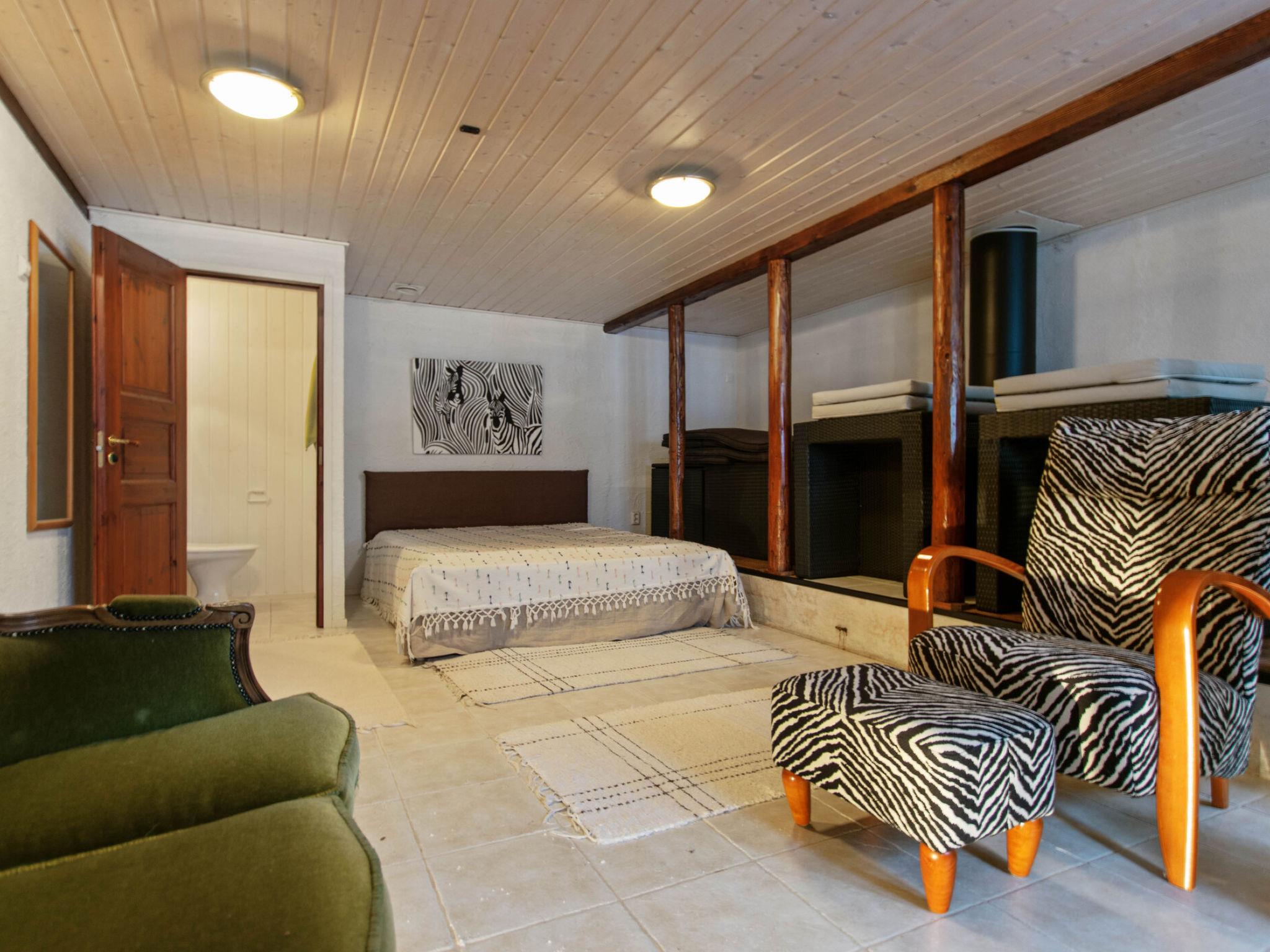 On the ground floor, there is a sauna with an electric stove. The washroom includes a shower, toilet, and washing machine. Sleeping accommodations are located in the loft, which has a double bed and two single beds. The barn bedroom with a double bed is available from 15 May to 31 September.
