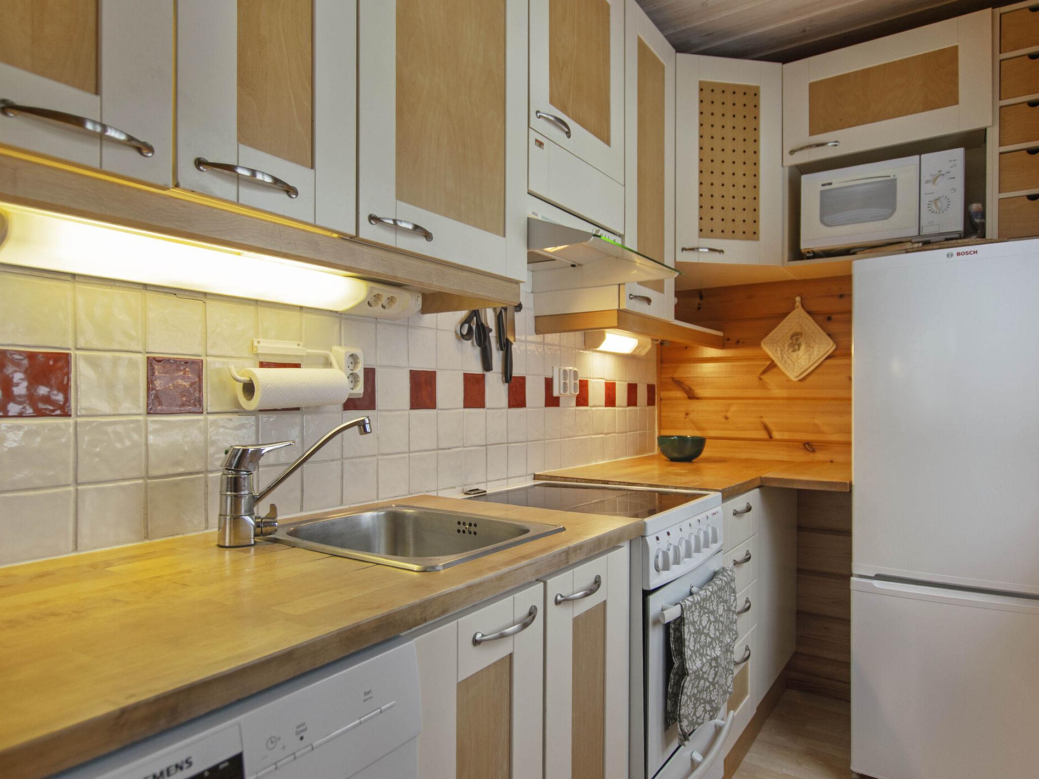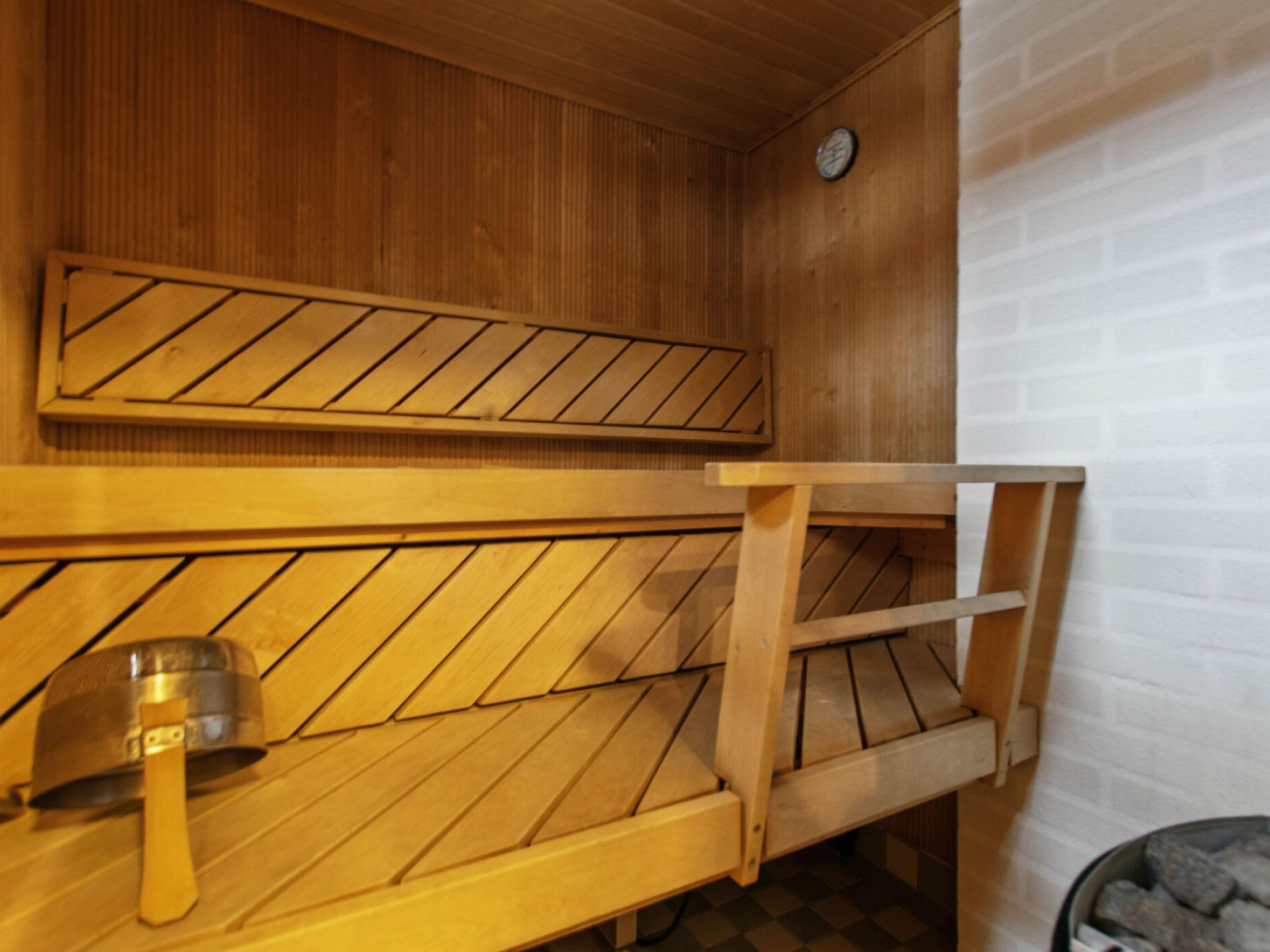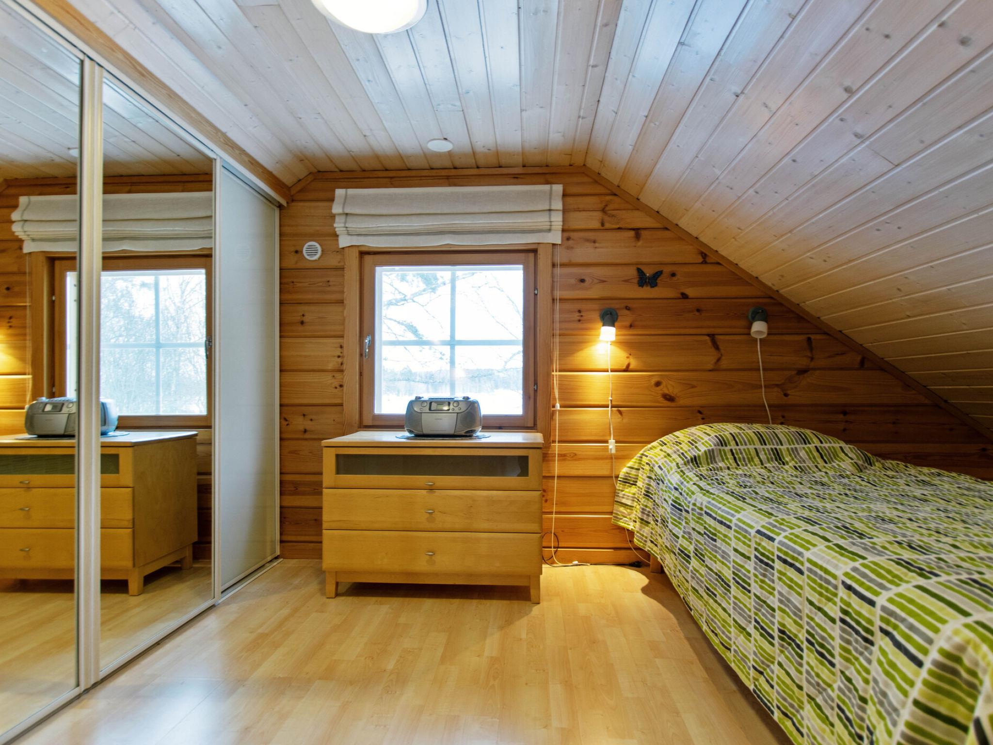 On the ground floor, there is a sauna with an electric stove. The washroom includes a shower, toilet, and washing machine. Sleeping accommodations are located in the loft, which has a double bed and two single beds. The barn bedroom with a double bed is available from 15 May to 31 September.