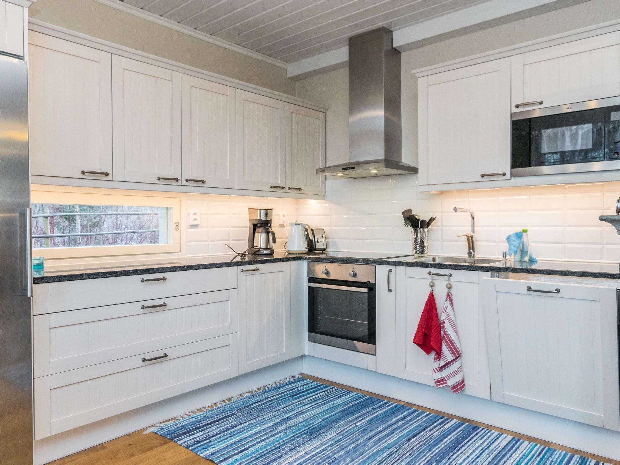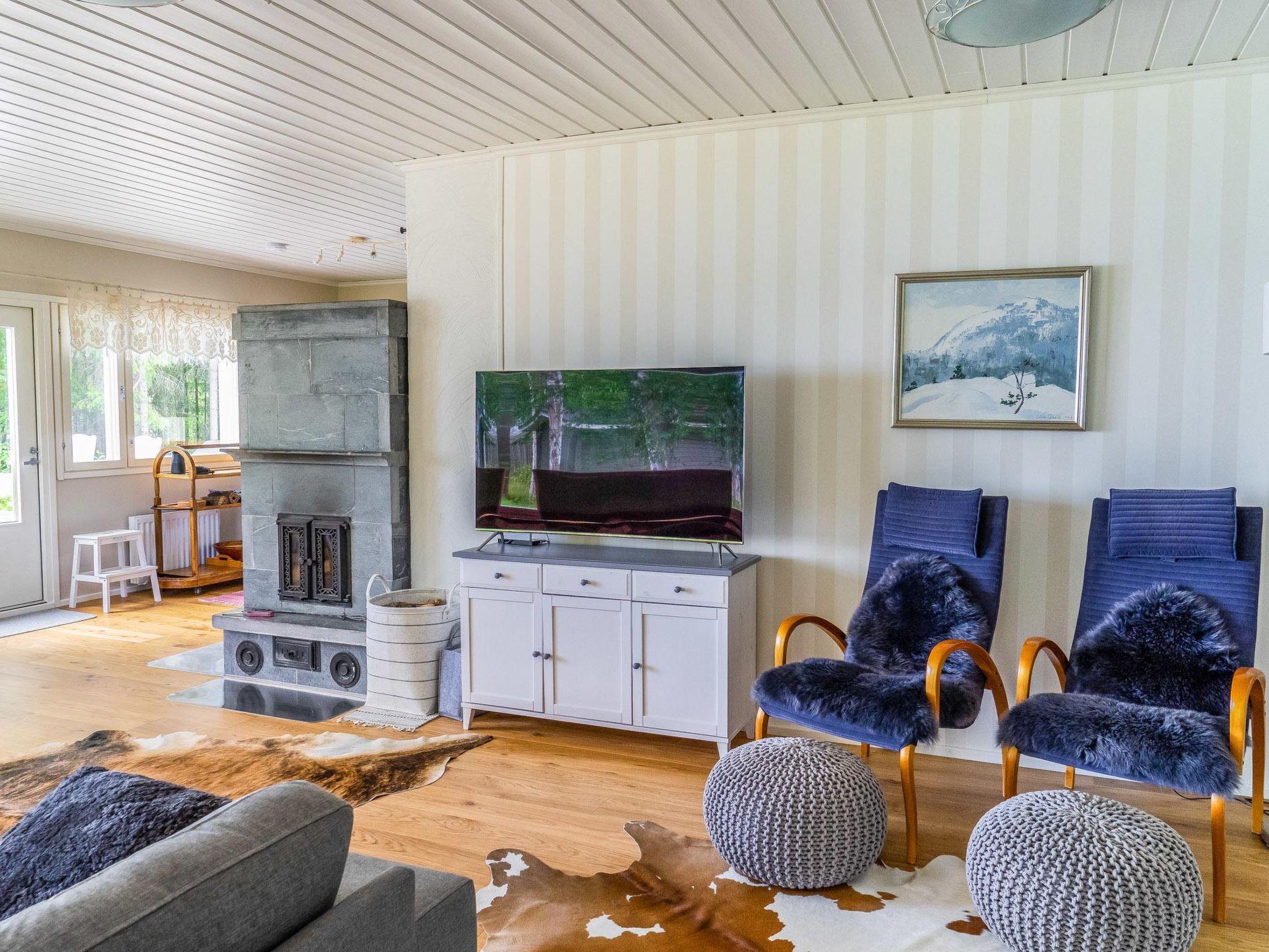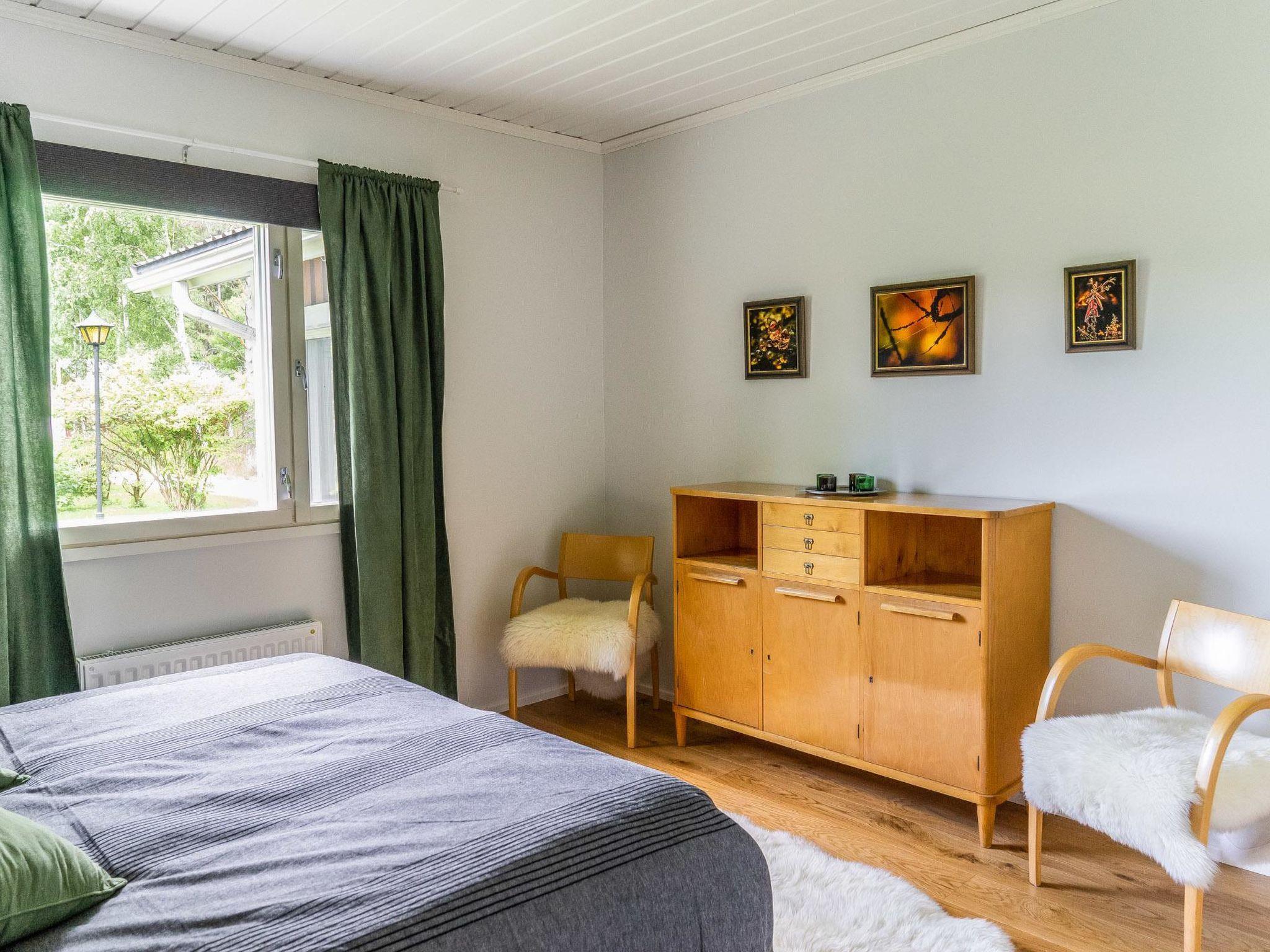 Wooden villa 1993, renovated in 2018, kitchen, living room, two bedrooms (13 m²), one with double bed and another with two beds, dressing room / utility room, shower, sauna (electric sauna stove), WC.