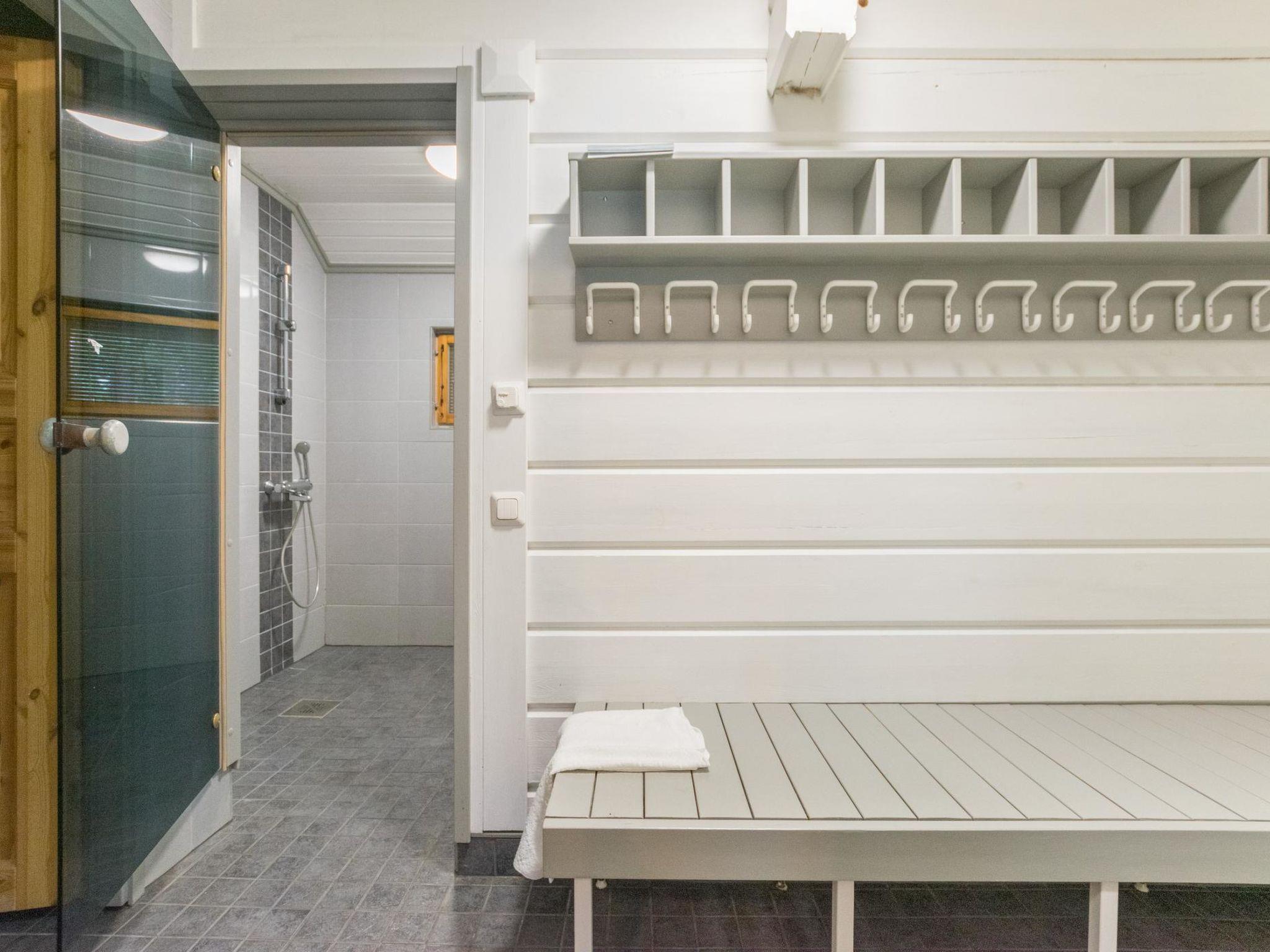 The bathroom includes 3 showers. A spacious sauna features an electric sauna stove.
