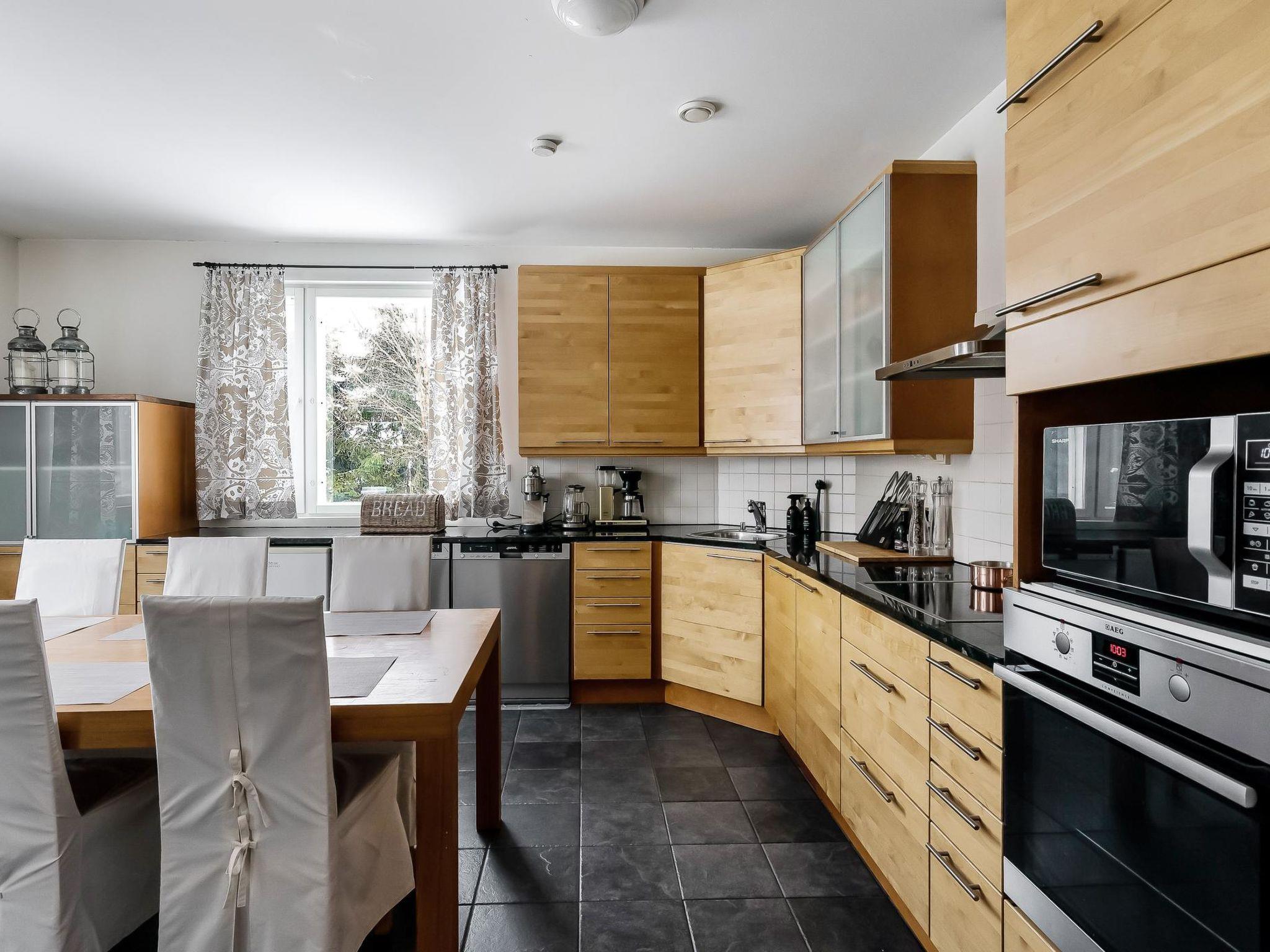 2-storey stone-built villa 2004, on the ground floor kitchen, large living room (fireplace), library room with 2 beds, room with hydro massage bath, sauna (electric stove), washroom (2 showers), dressing room, toilet. From sauna exit to the terrace, entrance hall.