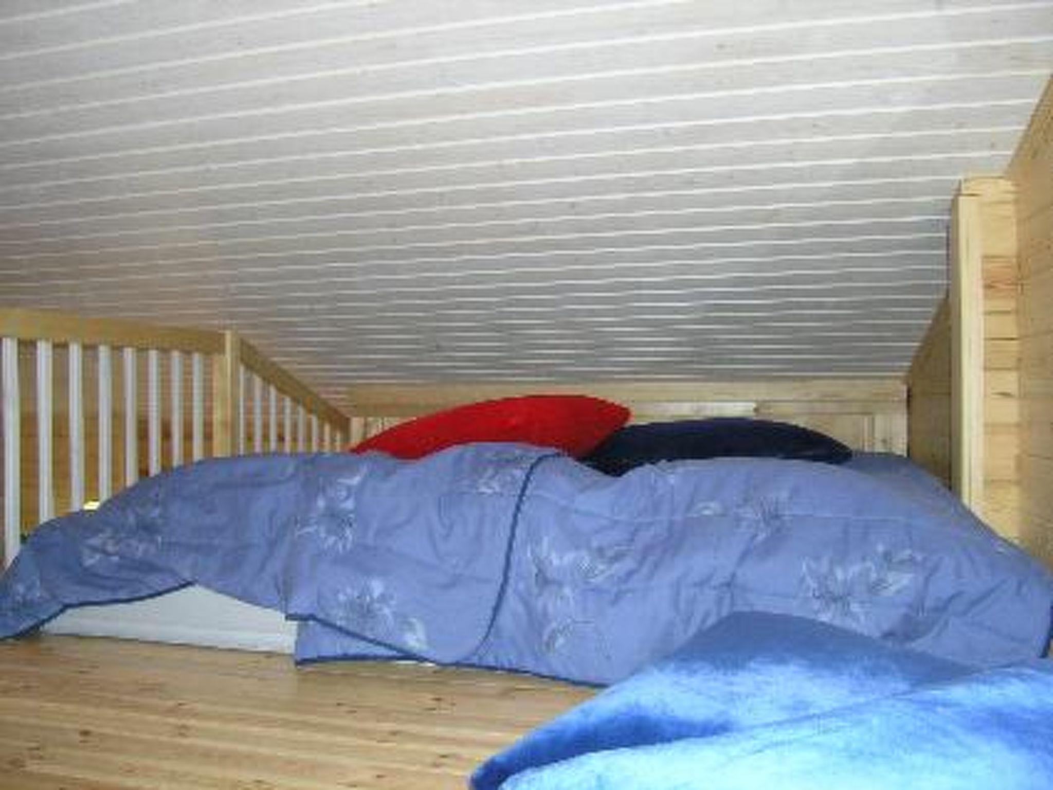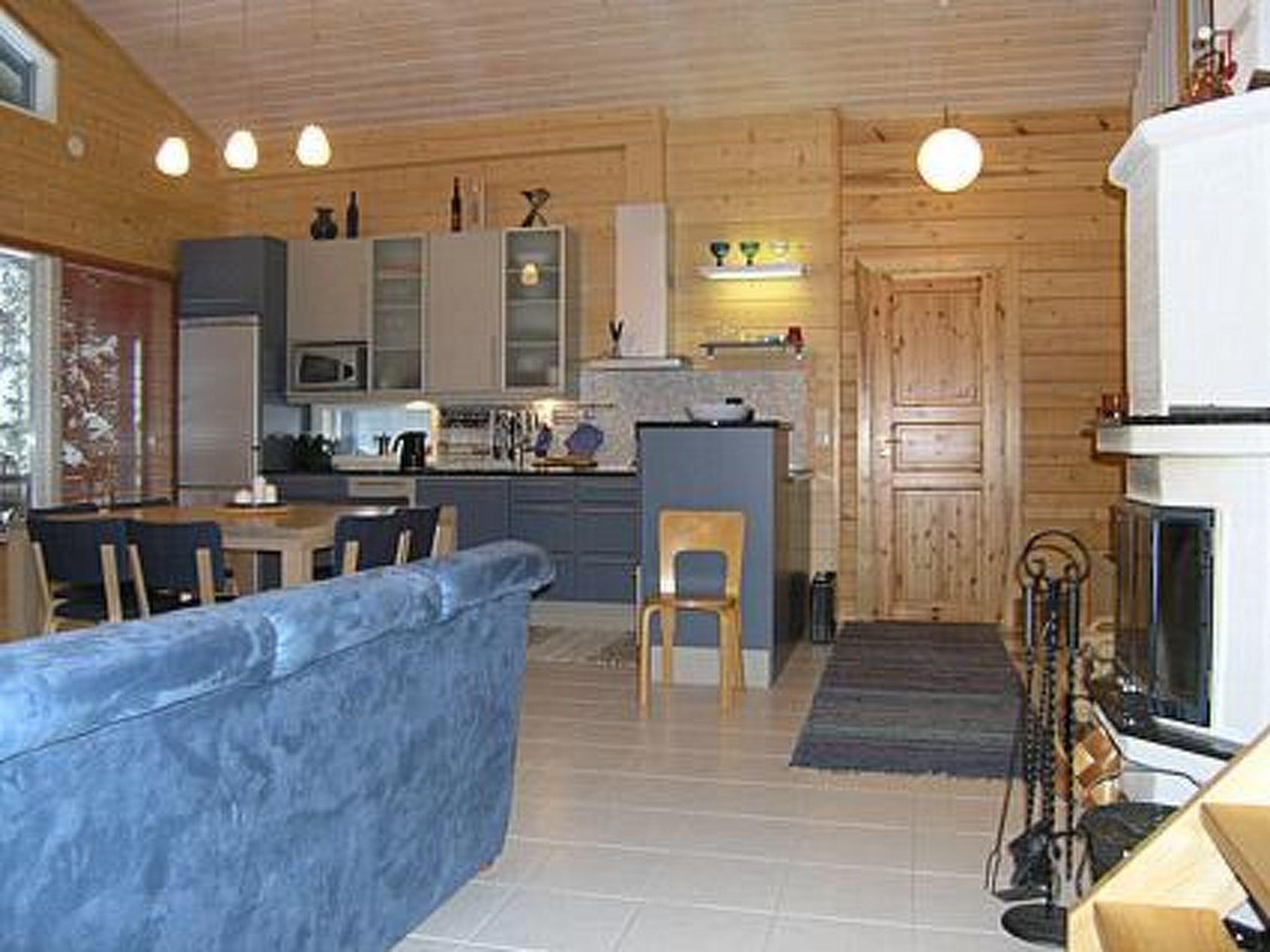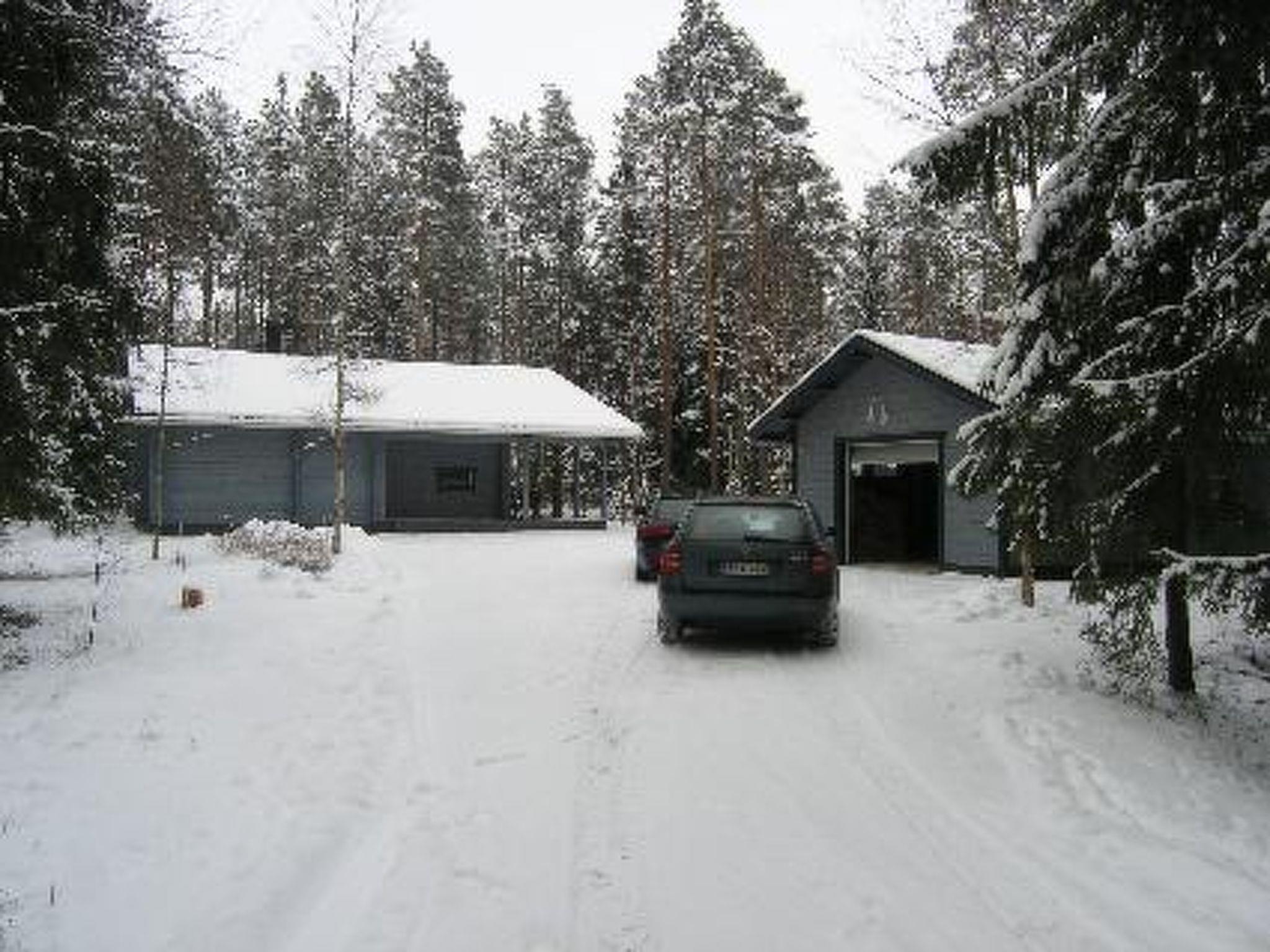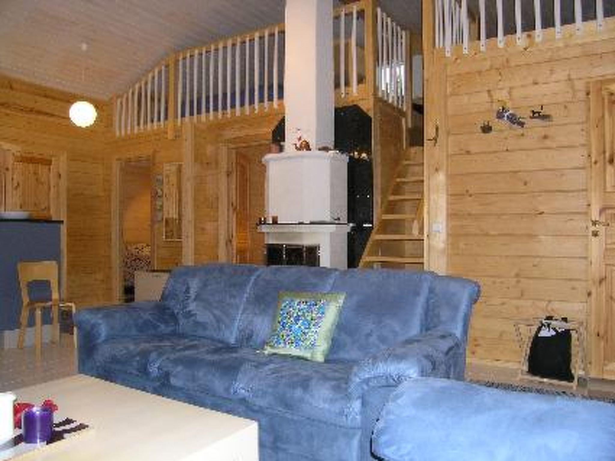 Cottage village situated log chalet 2005, living room/kitchen, 2 bedrooms with double beds, sleeping loft (sloping ceilings) with 3 mattresses, open porch. Sauna in same building (electric stove), washroom, dressing room, separate WC. Garage/woodshed with equipment/gear drying cupboard. Tumble dryer.
