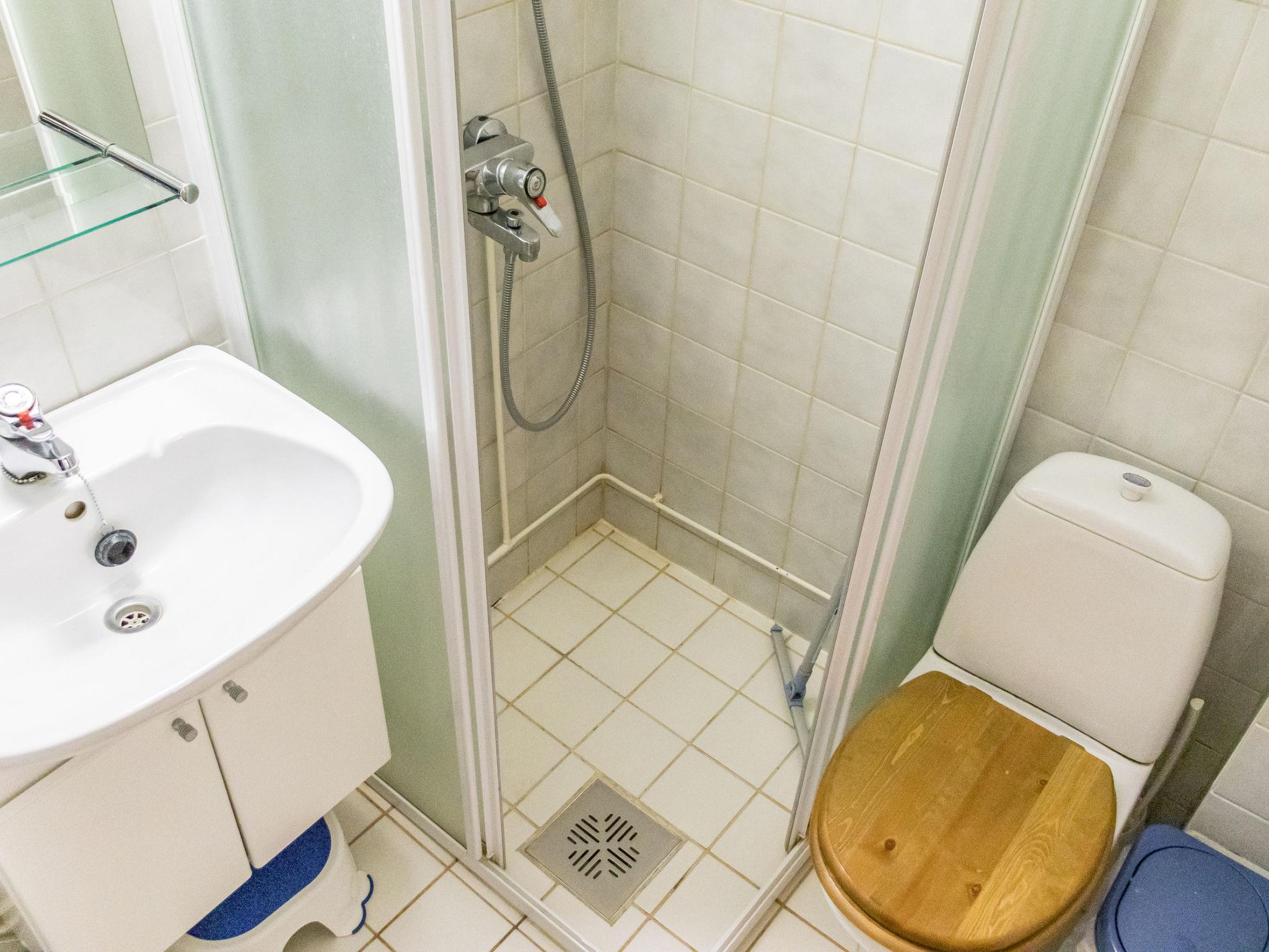 Silverlog row house apartment built in 1990. Living room, kitchen, bedroom bunked bed (bottom 140cm, upper bed 80cm), sleeping loft (to which steep stairs) 160cm double bed, washroom, sauna (elec. stove). There is a small book and DVD library. Separate food freezer is in the sleeping loft upstairs.