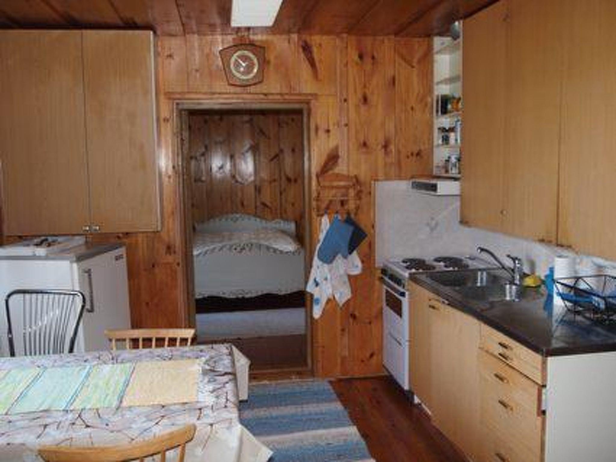 Log house 1973, kitchen, living room with 1 bed, 2 bedrooms with double bed in each, bedroom with double bed + 1 bed. Upstairs: sauna, washroom and WC. In summer own separate wood-heated sauna in the yard, hearth room, washroom, hot and cold running water, shower.