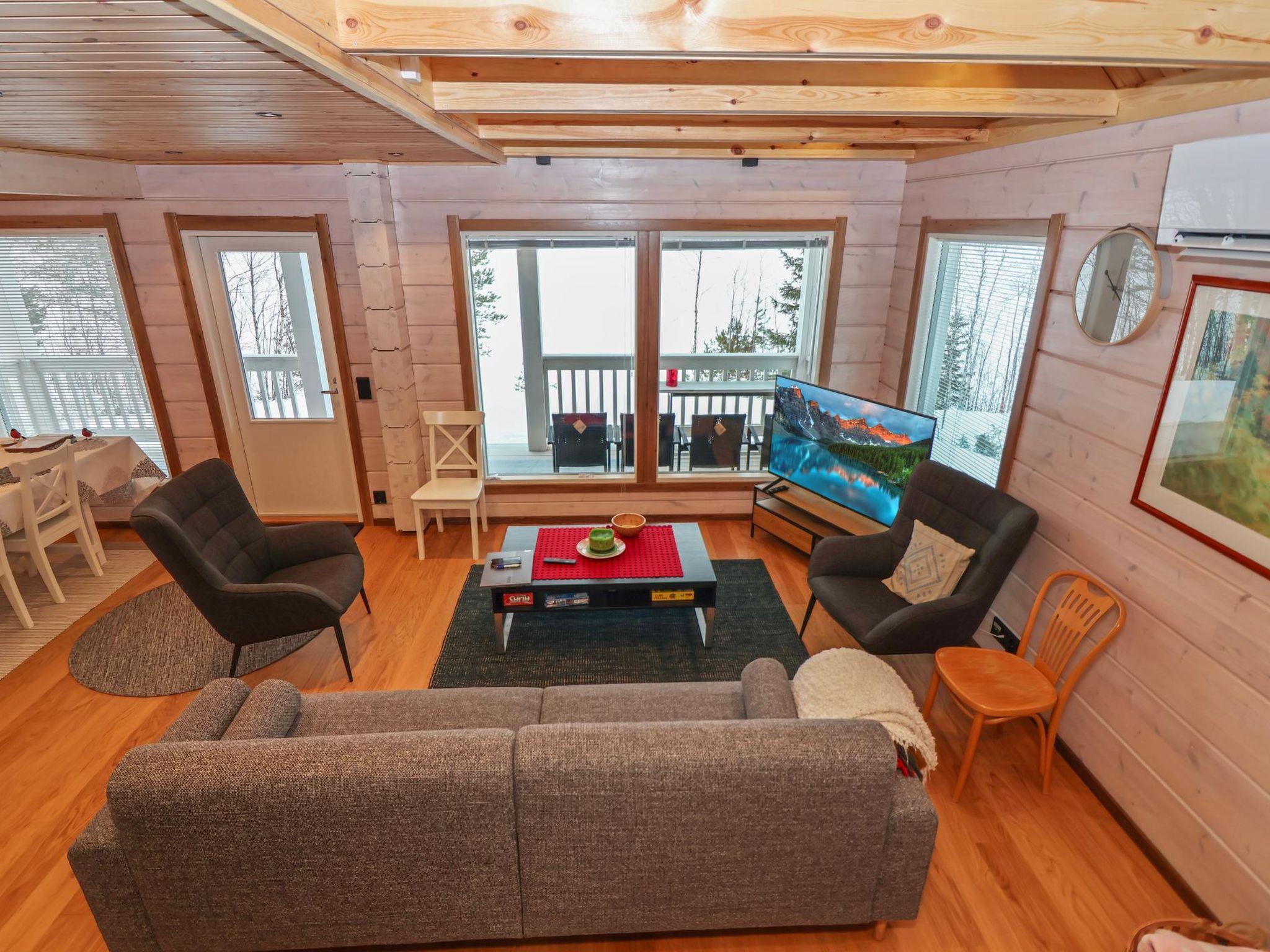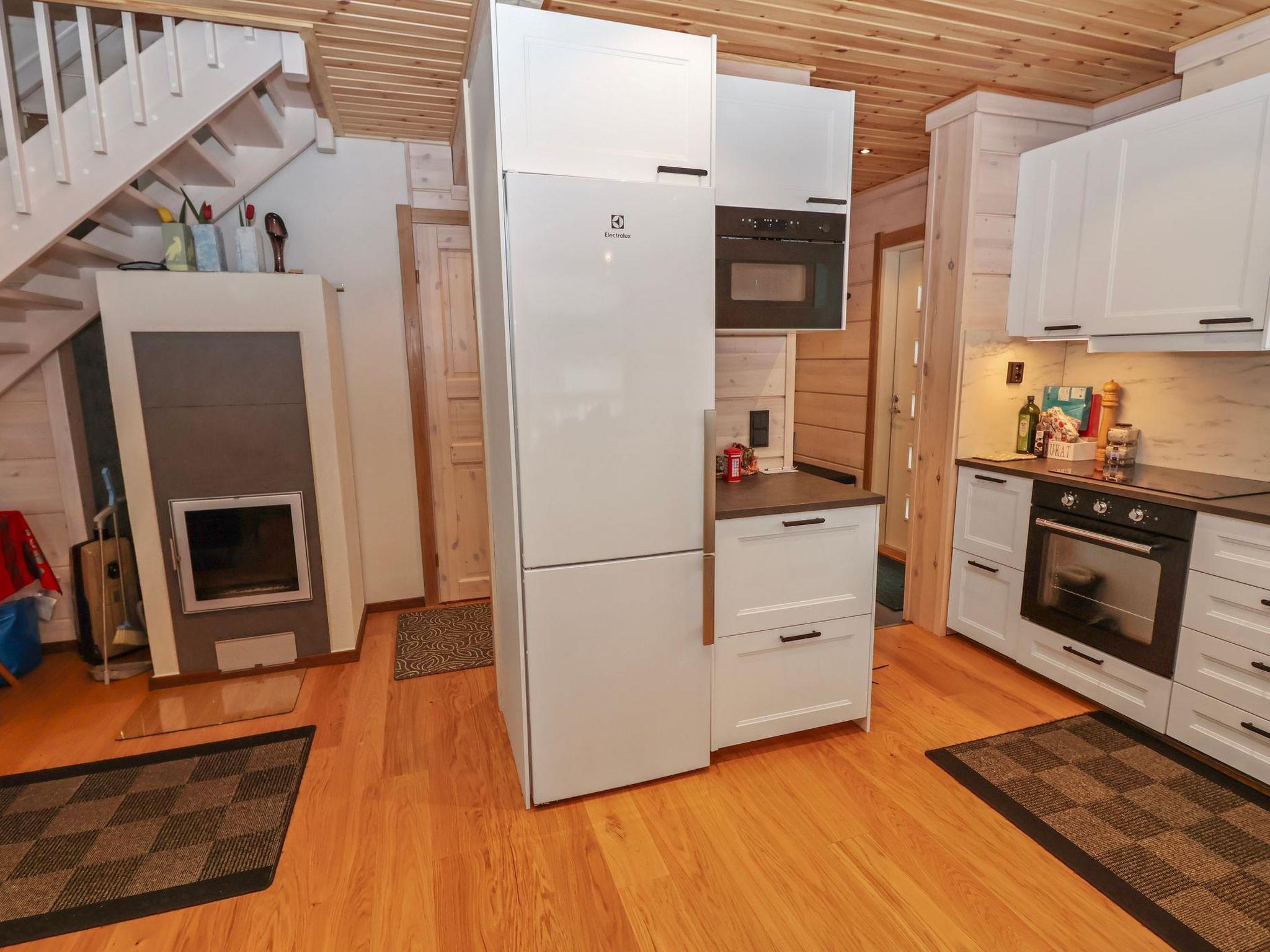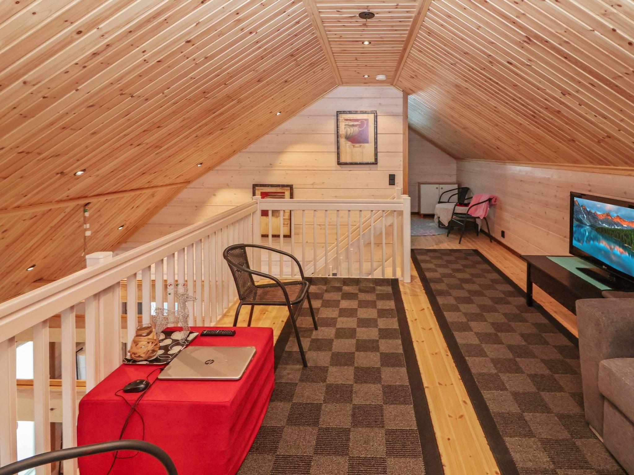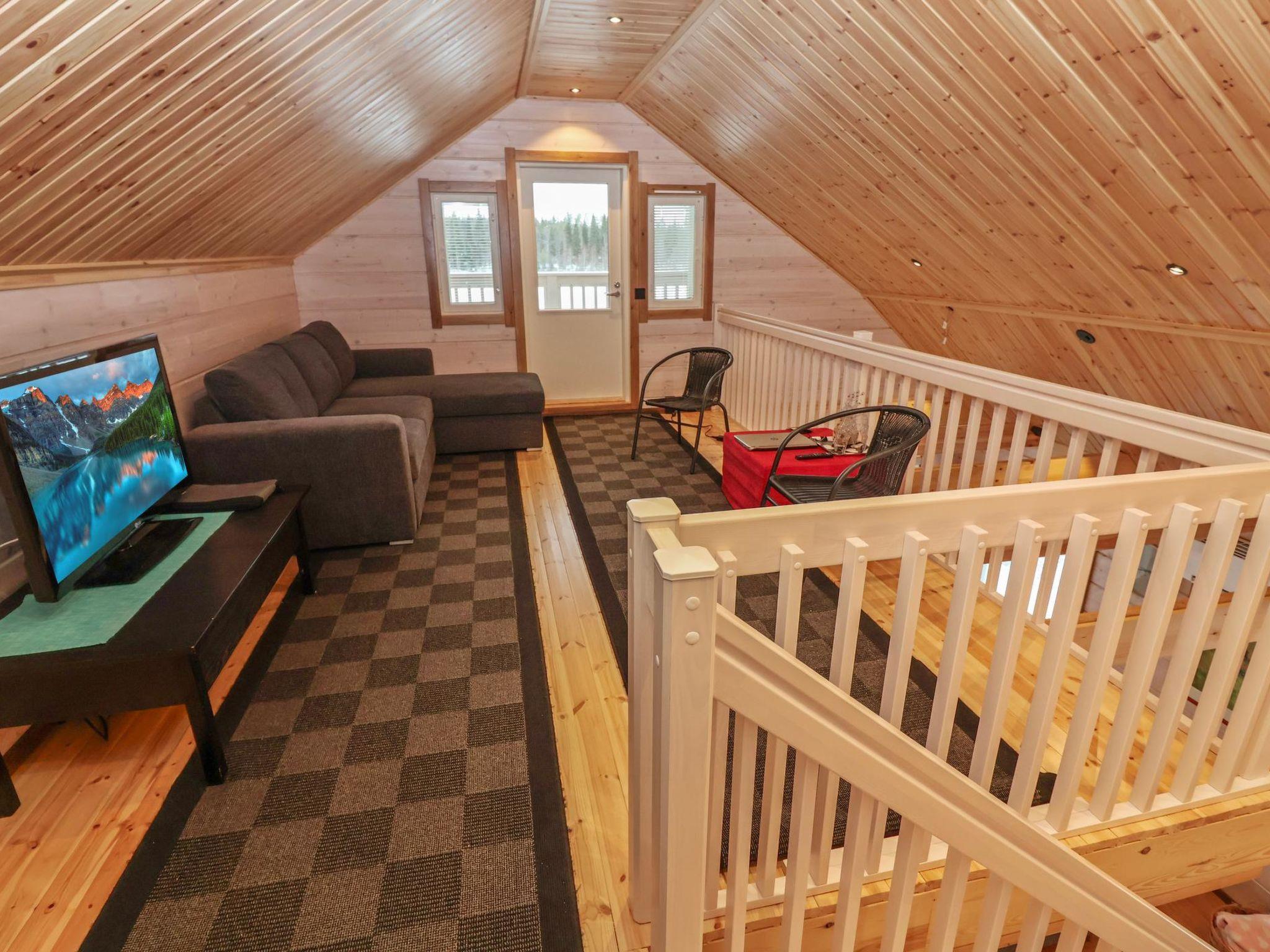 The villa features spacious and cozy accommodations, including two large bedrooms — one downstairs and one upstairs — both furnished with 160 cm wide double beds. Additionally, the loft has a comfortable sofa bed for two. A fully equipped kitchen, spacious living area with a fireplace, a bathroom, and an electric sauna complete the amenities. Large windows and the terrace provide stunning views of the River Tornionjoki.