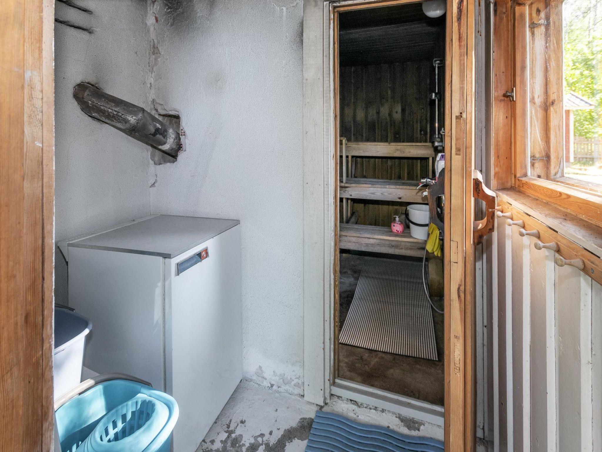 Wooden cottage, built in 1960, living room with 115 cm wide sofa bed, alcove 120 cm wide bed, sleeping corner 90 cm wide bed, washroom and toilet in same room, sauna (wood stove), covered terrace, gas grill.