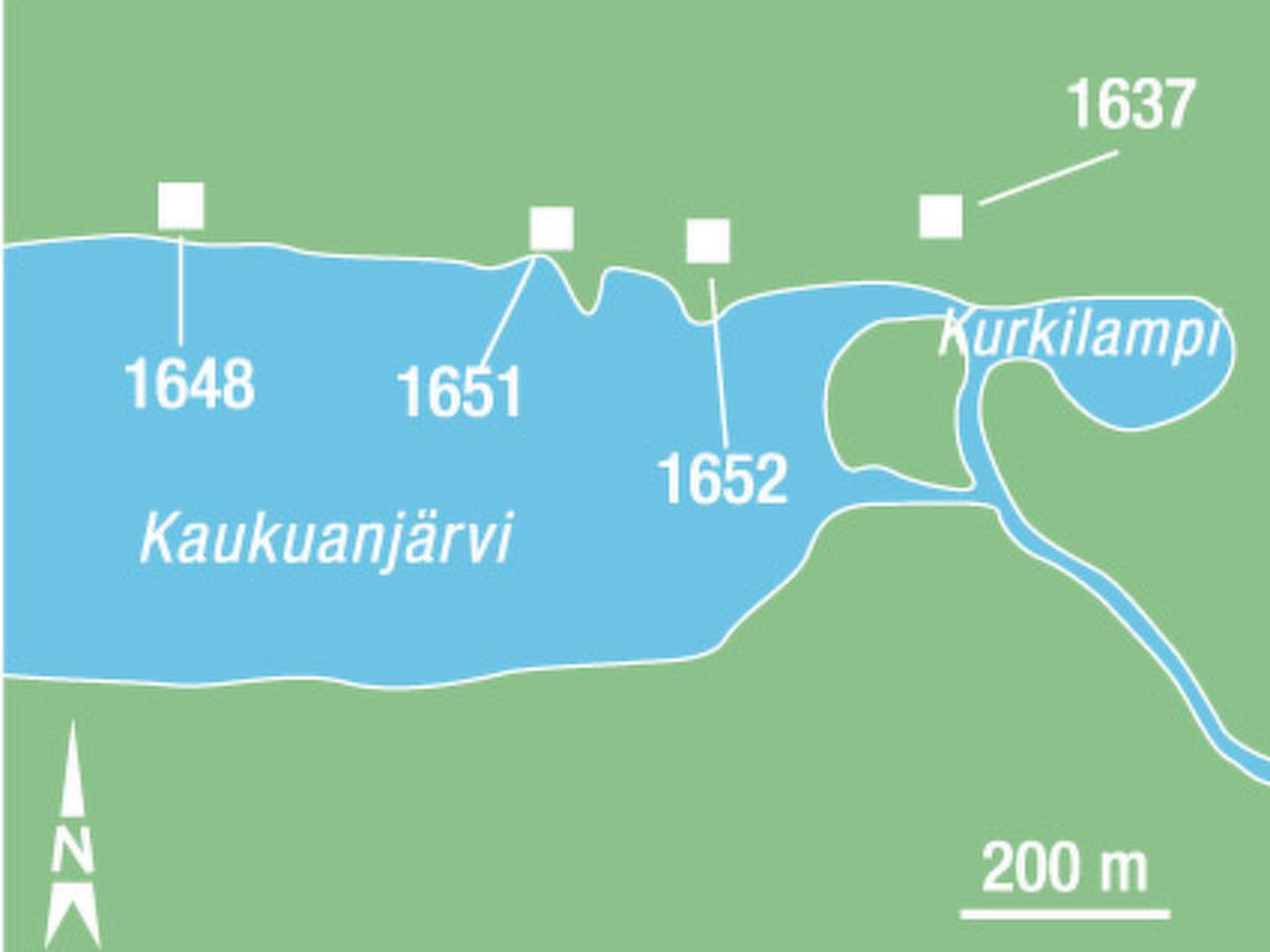42 km westlich von Kuusamo, See Kaukuanjärvi 30 m (Länge 9 km, Breite 1 km), flacher und harter Sandboden, eigenes Boot. Block-Ferienhaus, Baujahr 2002, Wohnküche mit 2 Betten, Schlafzimmer mit Doppelbett, Schlafboden 8 m² (Höhe 160 cm in der Mitte des Raumes) mit 2 Betten. Sauna, Waschraum-WC, Vorraum. Lagerfeuerplatz und Grillhütte auf dem Hofgelände. Das Wasser im Wasserhahn enthält etwas Eisen. Es ist jedoch geprüft und sicher zu benutzen. Der Kunde kann bei Bedarf auch Trinkwasser mitbringen. Nächste Lebensmittelgeschäfte in Kuusamo und Posio, Entfernung mehr als 40 km. Kiri Pisten 43 km, Posio (z.B. Pentik-Mäki-Kulturzentrum und Outlet-Geschäft) 41 km, Kuusamon Tropiikki-Spa 48 km, Korouma-Naturschutzgebiet / Canyon - Ausgangspunkte 45 und 78 km, Riisitunturi-Nationalpark 67 km, Iso-Syöte Wander- und Skigebiet 71 km, Rauna Wildpark 115 km, Rovaniemi 170 km, Oulu 210 km. Die Mäntyaho-Hütte ist für die ganzjährige Nutzung geeignet, am Kaukuanjärvi See in Süd-Posio gelegen. Das ganze Jahr über gute Angelmöglichkeiten (Zahlung der Angelgebühr erforderlich). Der See ist fischreich (Hecht, Barsch, Plötze, Felchen und Maräne). Lizenzen für Netze und Fischfallen können beim Verkäufer vor Ort erworben werden. Gute Sammelgebiete für die Beerenernte. Grosse Jagdgebiete in staatlichen Besitz, Kleinwildjagdgebiet-Nr. 2620 Posio. Auch ein weiteres Jagdgebiet Kuusamon Yhteismetsä/Kuusamo, im Besitz von den kollektiven Waldeigentümern, ist nur wenige Kilometer entfernt.