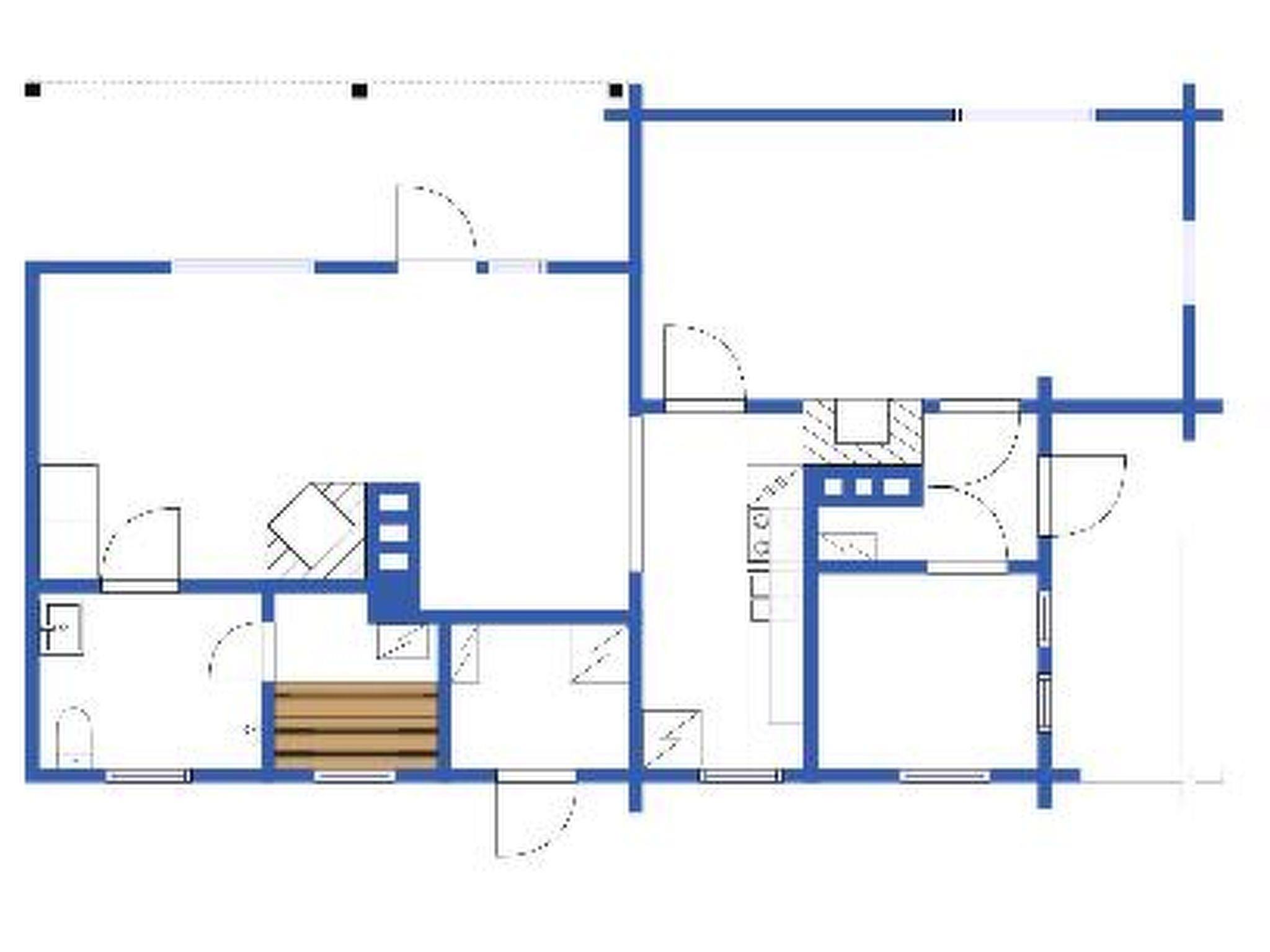 Log cottage 1970, renovated 2005, kitchen, bedroom with 160 cm wide twinbed, alcove with 120 cm widw bed for 1 (alcove with door), fireplace room with 2 separate beds, washroom/wc, sauna (electric stove), terrace.