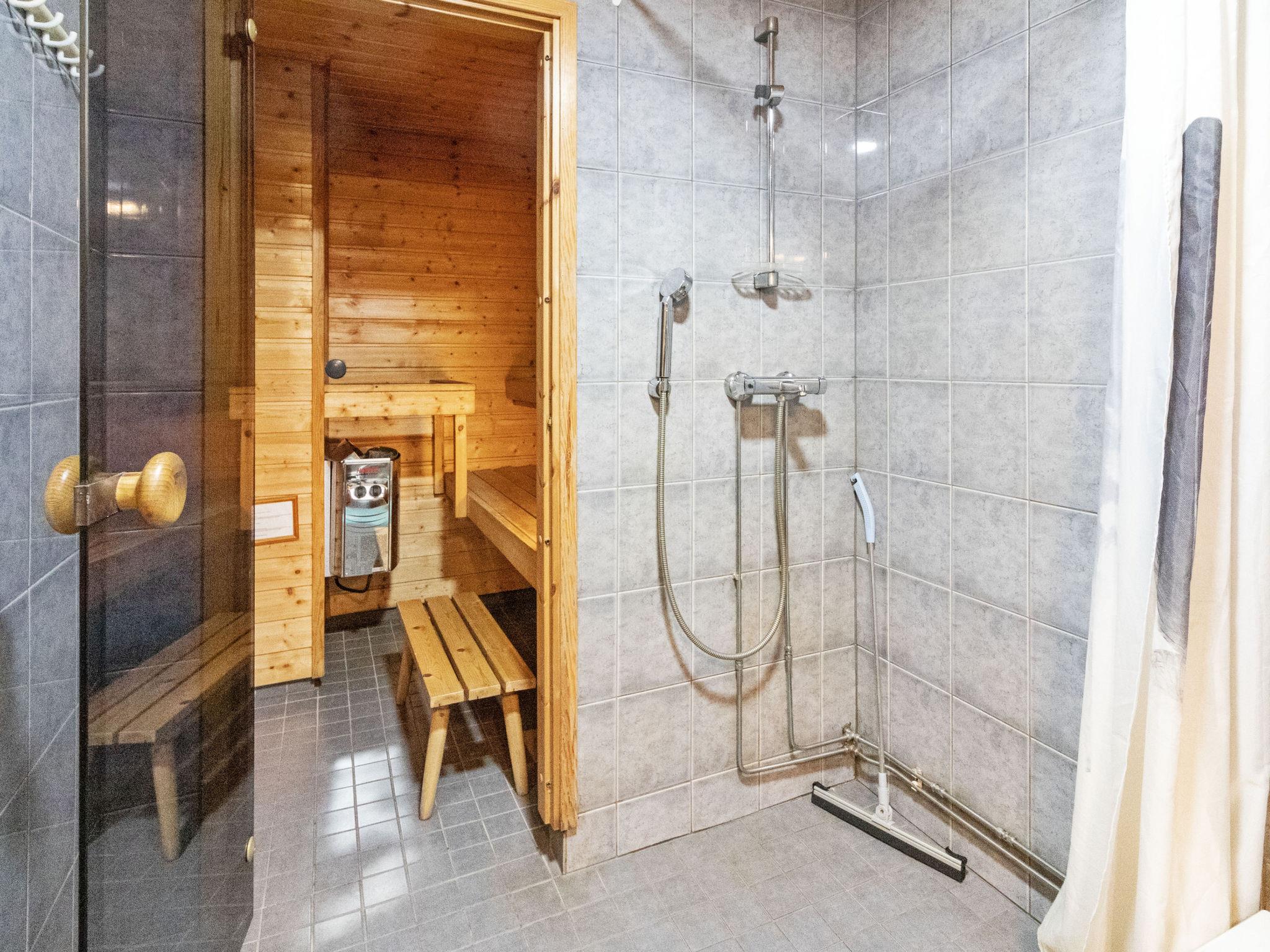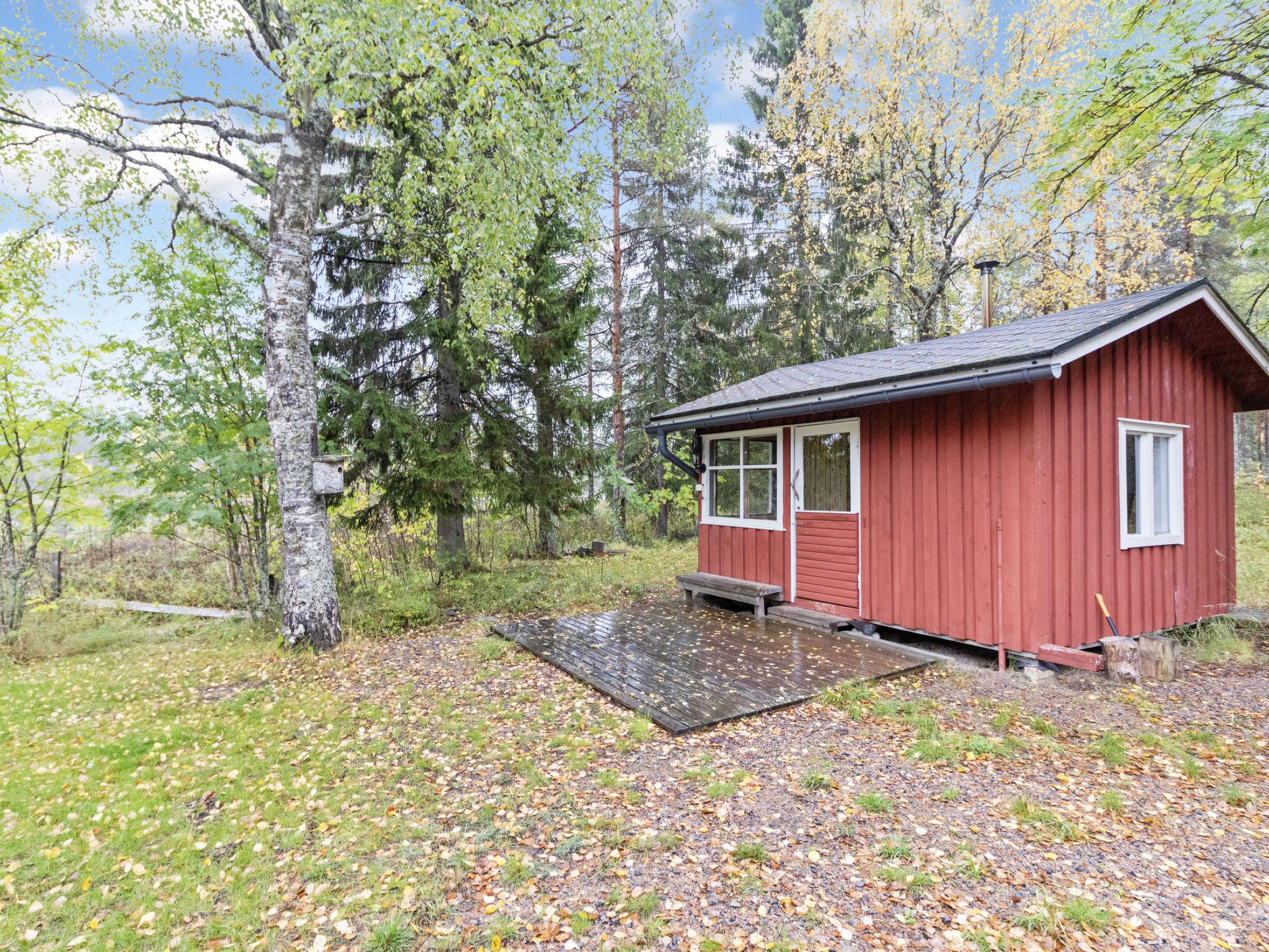 Pondside sauna with dressing room. Eliectric light and reflecting heater in dressing room, water for sauna is carried from the pond.
