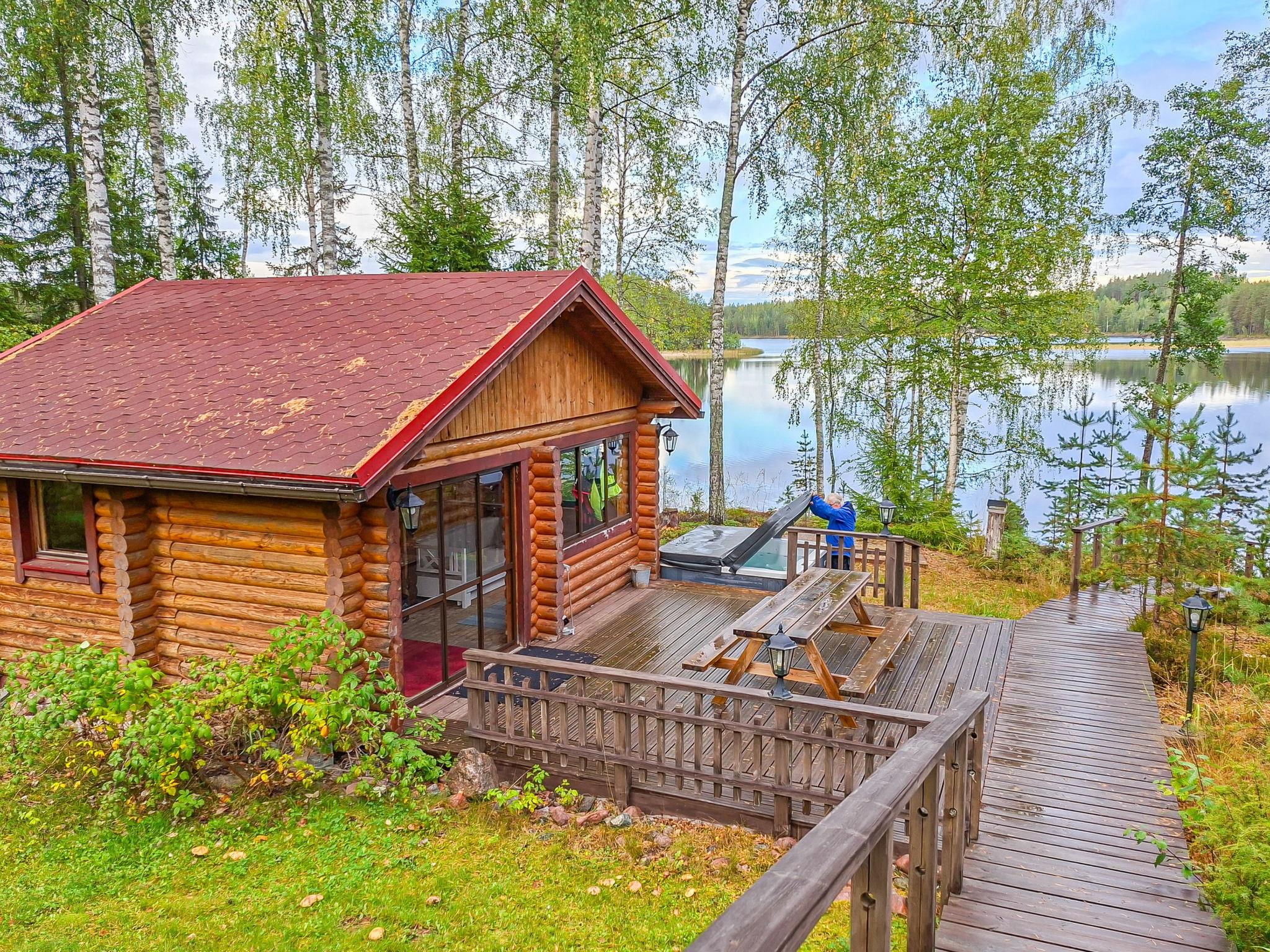 There is a gazebo on the shore and a year-round sleeping shed with a double bed for two. In front of the cottage there is a large terrace with a canopy and a gas grill, and a viewing platform towards the lake.