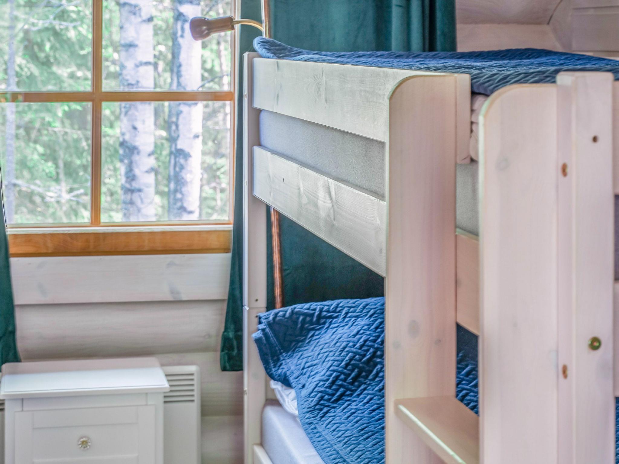 Log cottage 2006, living room, kitchen, two bedrooms with double beds, one with a single bed and bunk beds, toilet and shower in the bathroom, electric heater in the sauna.