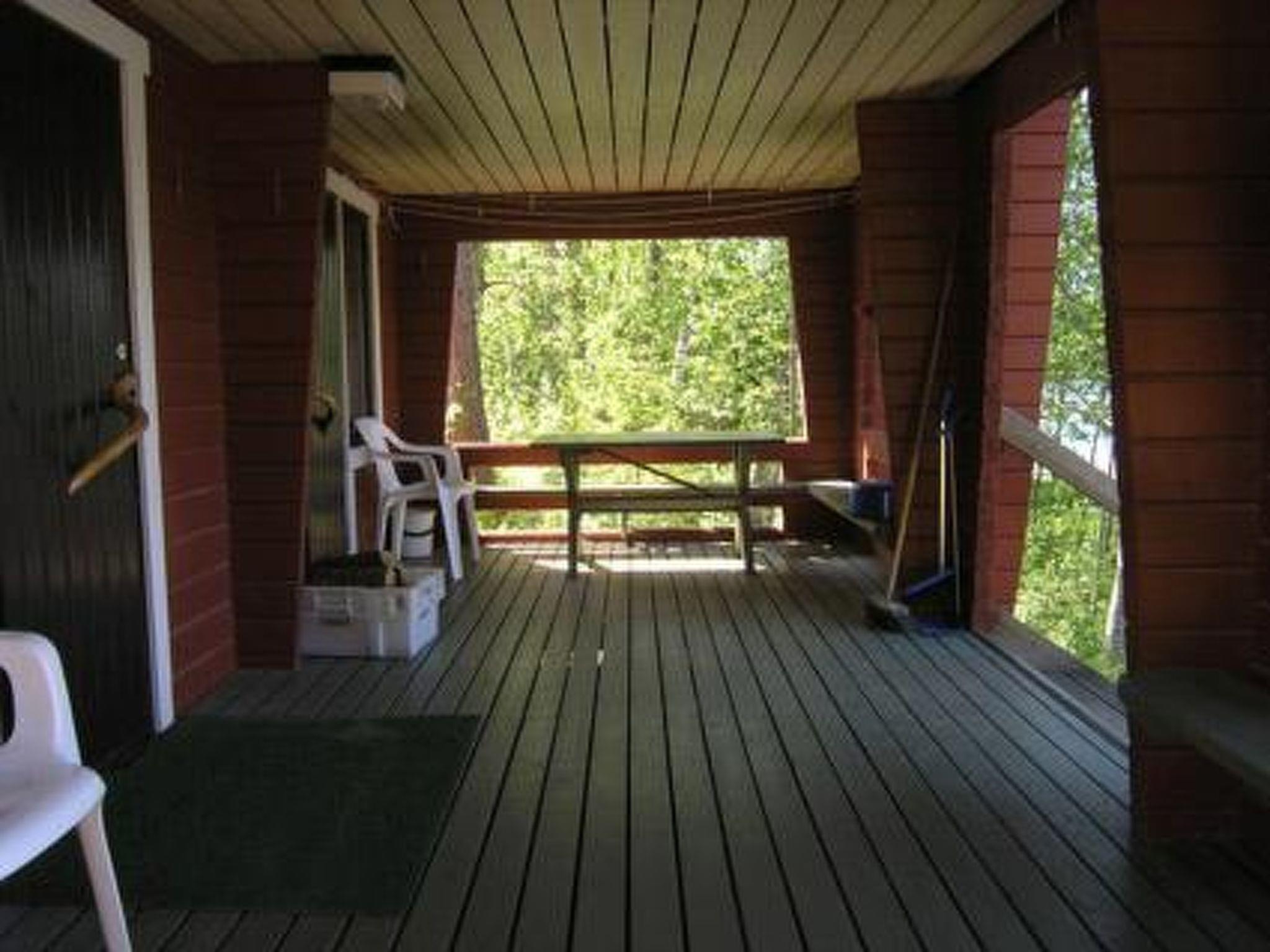 50 km north-east of Imatra, L.Alusjärvi 20 m, (length 0.8 km, width 0.4 km), shallow, hard, sanded sandy bottom, a pier, own boat. Log cottage 1989, living room/kitchen, sleeping alcove 2 beds, sleeping loft beds for 5 persons, bathroom shower cubicle and WC, terrace. Lakeshore sauna 19 m² (1983), hot water cauldron, dressing room /room with fireplace, terrace, electric light, running water from well, swimming shore 8 m away. Outbuilding 7 m² (1998), 2 beds, electric light. Other outbuilding room is used by owner. Roofed grill. Woodshed. Dog compound.