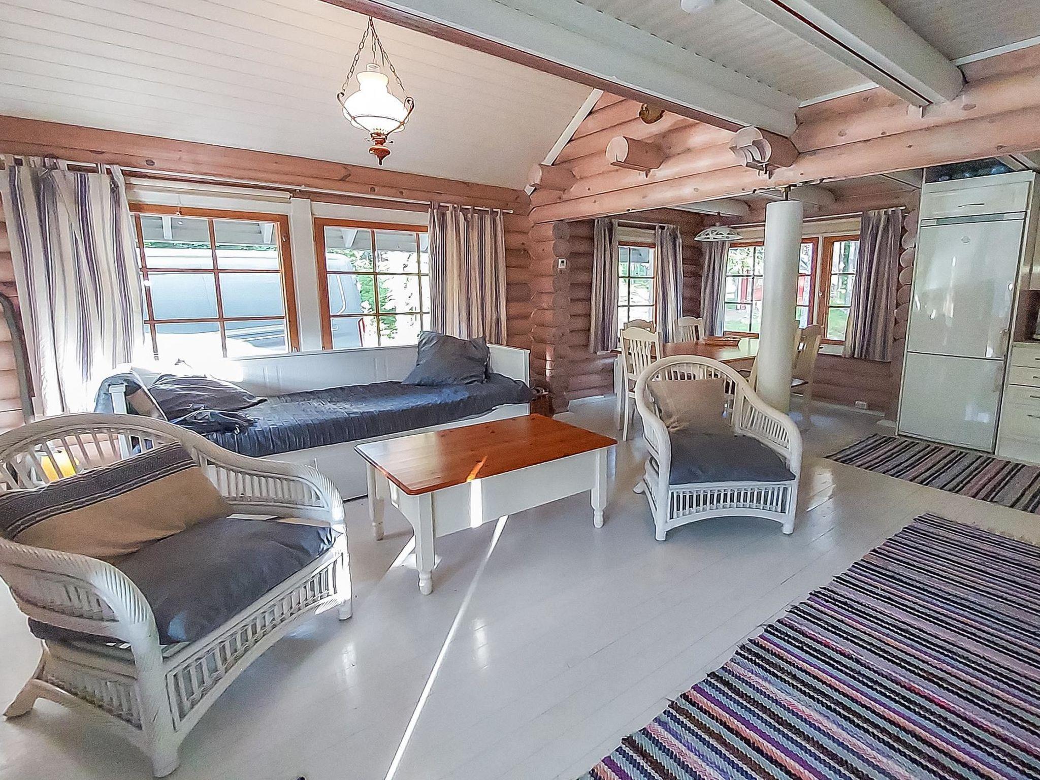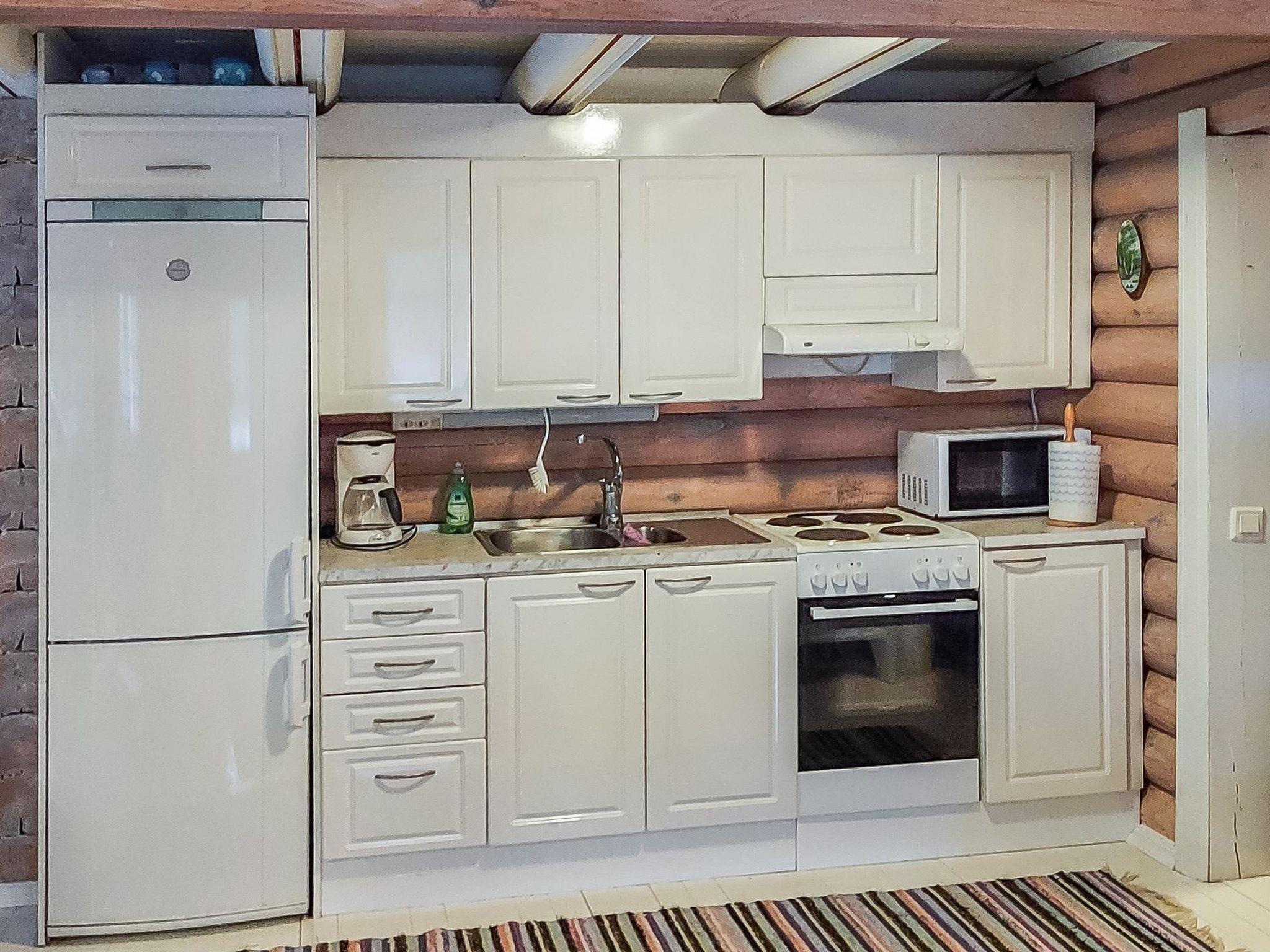 Log cottage 2003, living room/ kitchen extra bed, sleeping alcove 2 beds, sleeping loft 2 beds and 2 mattresses, washroom, sauna, open porch and balcony. Own well.