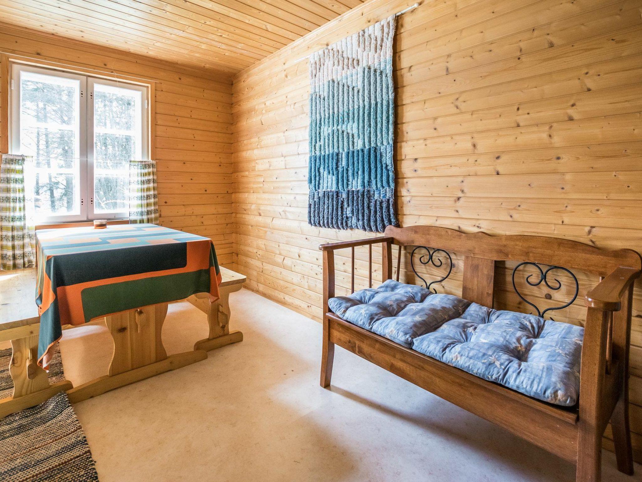 Wooden house, renovated 1995, living room/kitchen 2 beds, washing room (wc and shower), vestibule. Upstairs 6 beds in the loft (upstairs height only 1.7 m).