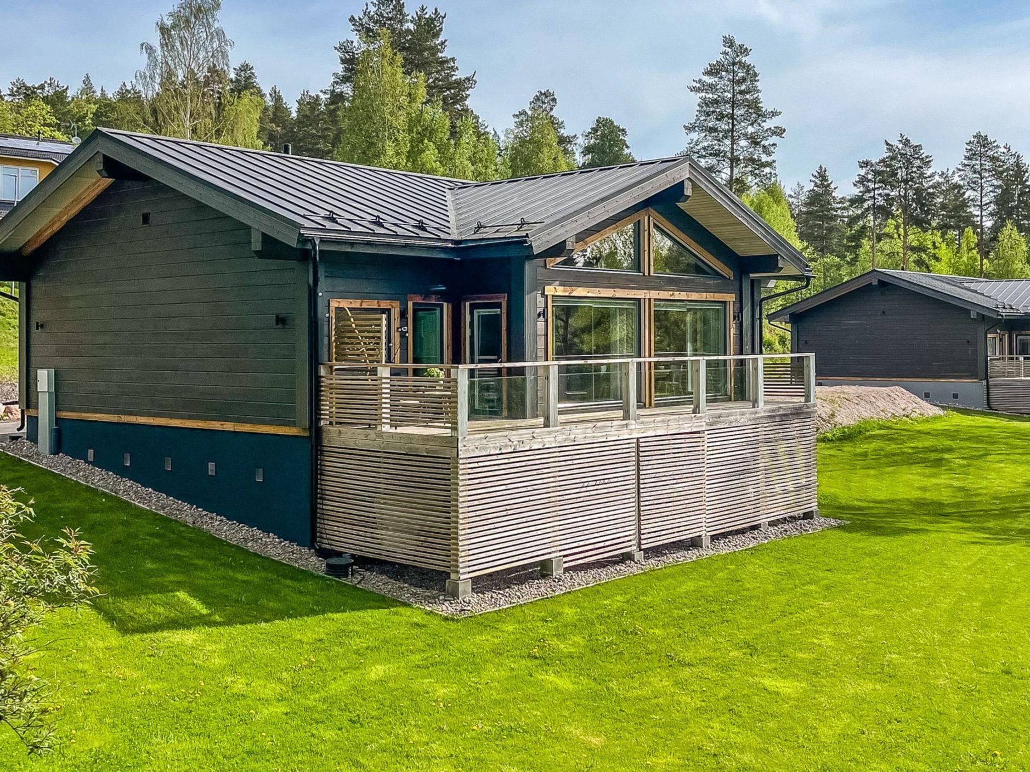 The cottage was built in 2020 and is well suited for year-round use. The cottage has a large living room with an open kitchen. Three bedrooms, one with a double bed measuring 200 cm x 160 cm, the second bedroom with two separate beds (2 x 90 cm), the third with a sofa bed for 1-2, bed size 140 cm x 200 cm. In addition, the living room sofa can accommodate 1 person if necessary. The property is recommended for a maximum of 5 adults and a maximum of 2 children. Sauna and washroom, with a bathtub. Separate toilet/utility room.