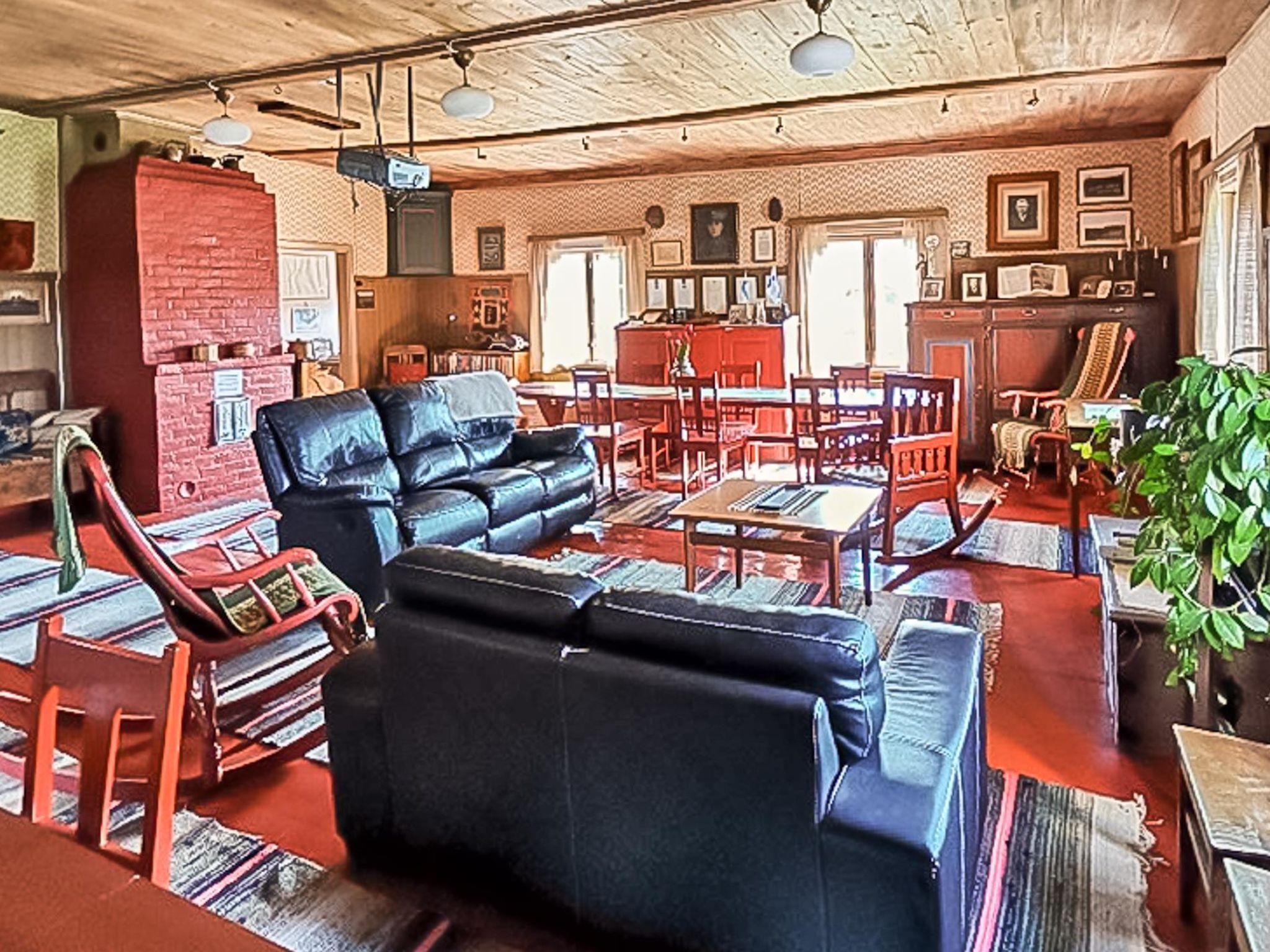 Old log farmhouse, renovated in 2005, kitchen, large living room, 3 bedroom, each with 3 beds, sleeping alcove with bed (width 120 cm), hall, room where bake oven (eg. for grilling sausages, preparing meals), washing room (2 showers), sauna (electric stove), 2 toilets. A total of 10 beds. For additional fee possibility for 4 extra beds.