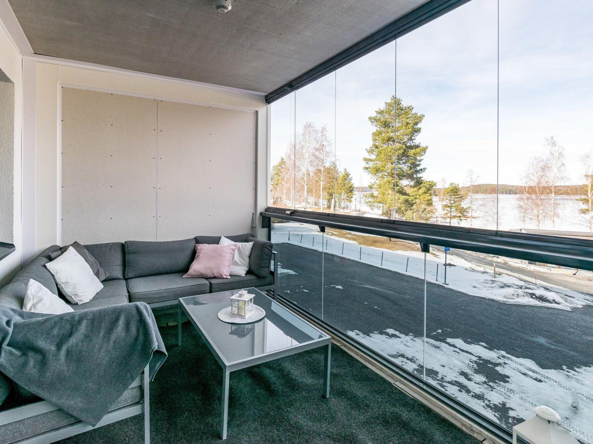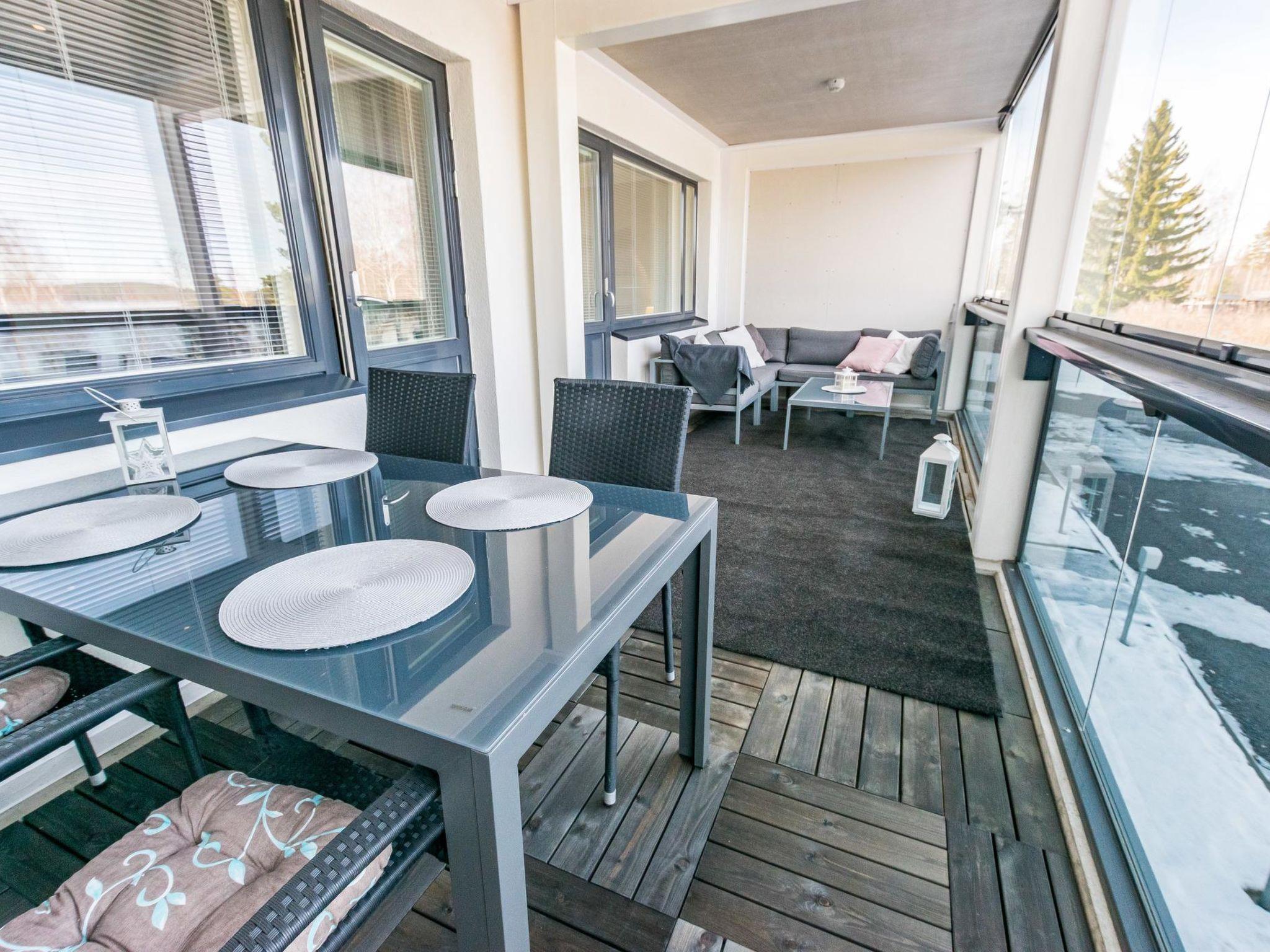 The glazed balcony is very spacious (17 m²), and it has a view to the lake. Access to living room and bedroom from the balcony.