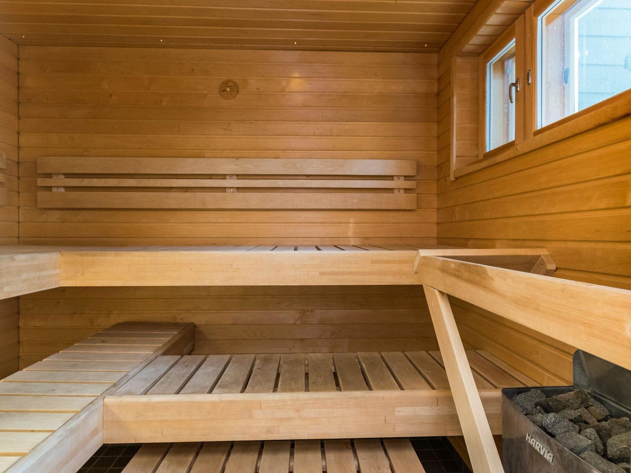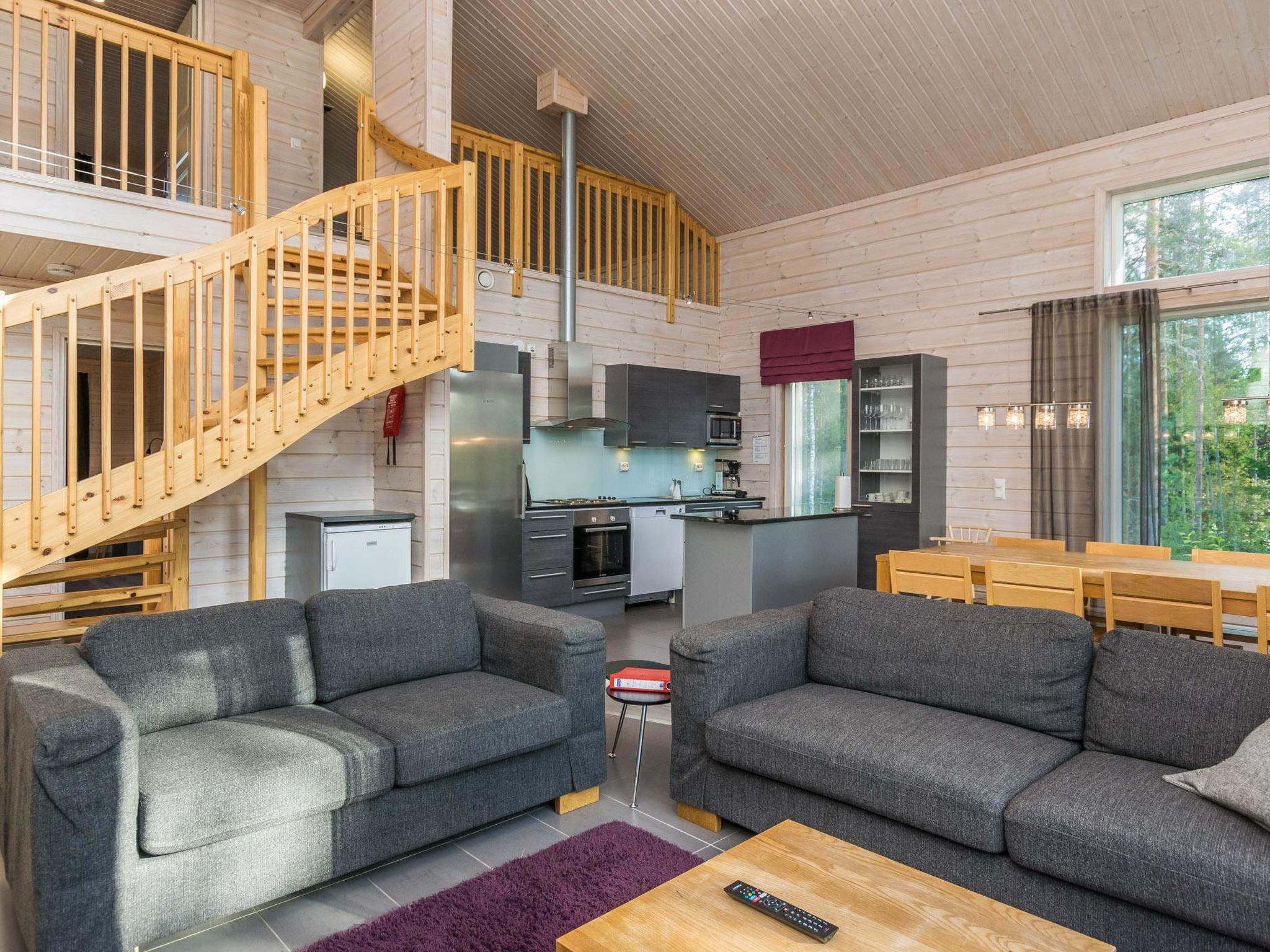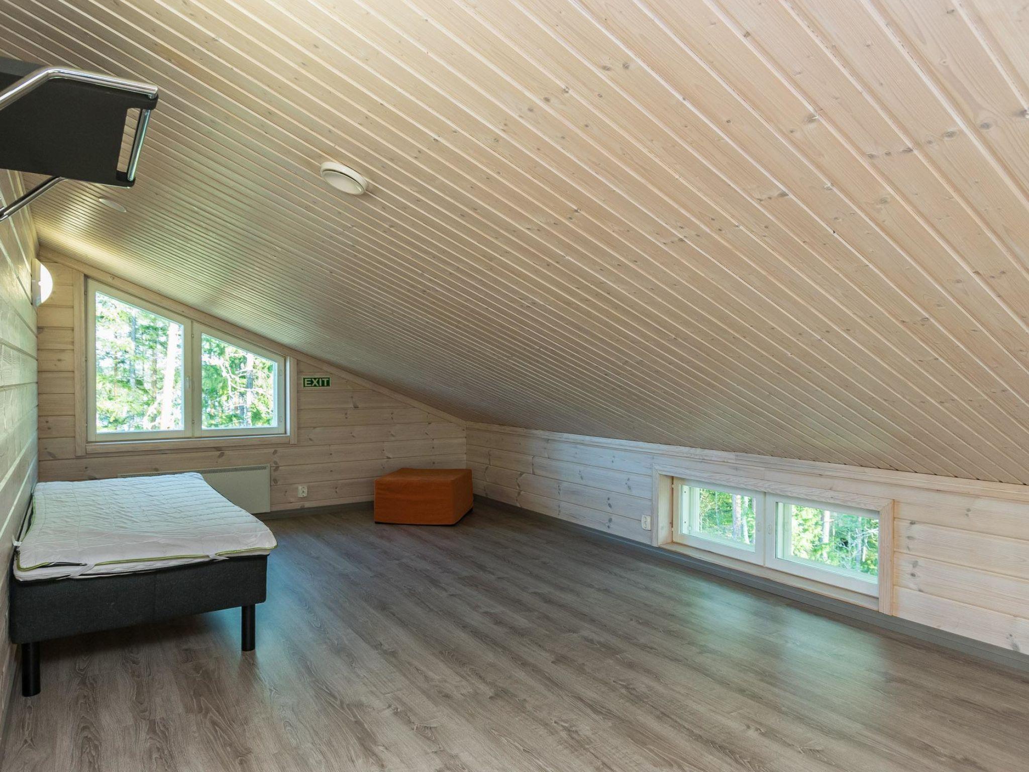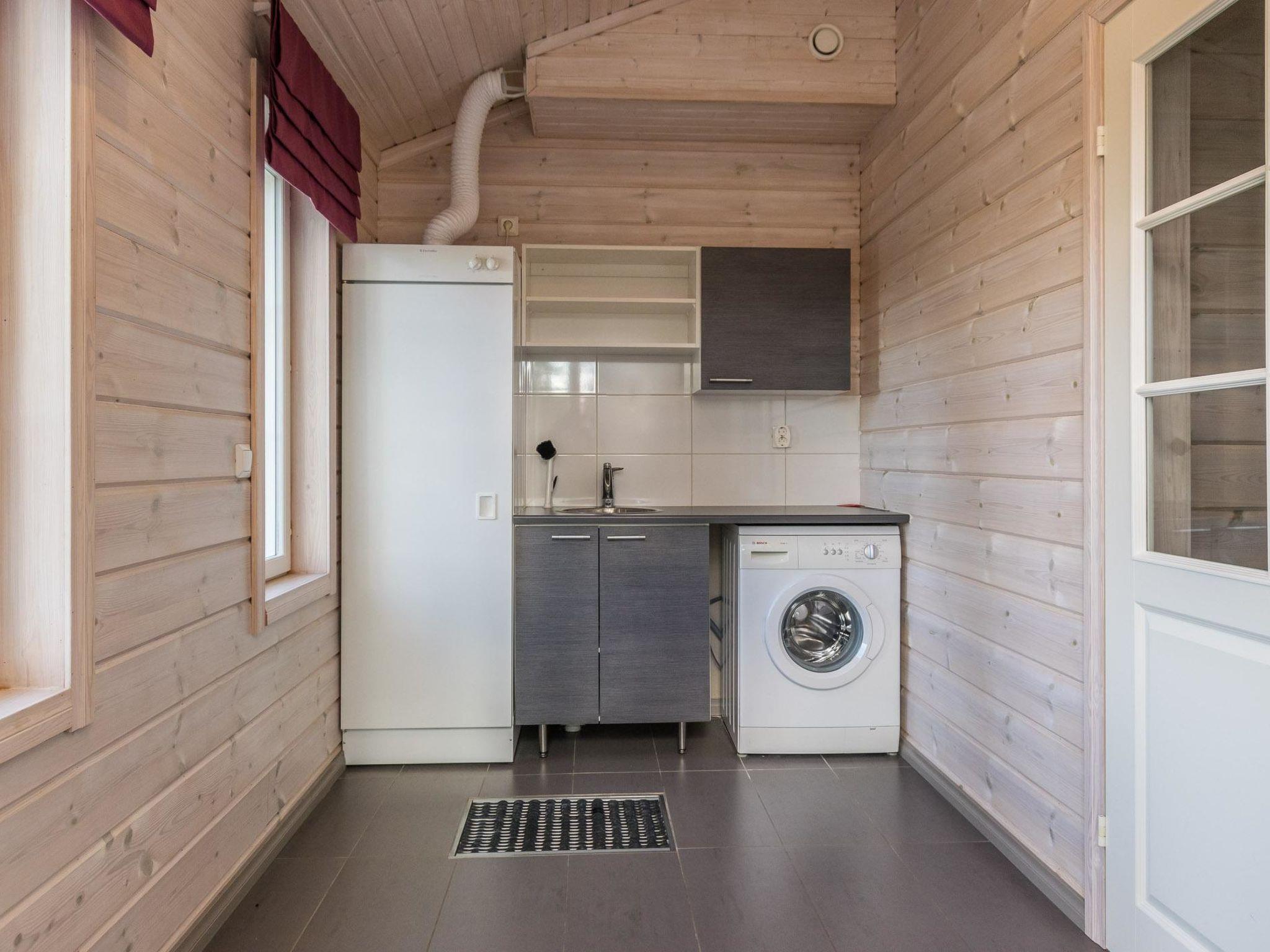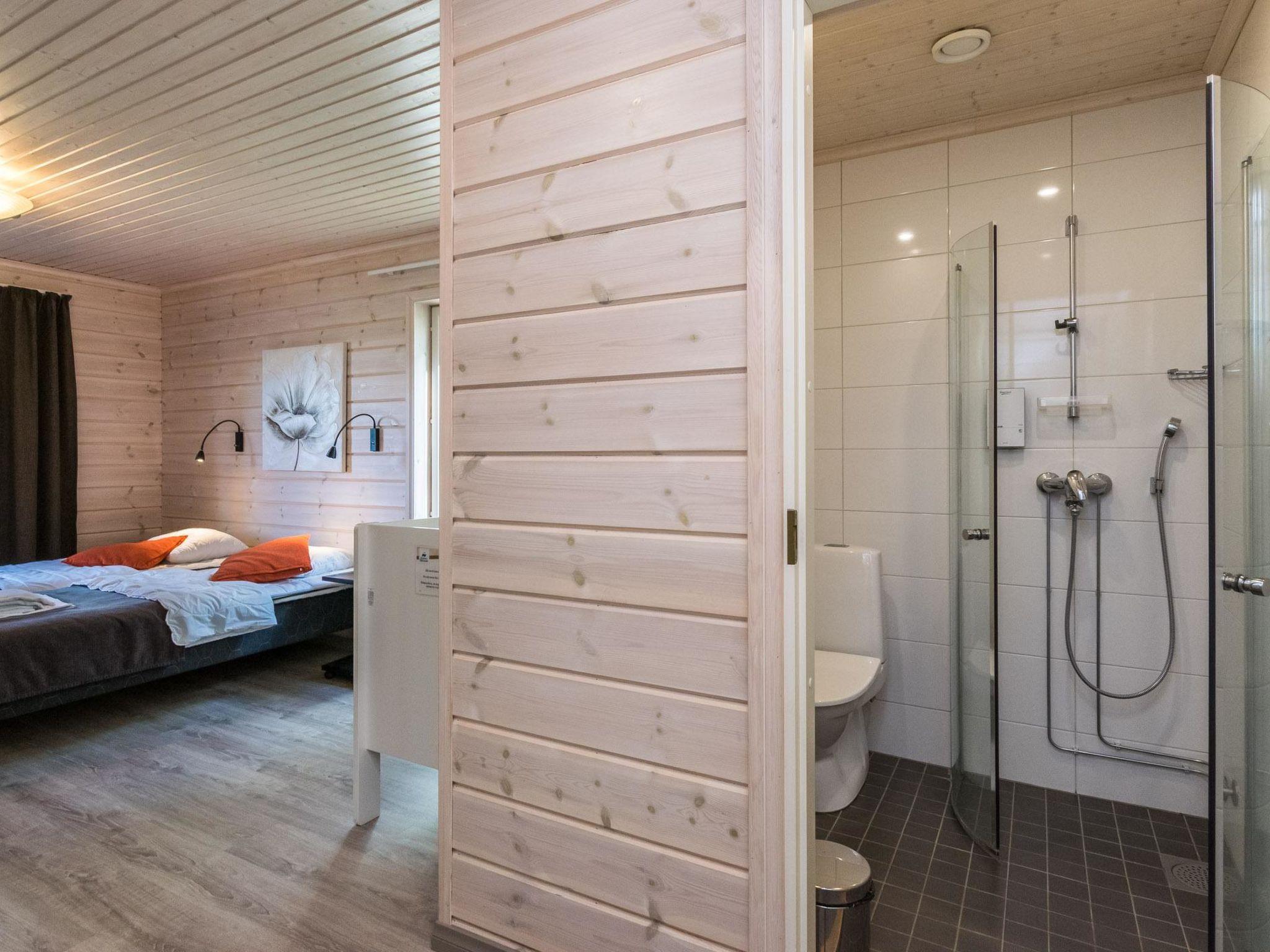 Wooden chalet 2014, large kitchen-living room, on the ground floor 3 bedrooms with 2 beds in each. All bedrooms have an own shower and toilet. Upstairs bedroom with 2 beds, sleeping loft with 2 beds, toilet. The utility room / hallway, dressing room, washroom, sauna (electric stove), toilet. Large terrace.