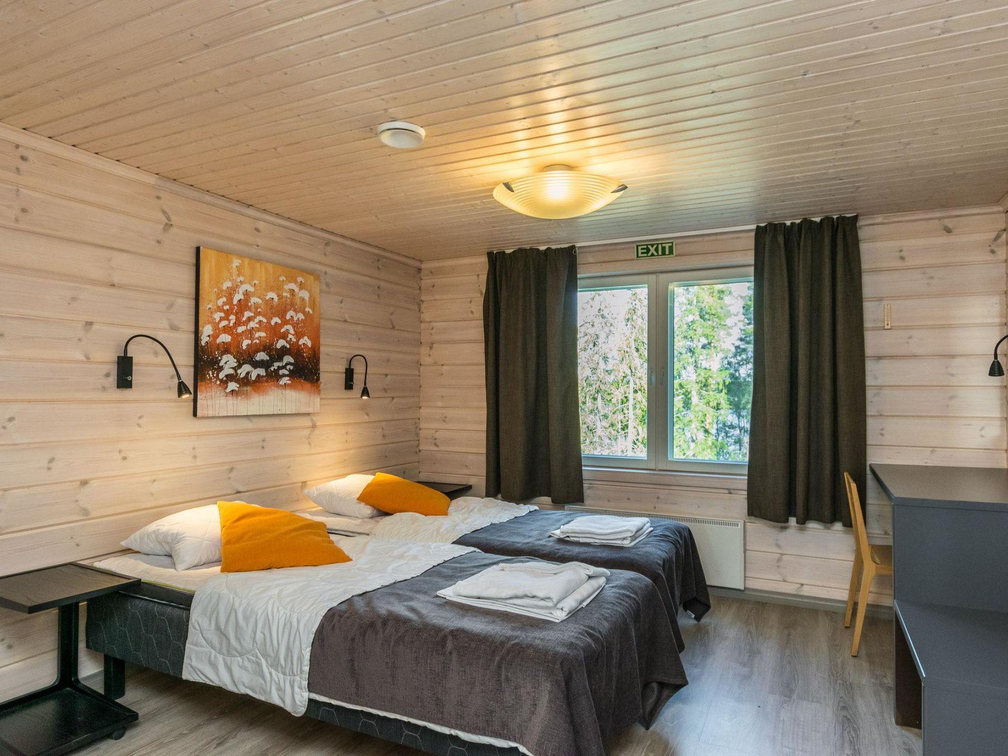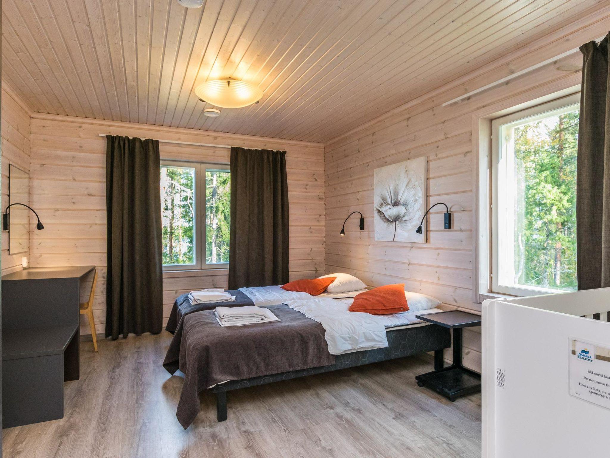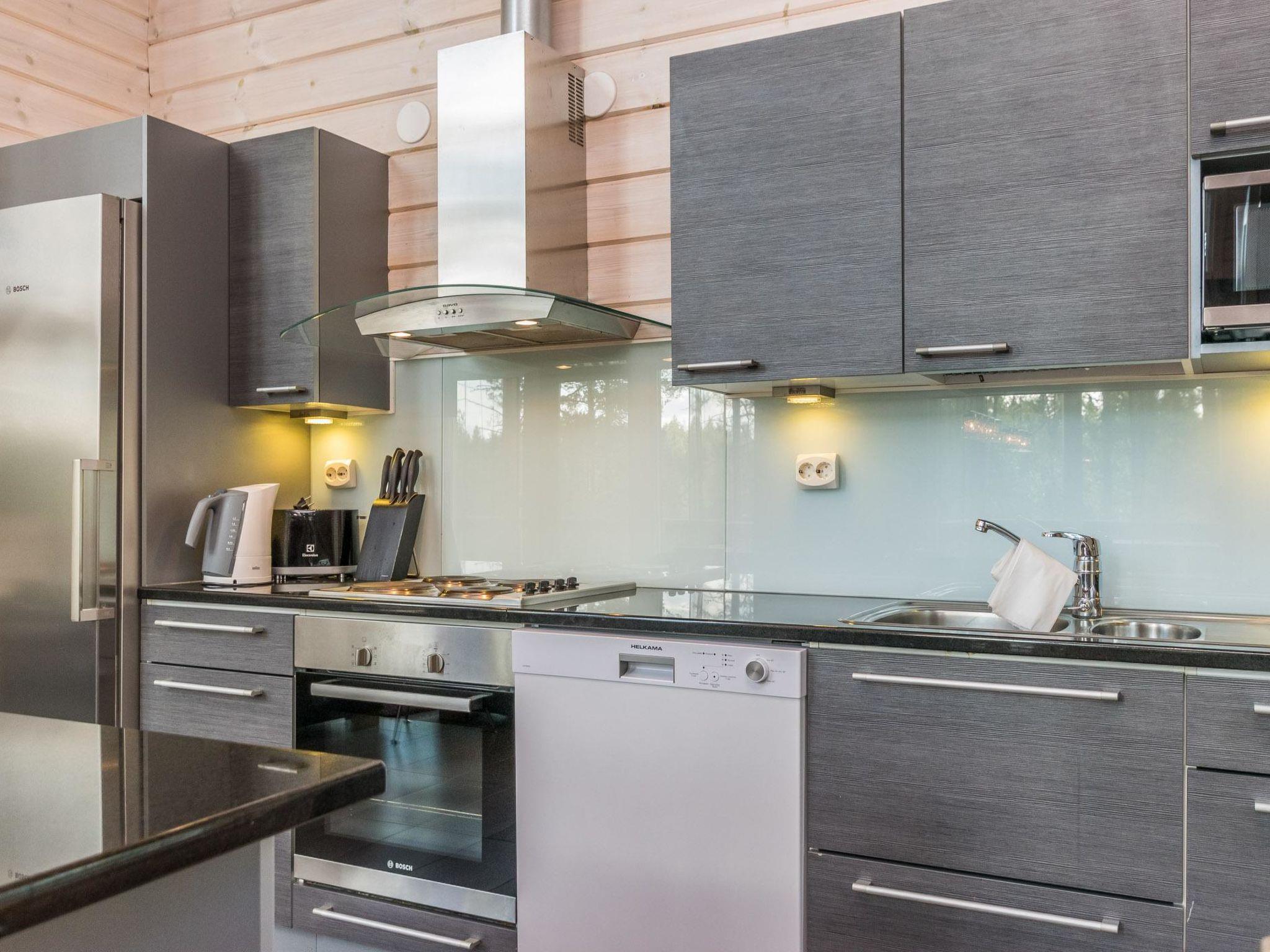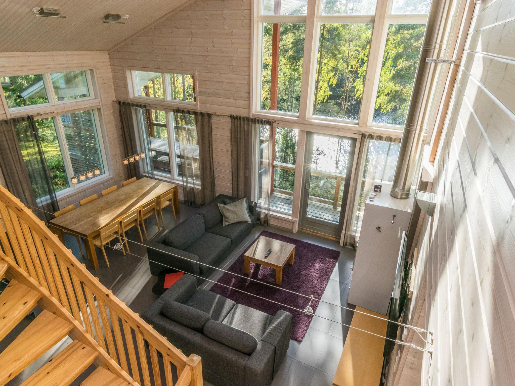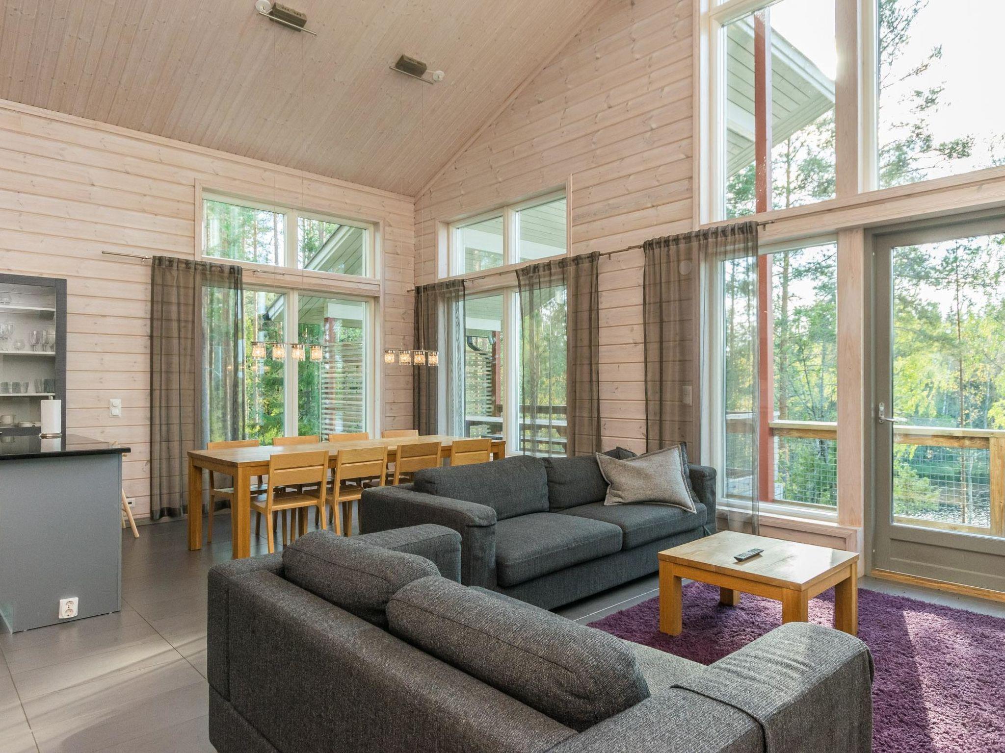 Wooden chalet 2014, large kitchen-living room, on the ground floor 3 bedrooms with 2 beds in each. All bedrooms have an own shower and toilet. Upstairs bedroom with 2 beds, sleeping loft with 2 beds, toilet. The utility room / hallway, dressing room, washroom, sauna (electric stove), toilet. Large terrace.
