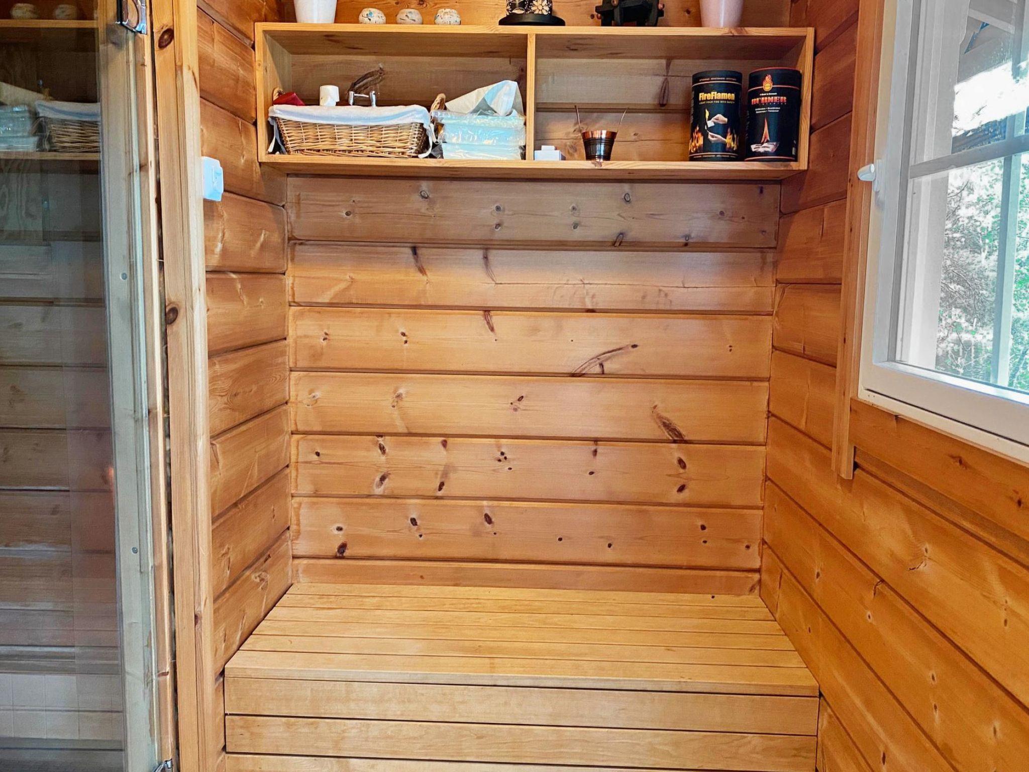 In the yard separate sauna building (sauna heated with wood) 25 m², including dressing room and other room. The other room has sofa bed (120 cm) as an alternative bed, fireplace and mini kitchen. Sauna building is available all year round.