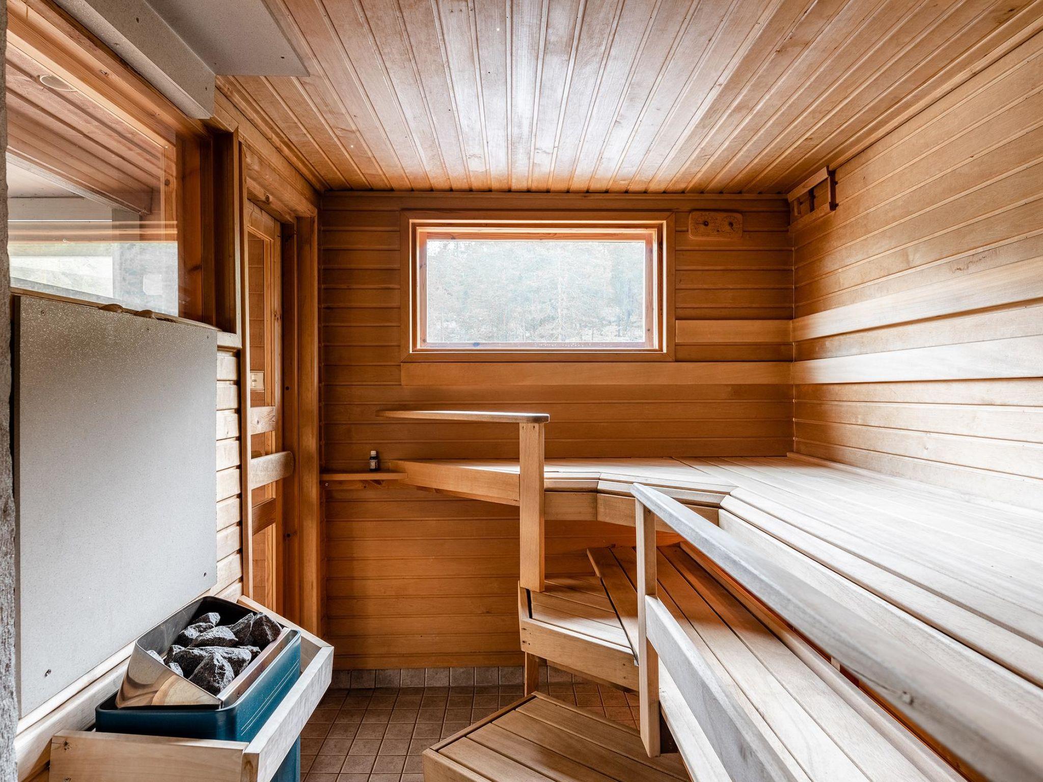 Separate sauna building (both wood heated sauna stove and electric sauna stove) 20 m² with washroom and fireplace room.