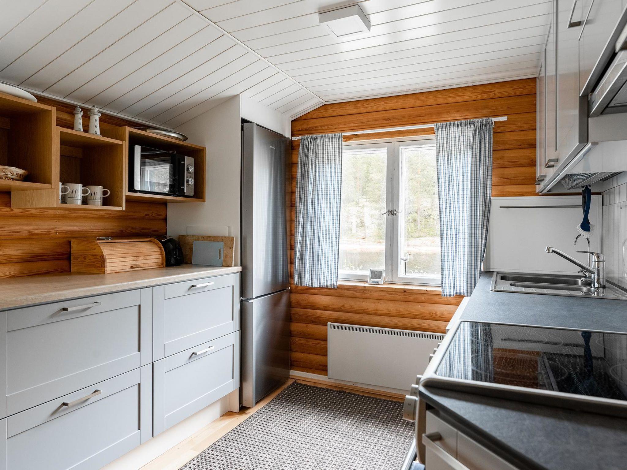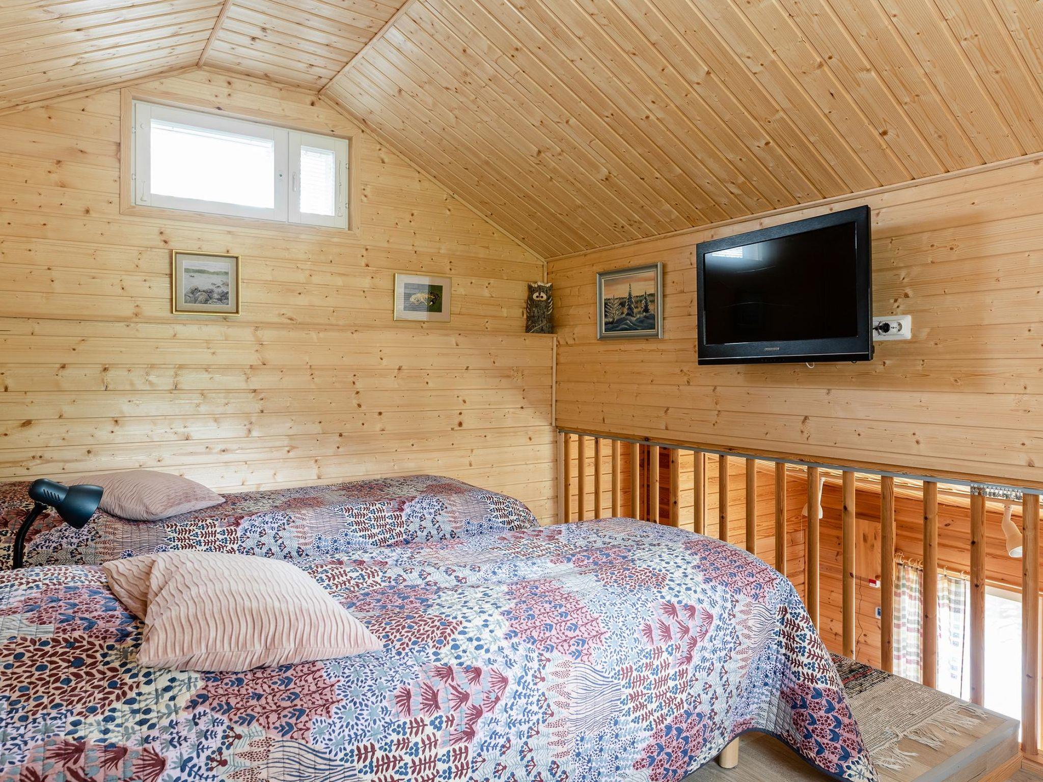 Wooden cabin 1995, renovated in 2010 and 2020, kitchen, living room, bedroom (11 m²) double bed, bedroom (7 m²) 120 cm wide bed, on the loft two beds (11 m², room height 230 cm), washroom with shower and toilet, renovated in 2025.