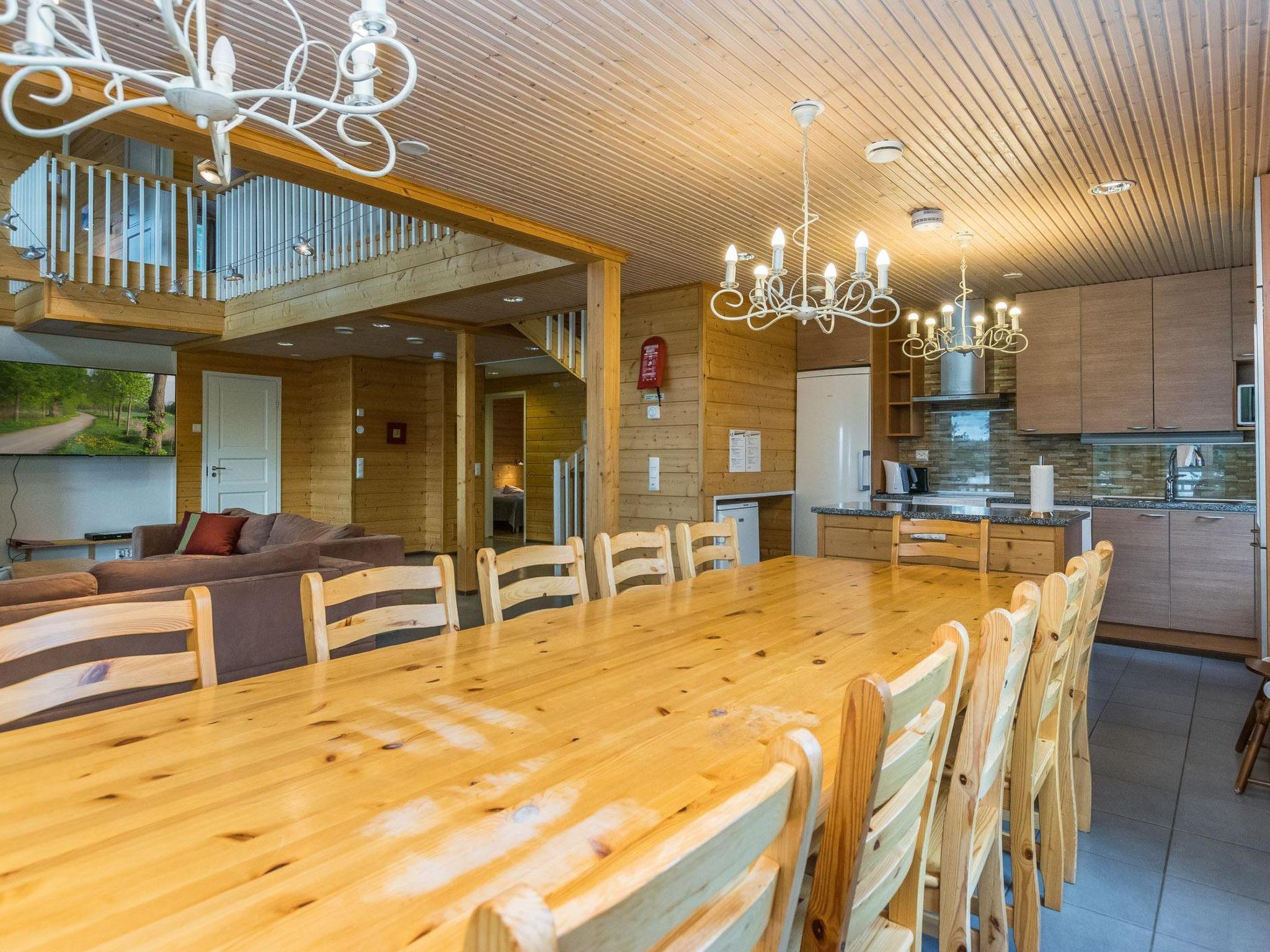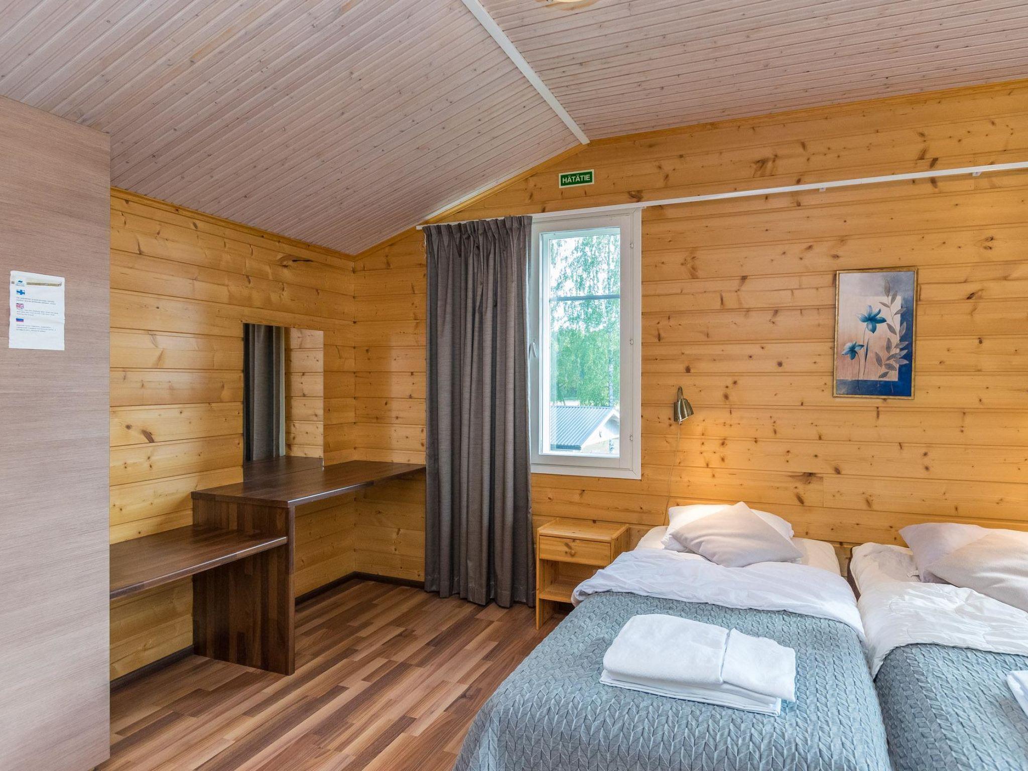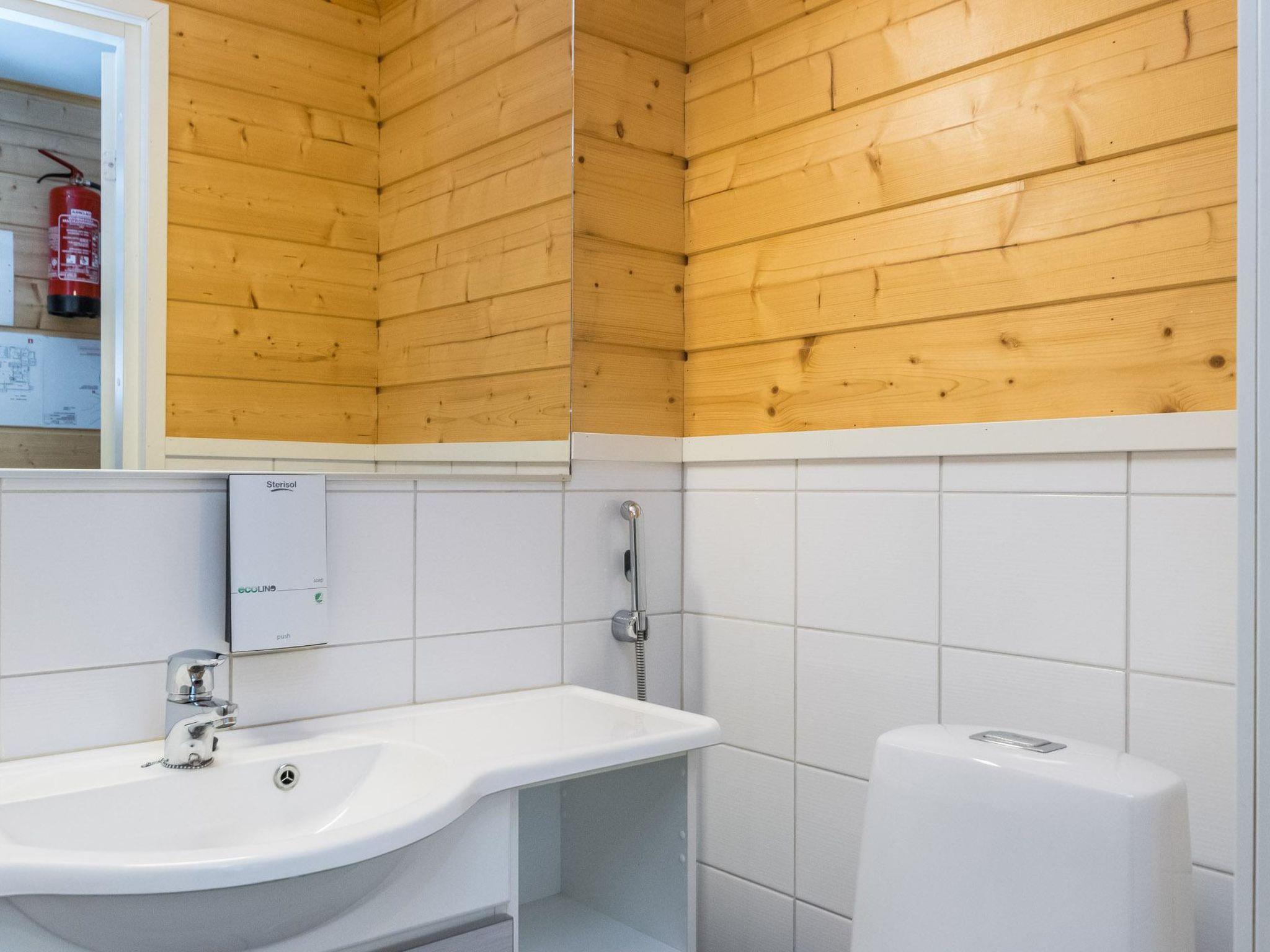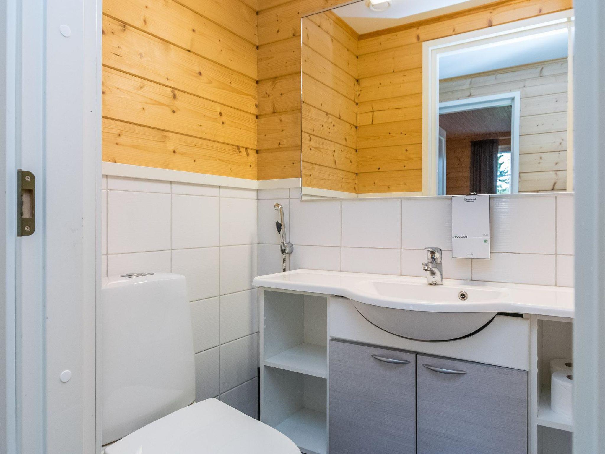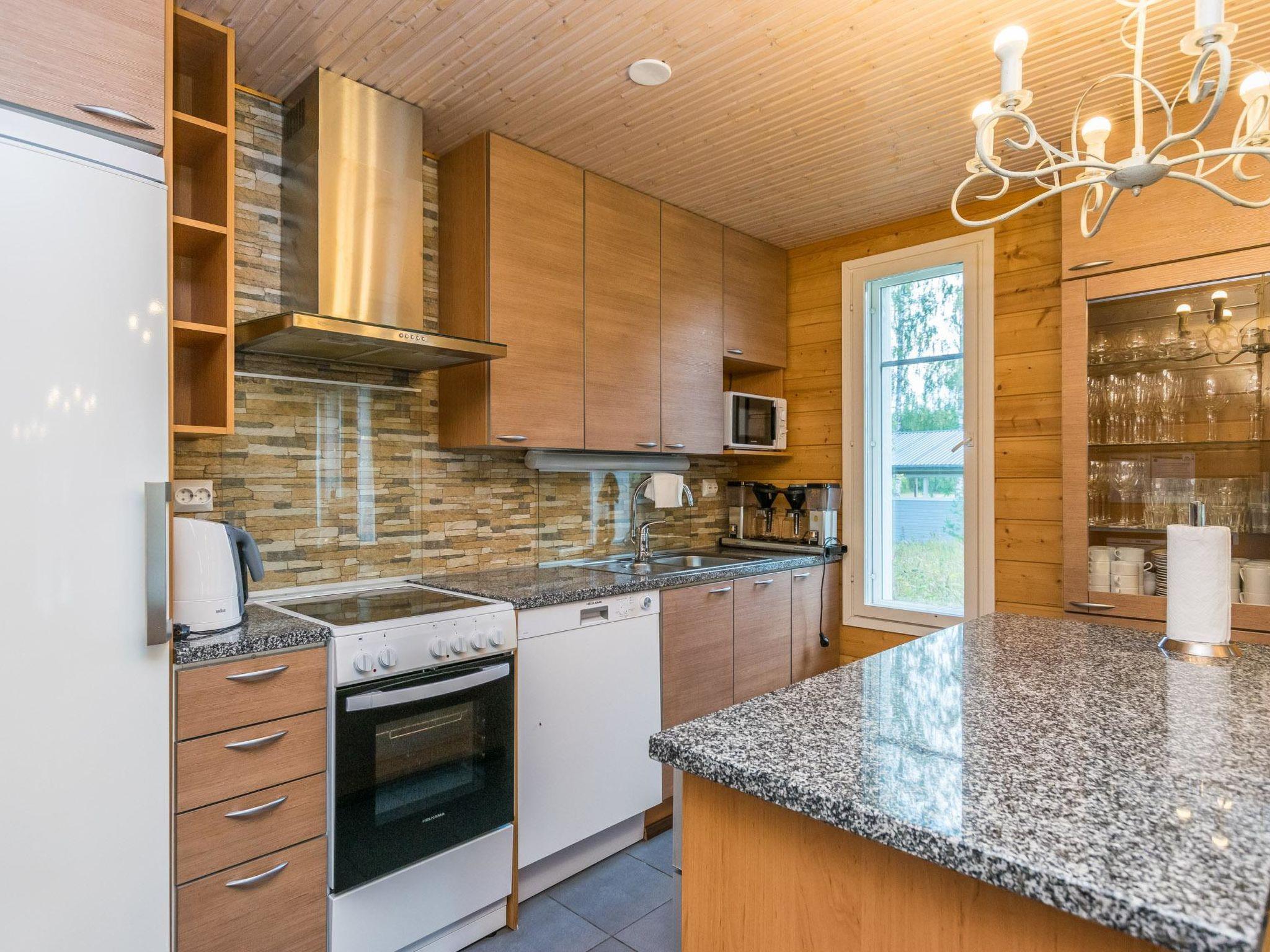 High-quality wood villa, built in 2008, features a spacious living room/kitchen on the ground floor, three bedrooms with two beds in each, a utility room/dressing room, a bathroom with two showers, an electric sauna, a separate shower room, and two separate WCs.