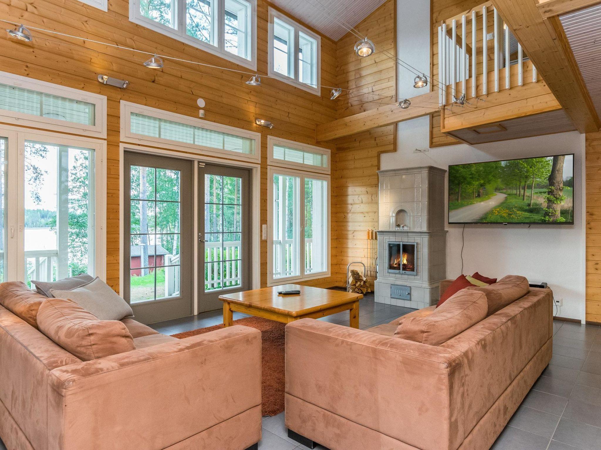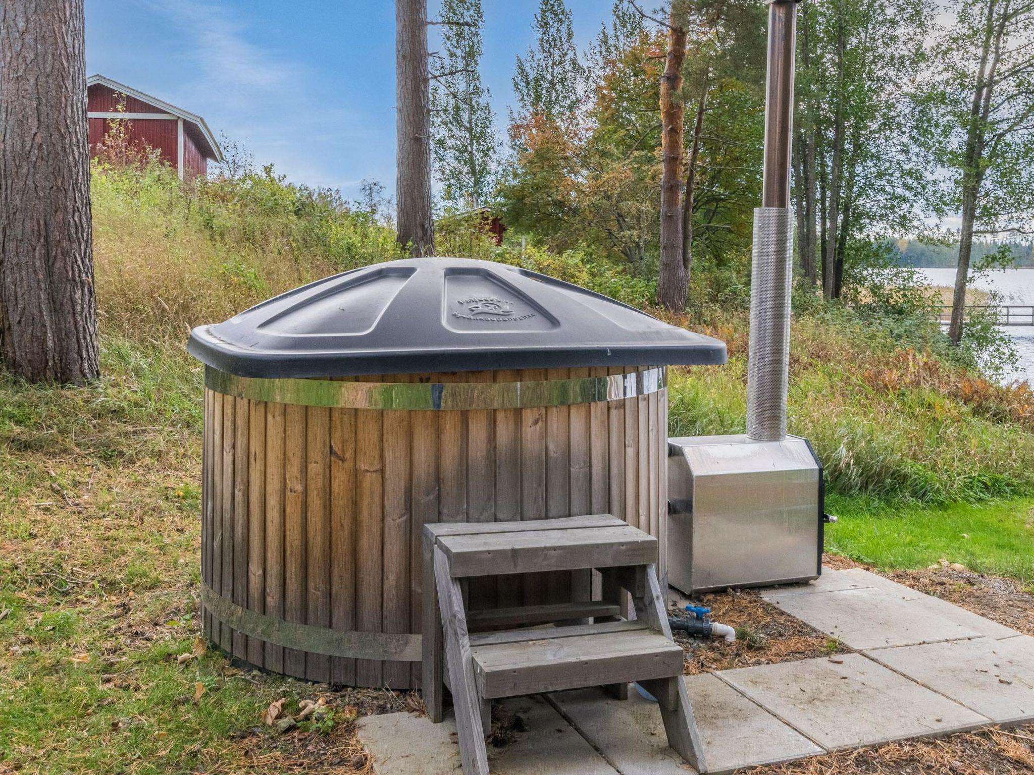 The manor villa is located in Oravi, on the shore of Lake Haukivesi. It offers a peaceful location with a private beach, a pier, a small sand beach, and a lakeside sauna. There is a shared activity area with the neighboring villa, where you can play games like badminton. The lakeside sauna is available for use between May 1st and October 15th. At the beach, there is a hot tub that guests can use throughout the year. Next to the hot tub, there is also a campfire site and a fish-cleaning table.