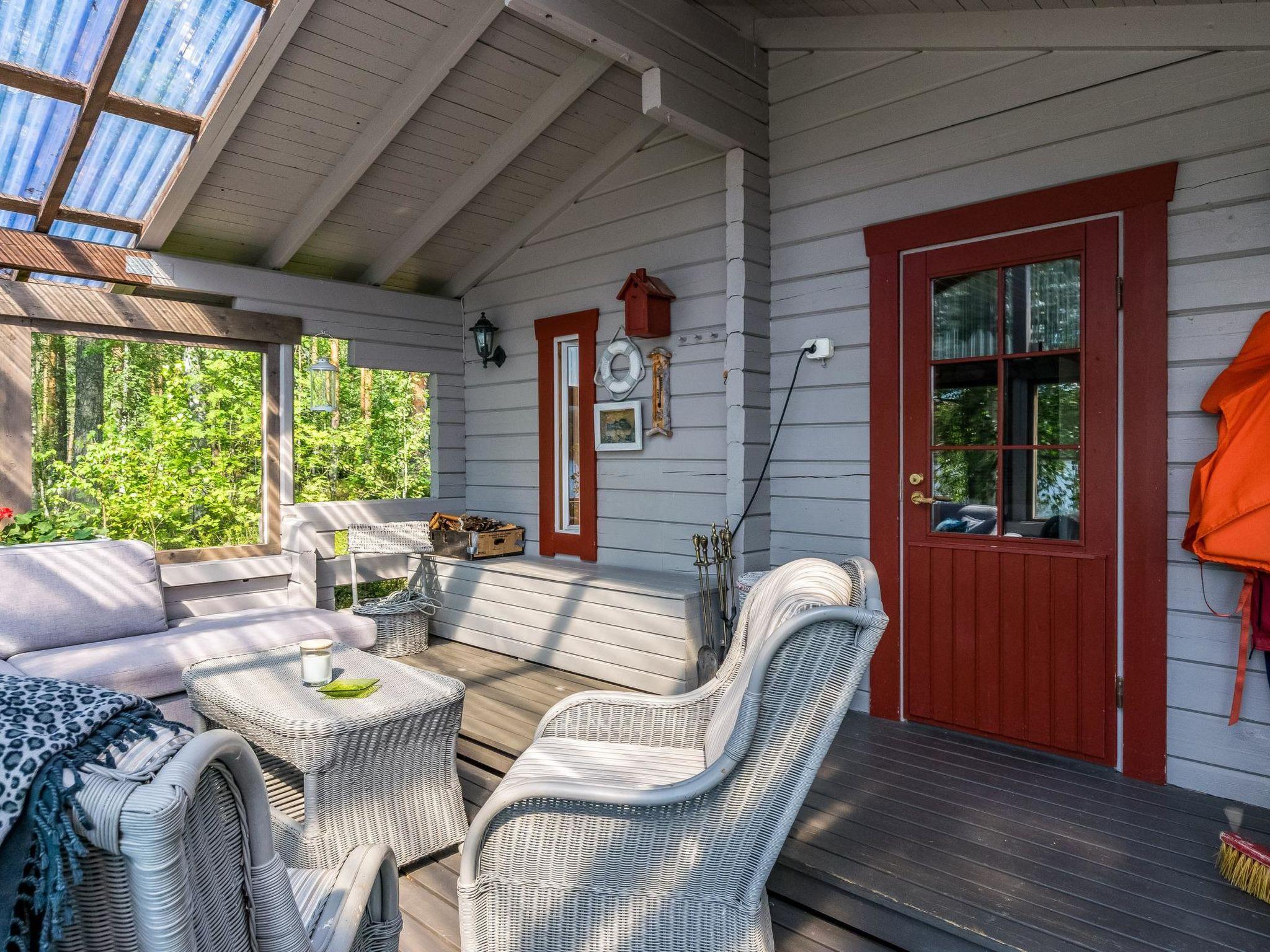 Separate sauna building, wood stove and shower in the sauna, sofa bed for two in the sauna room, large covered and partially glazed terrace.