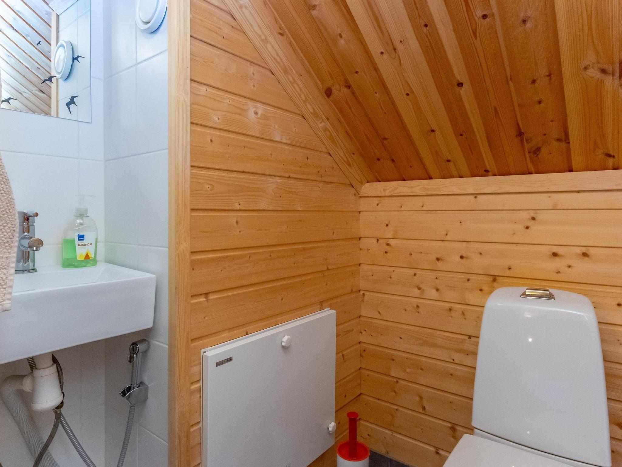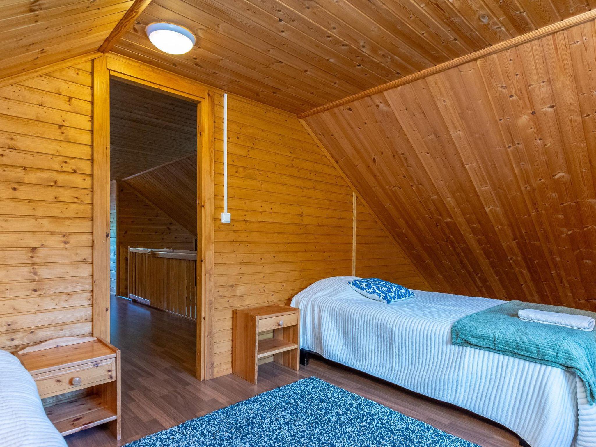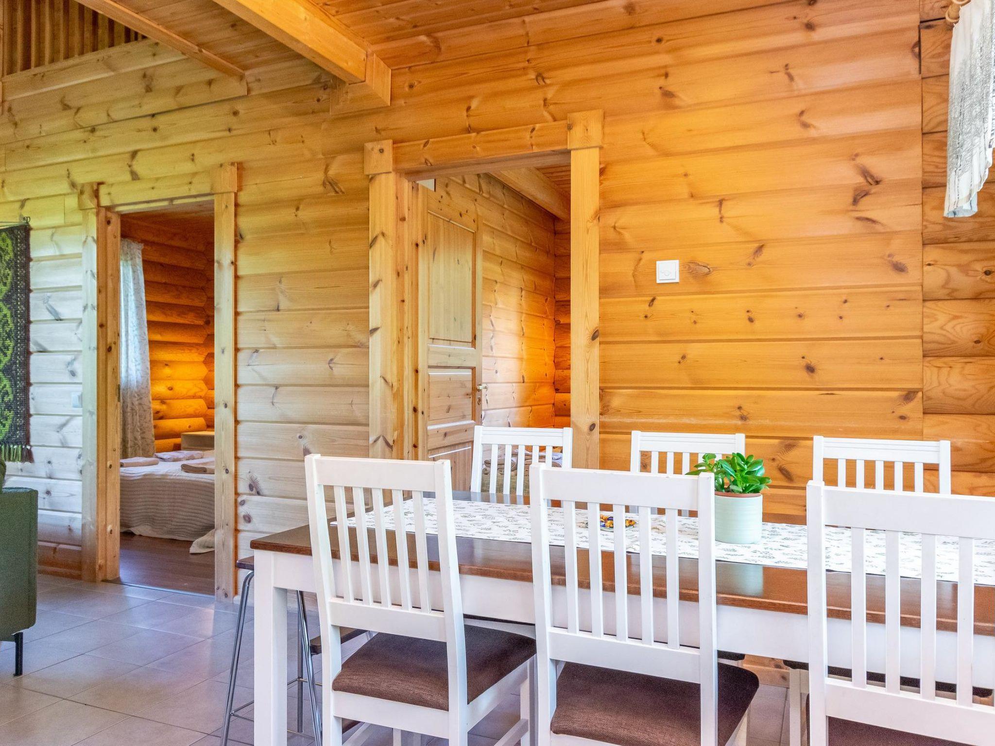 Log villa built in 2011. The ground floor features a living room, kitchen, two bedrooms—one with a double bed and the other with two single beds. Bathroom with WC and shower, electric sauna. Covered porch.