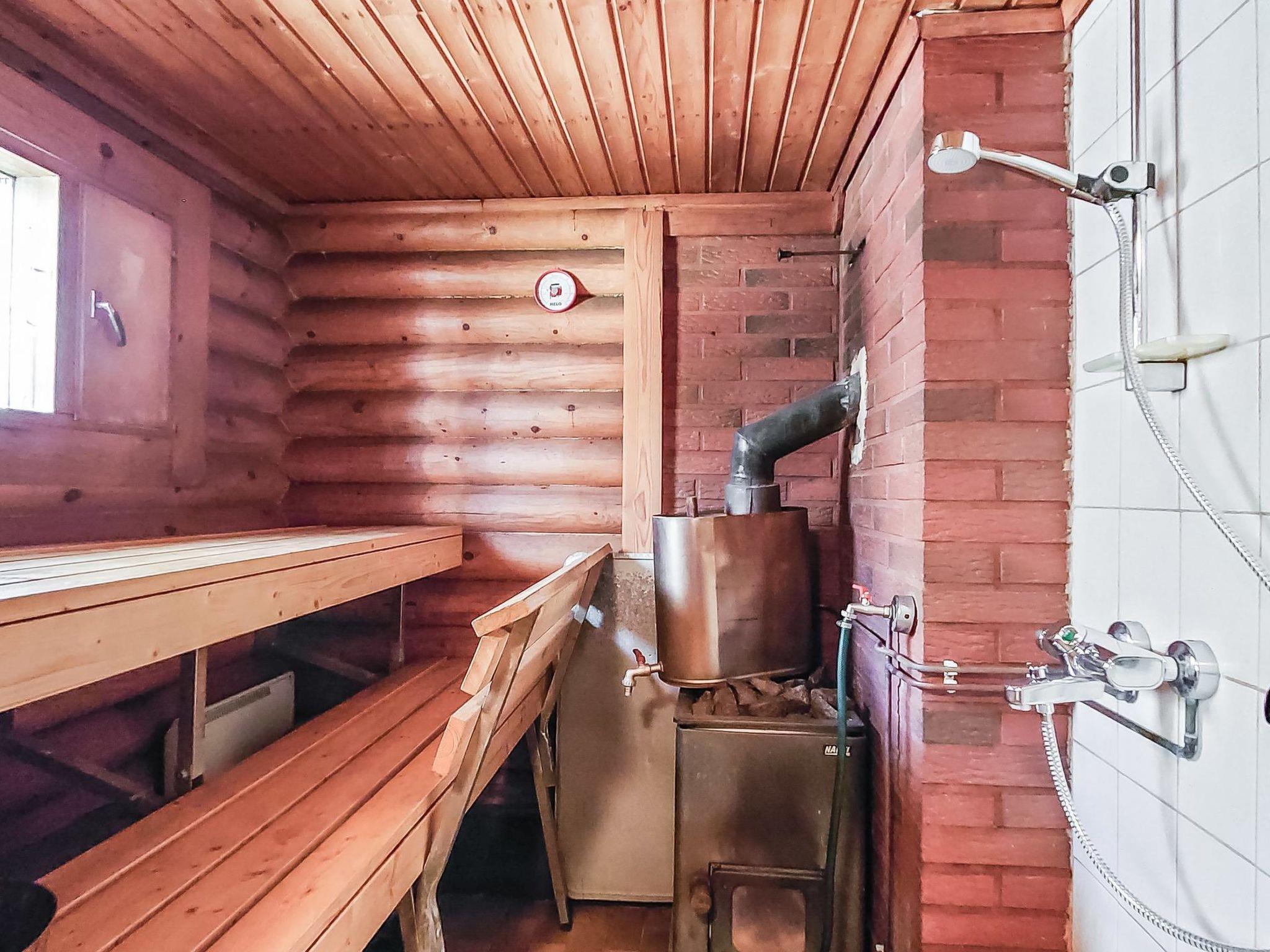 Log cabin 1990. Downstairs: living room/kitchen with sofabed, sauna, toilet-dressing room, shower and sauna, open veranda. Access to the toilet-dressing room both indoors and outdoors.