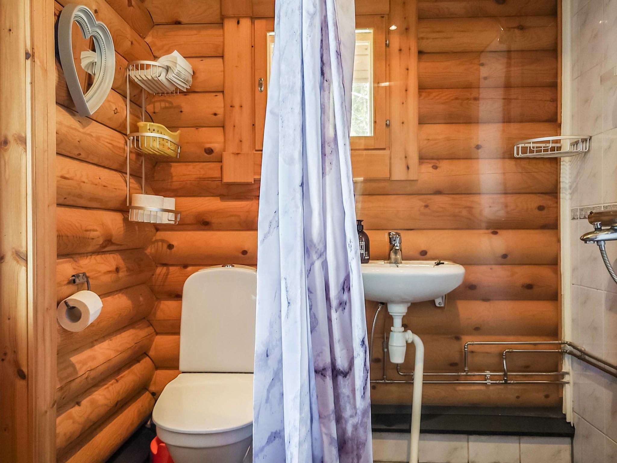 Log building 2011. Downstairs: living room/kitchen, bedroom with double bed, toilet-washroom, sauna and large open porch. Access to the washroom both indoors and outdoors.